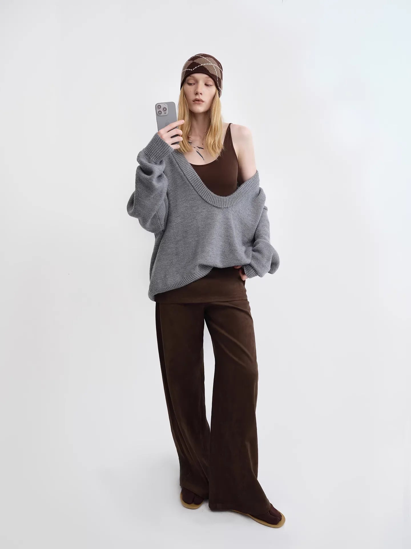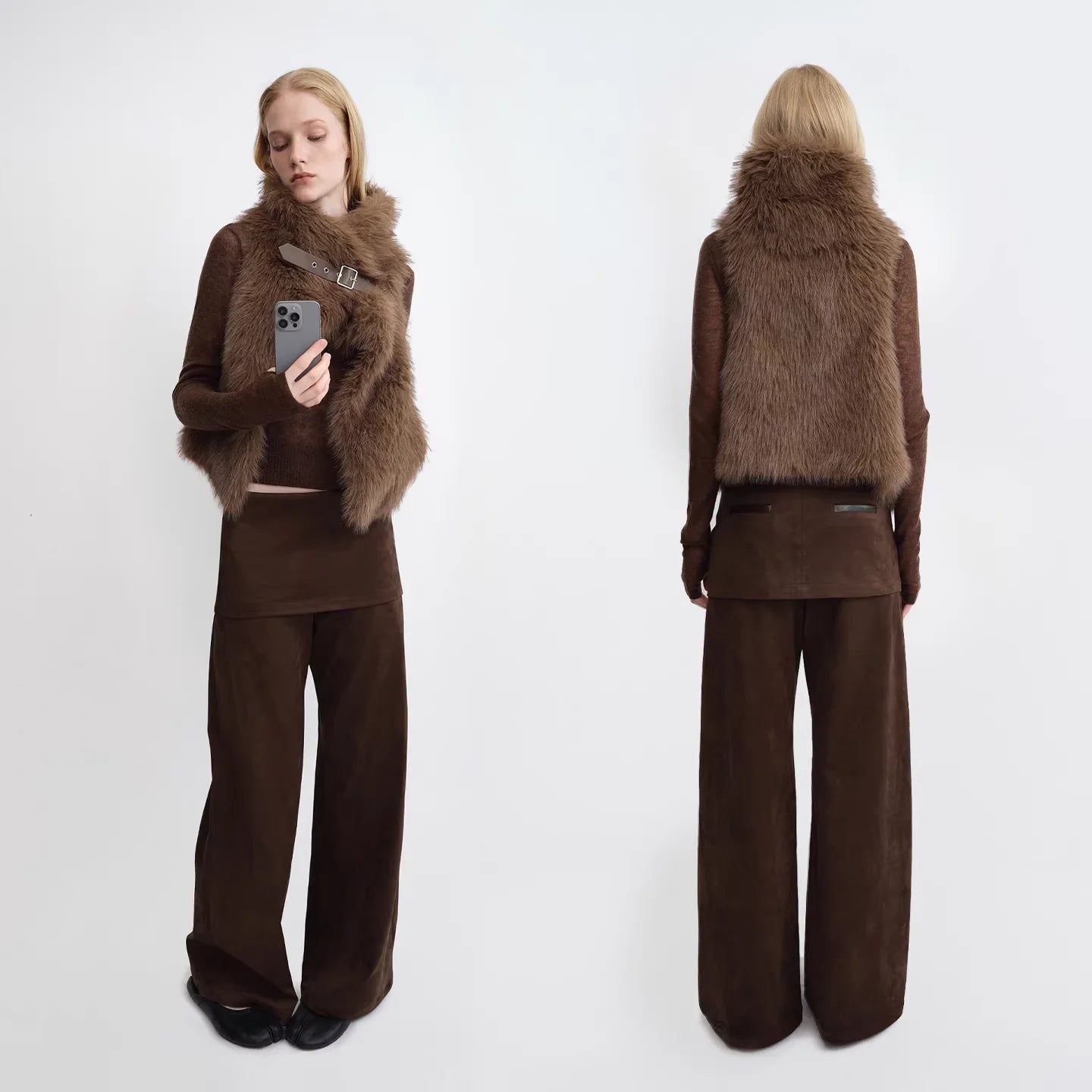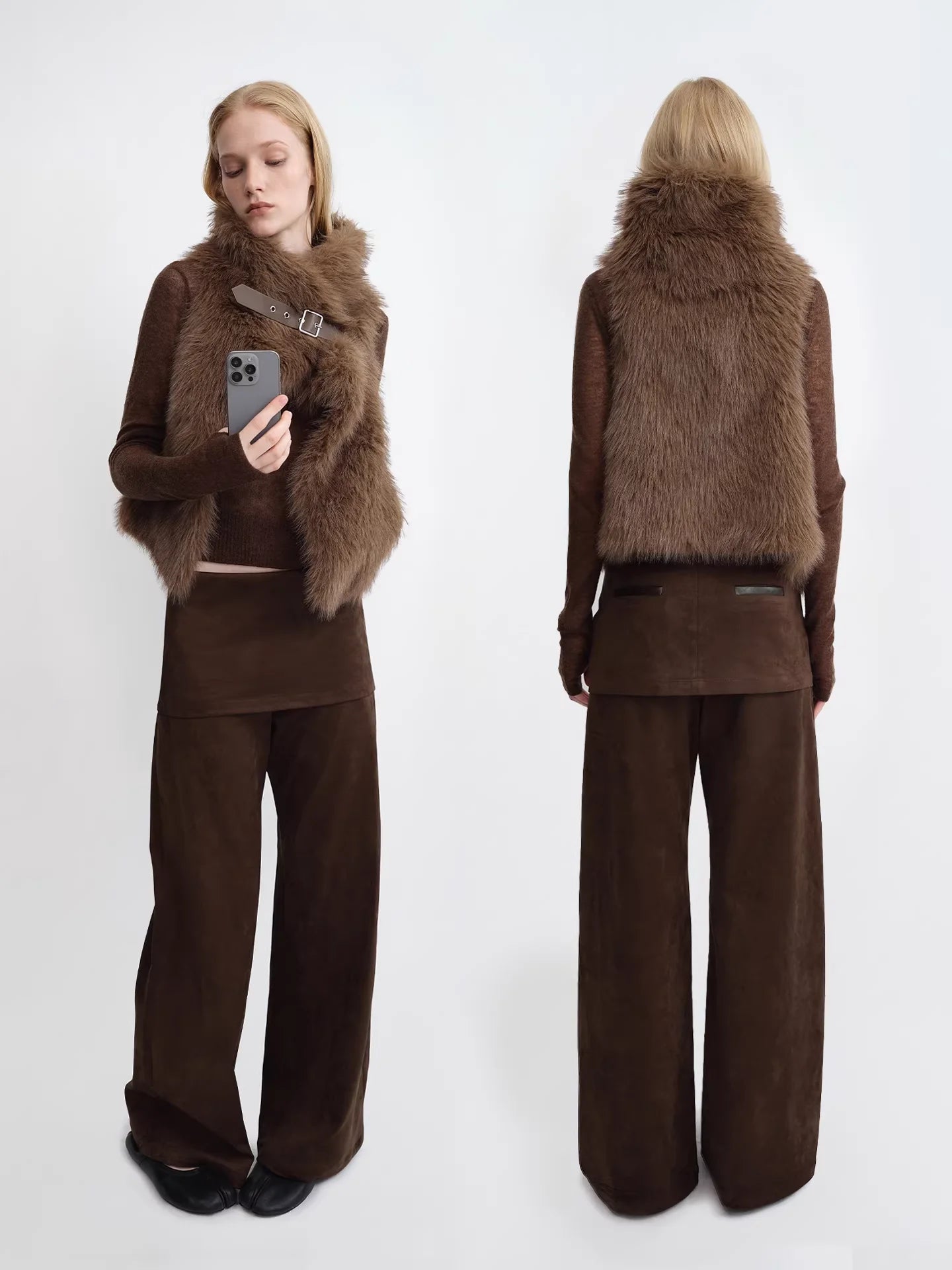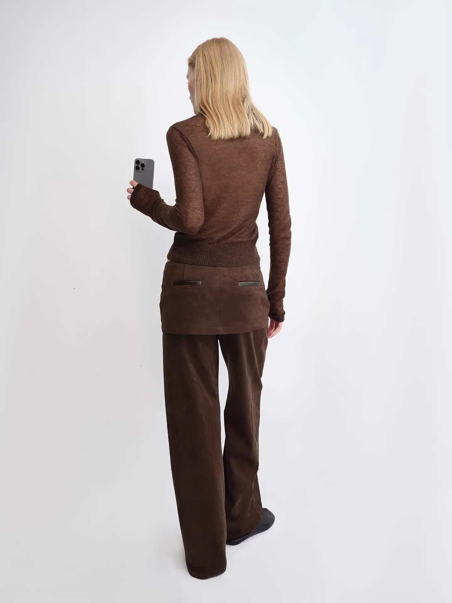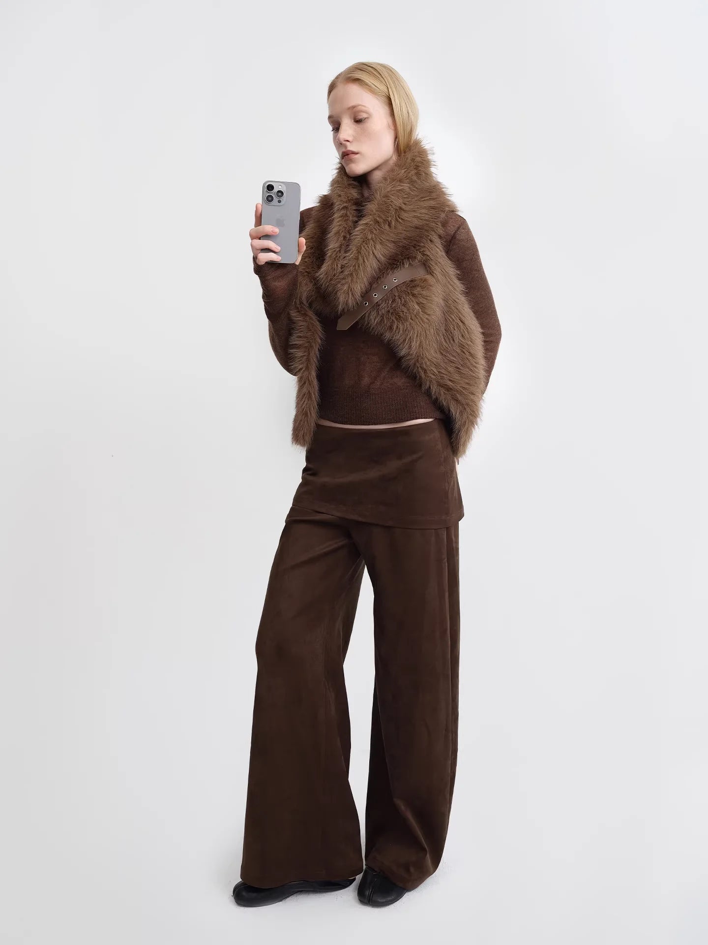 RARELY ALIKE Faux Suede Wide-Leg Skirt Pants - Brown