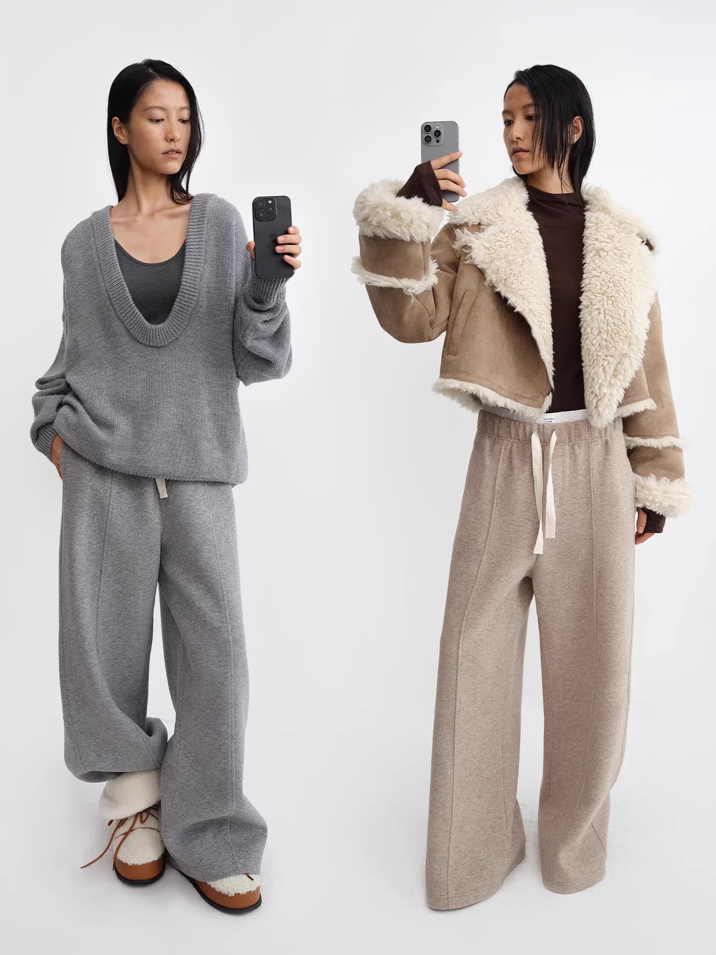 RARELY ALIKE Women's Wool Blend Straight-Leg Lounge Pants