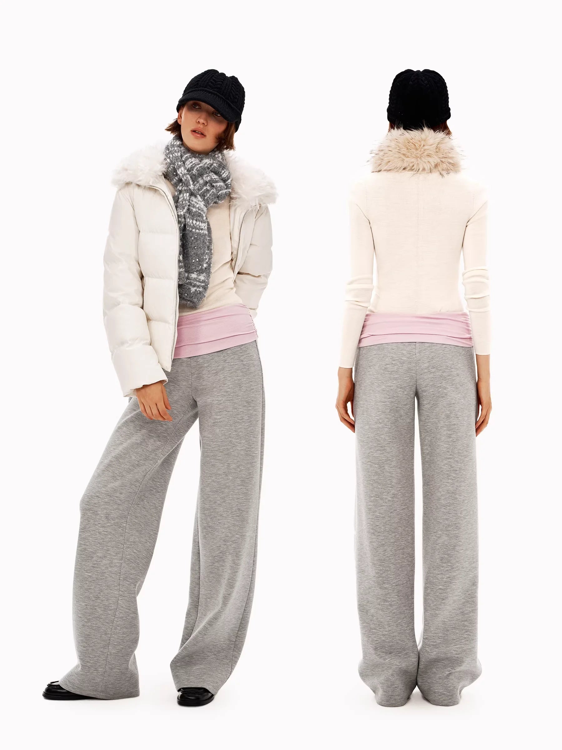 PUKI Women's High-Waisted Flared Fleece Sweatpants