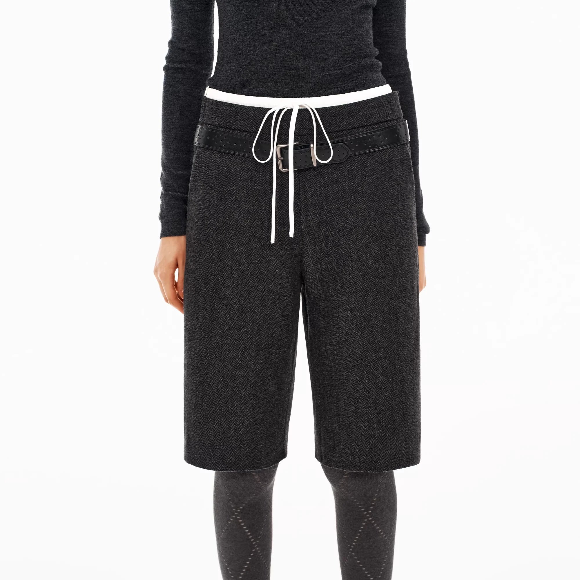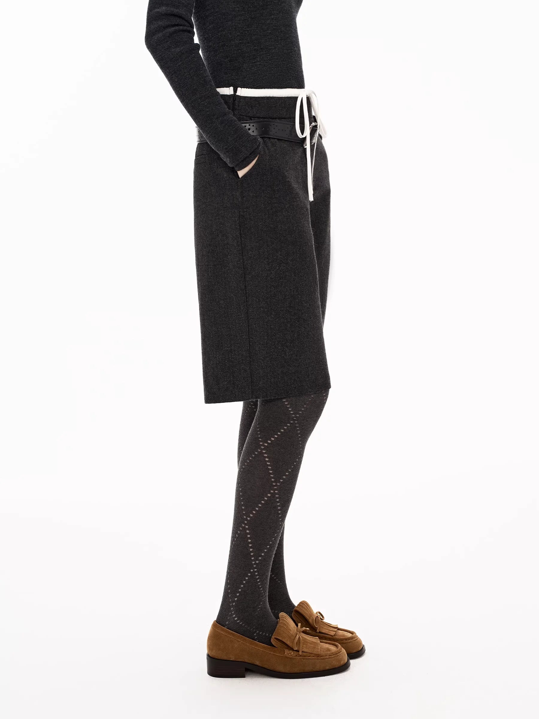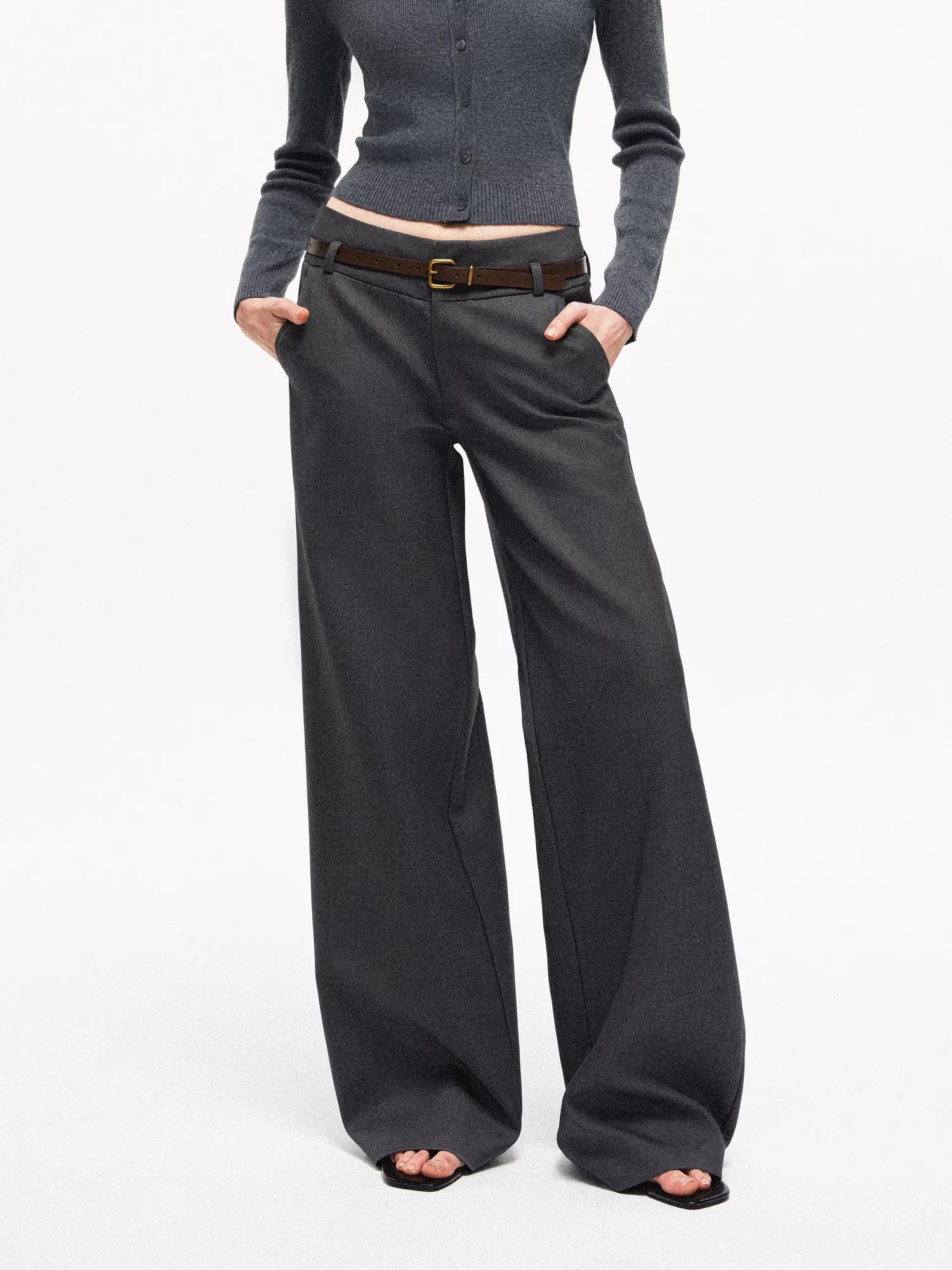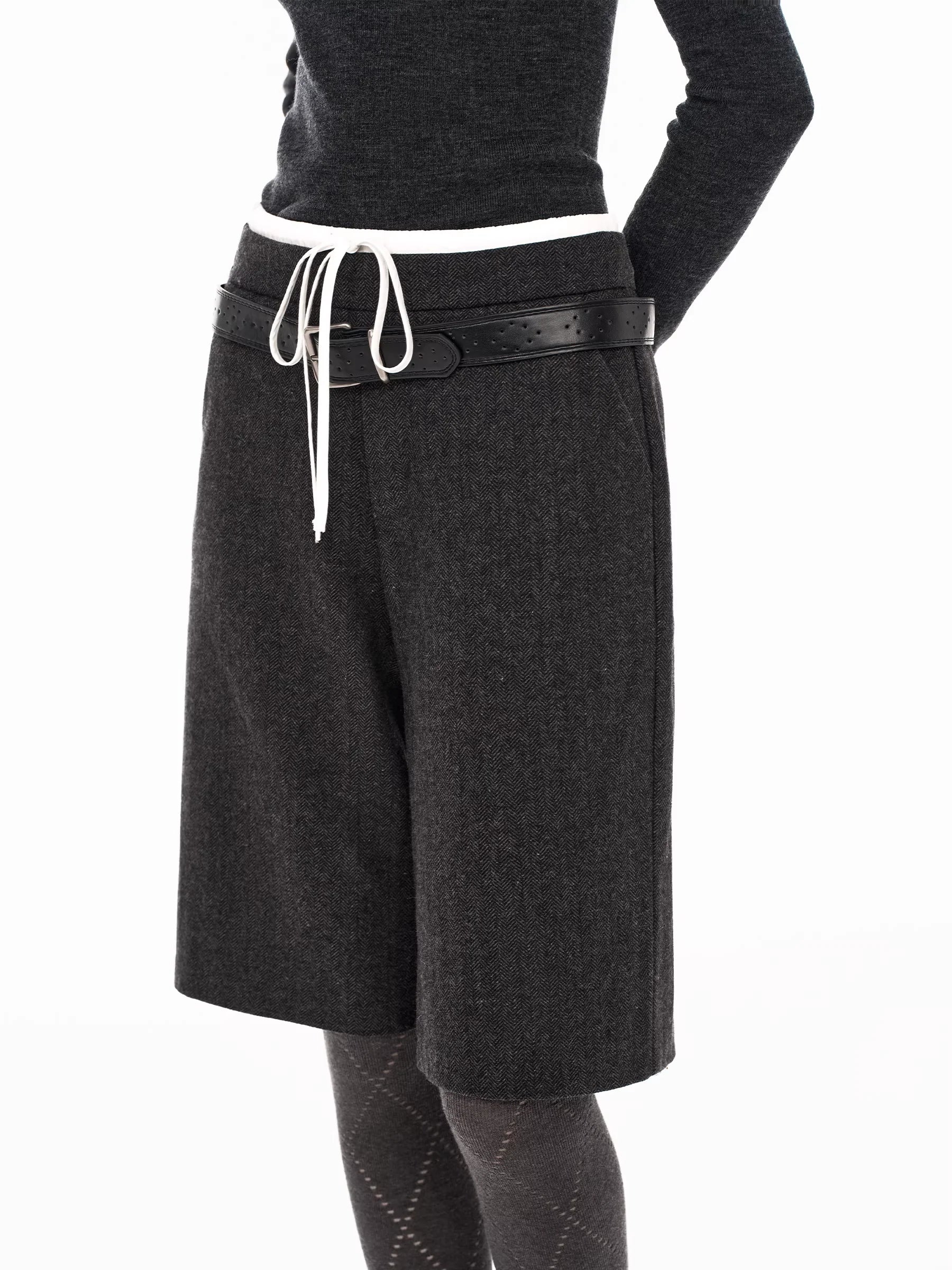 PUKI Vintage Corduroy Wide-Leg Pants with Braided Belt