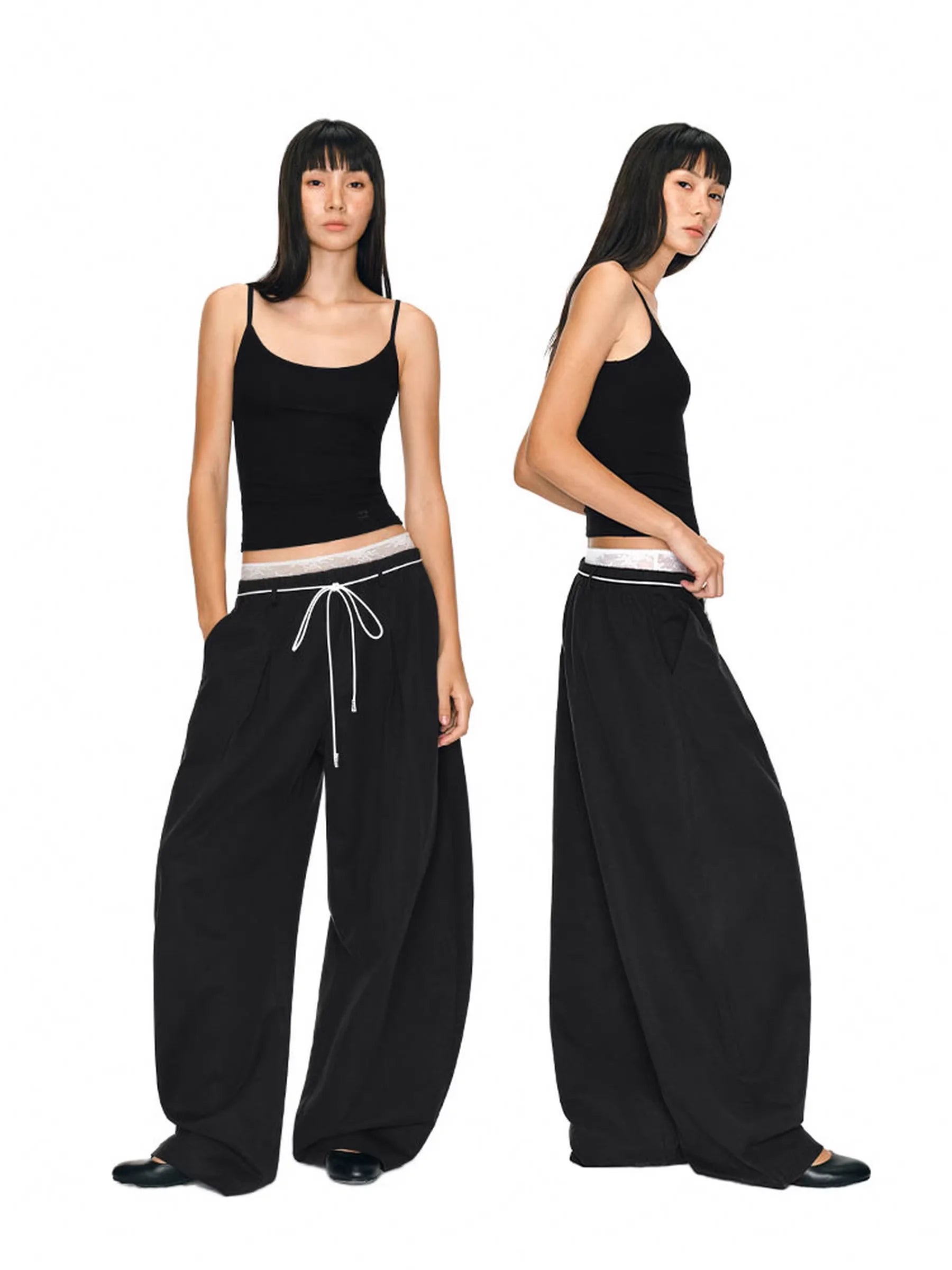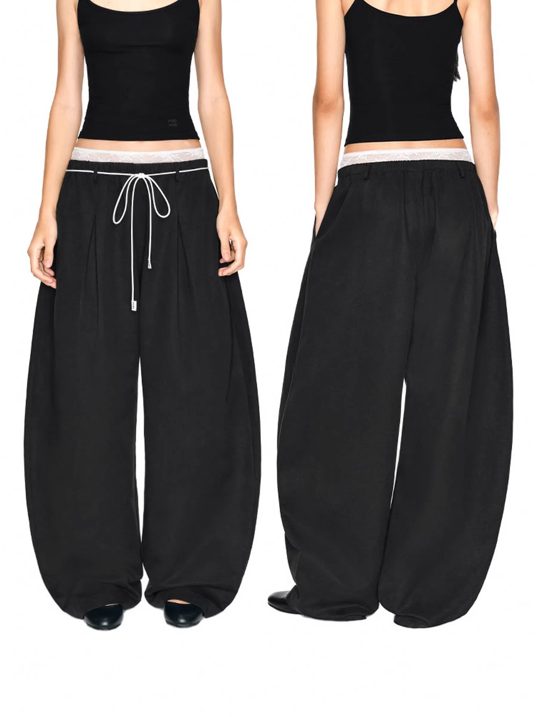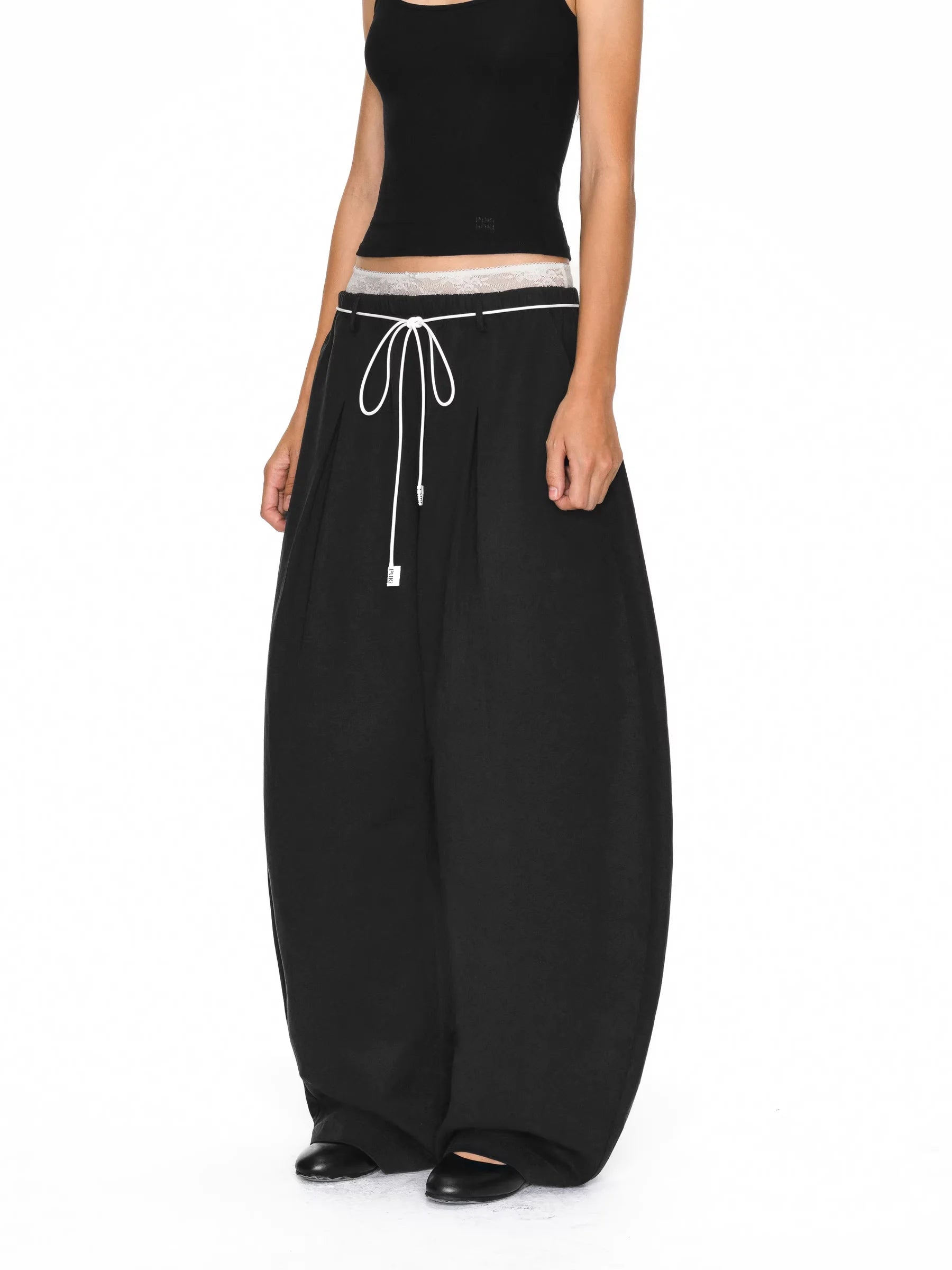 PUKI Women's Lace Waist Layered Wide-Leg Pants