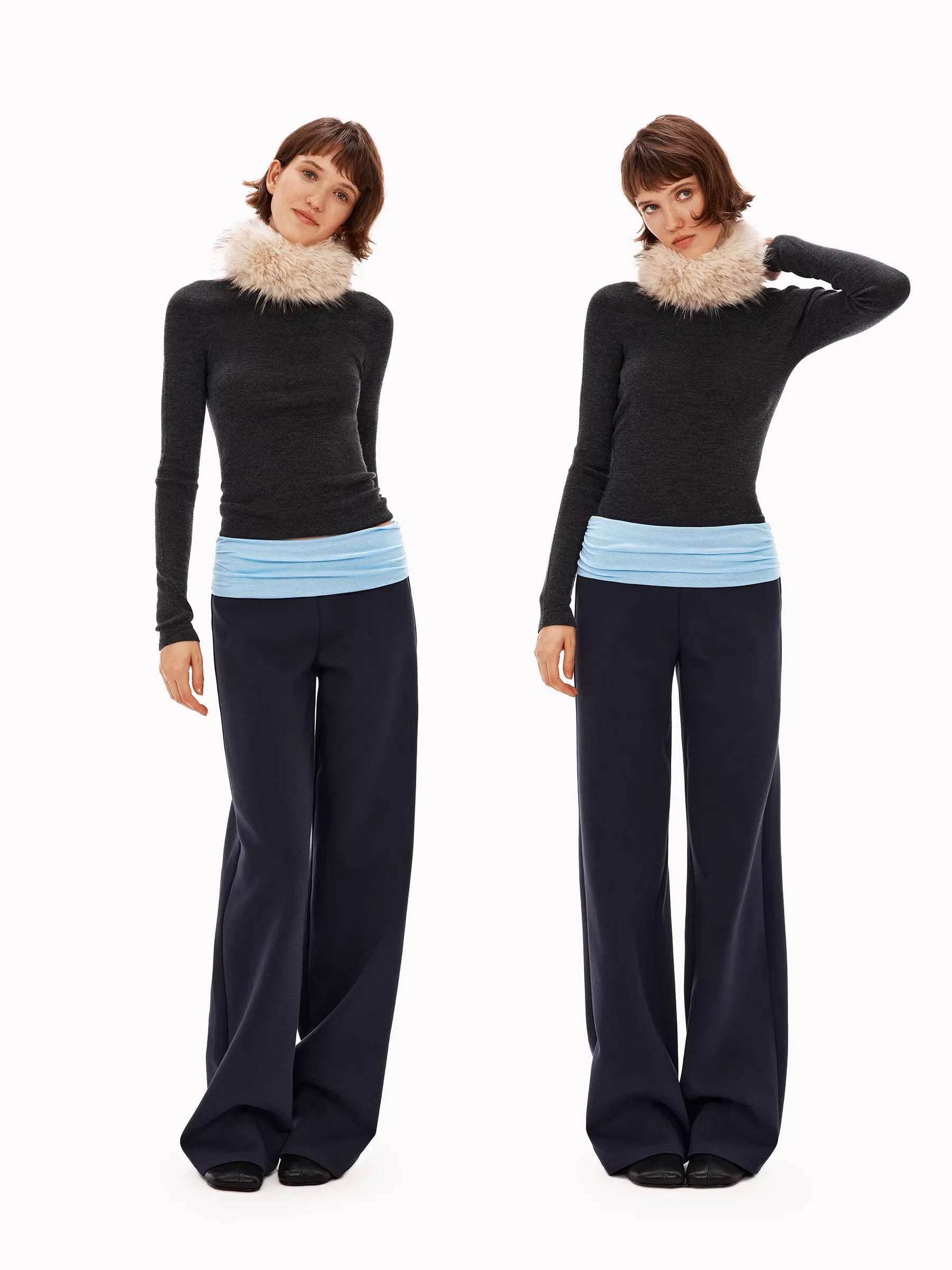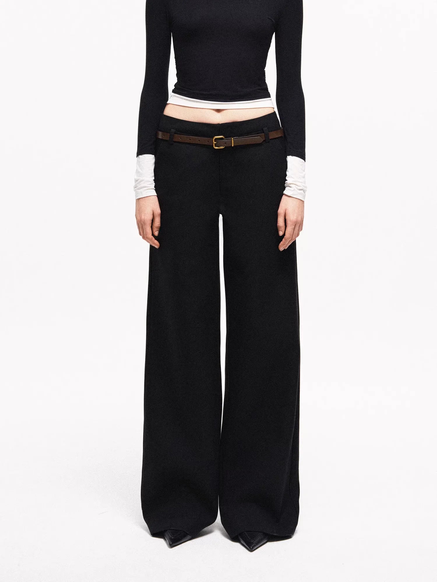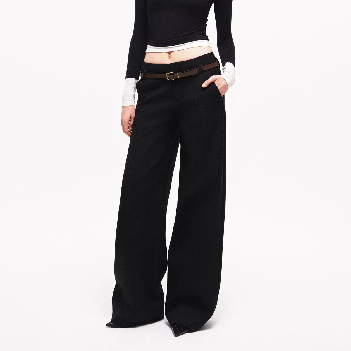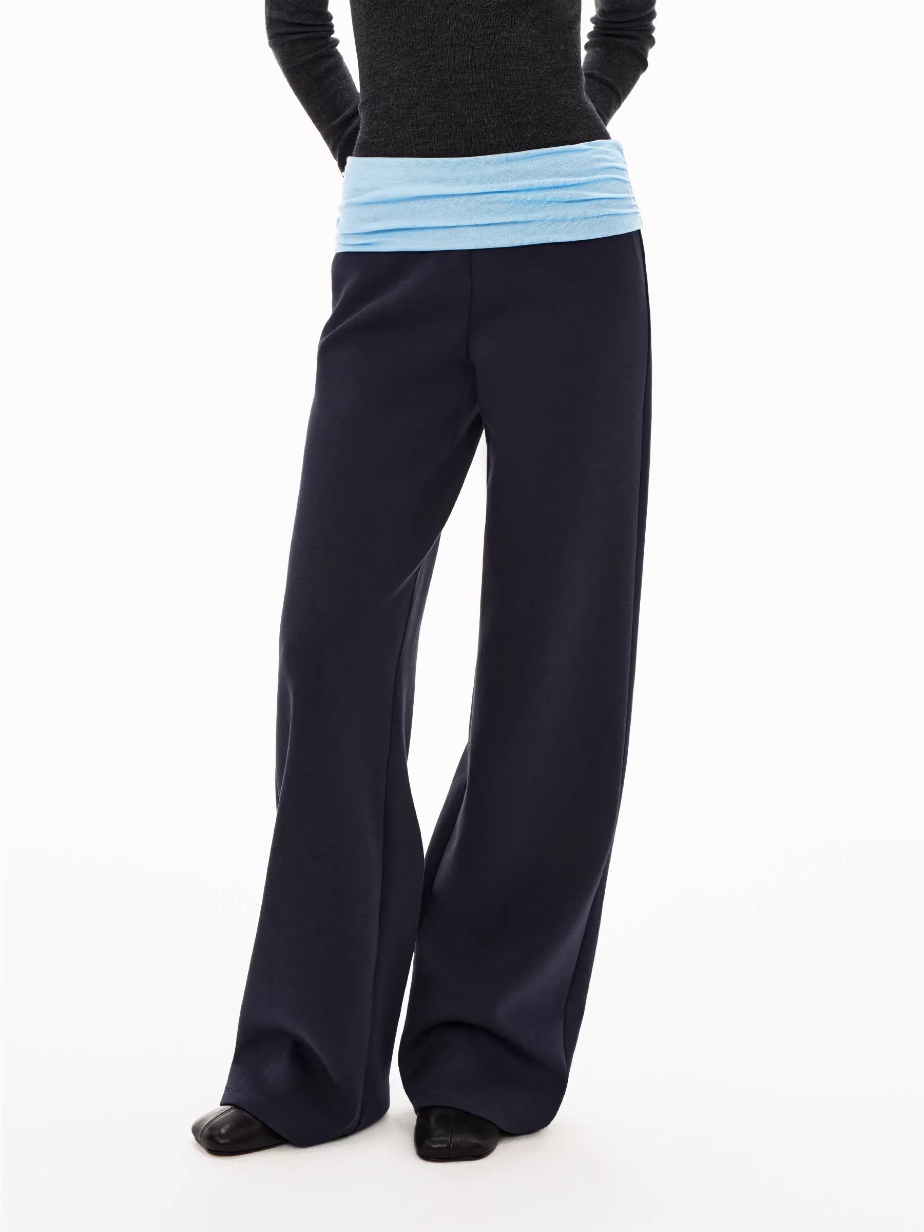 PUKI Women's Lace Waist Layered Wide-Leg Pants
