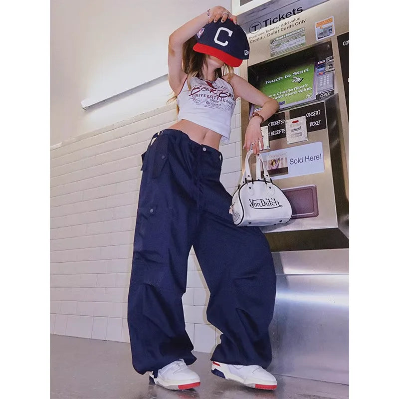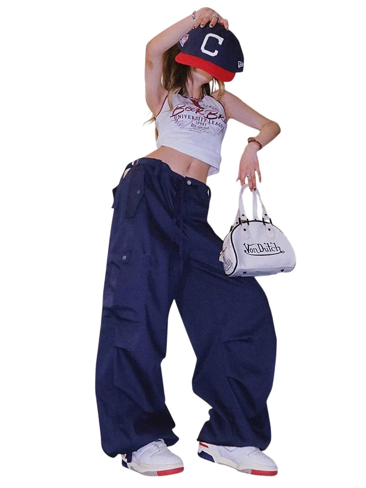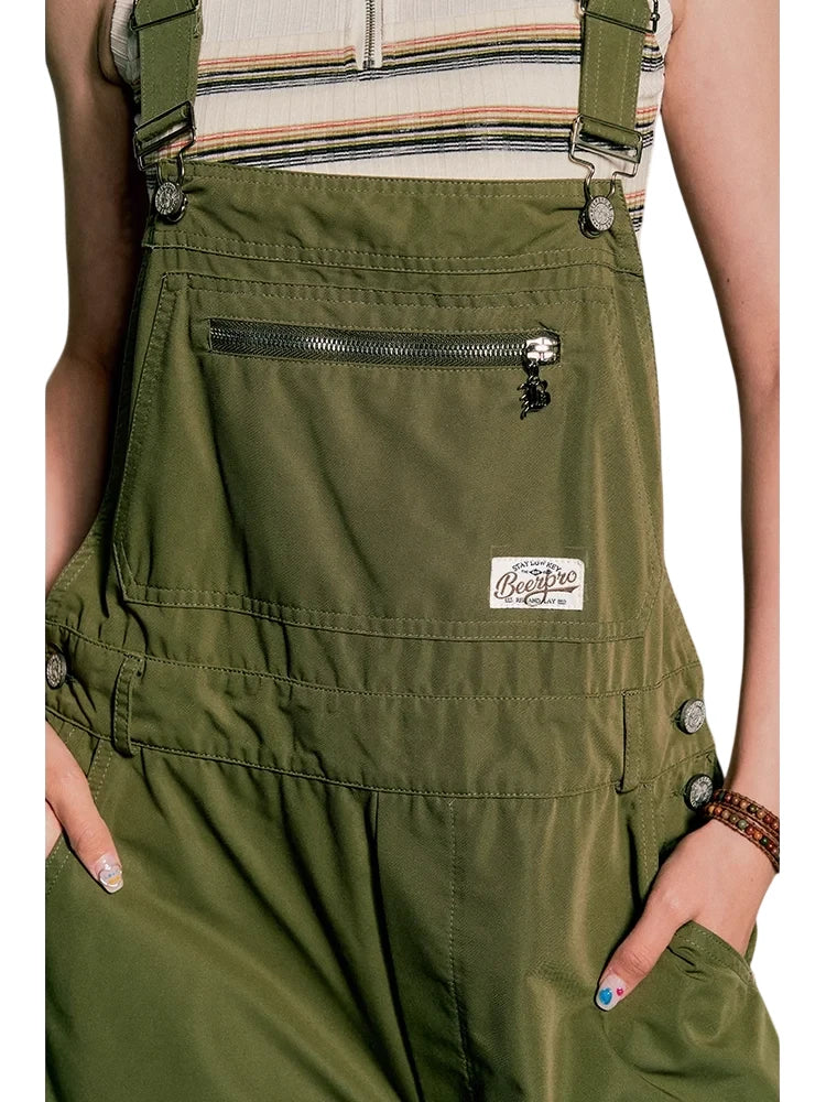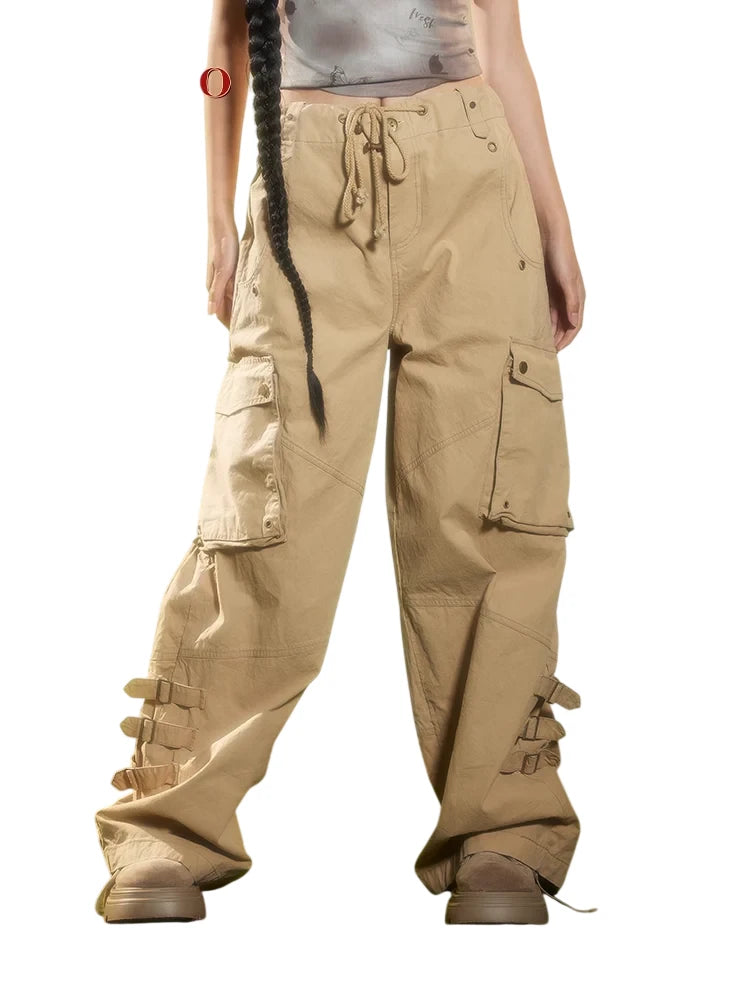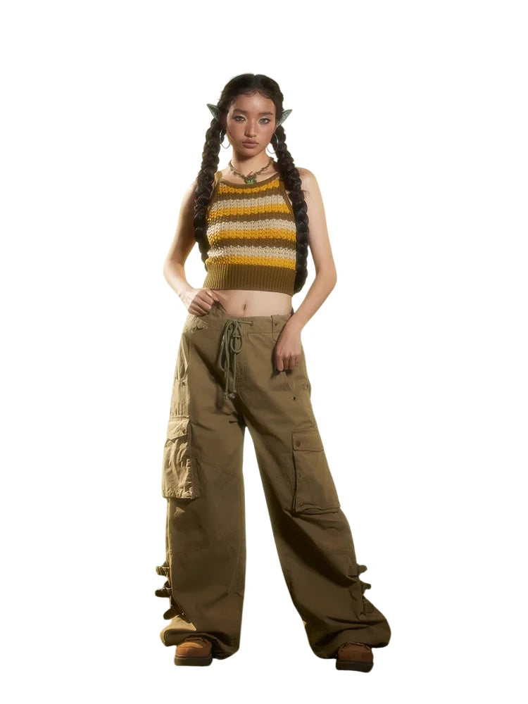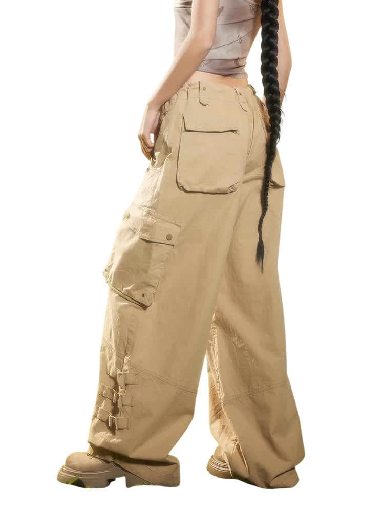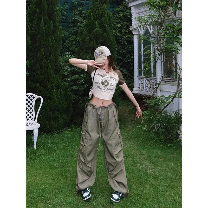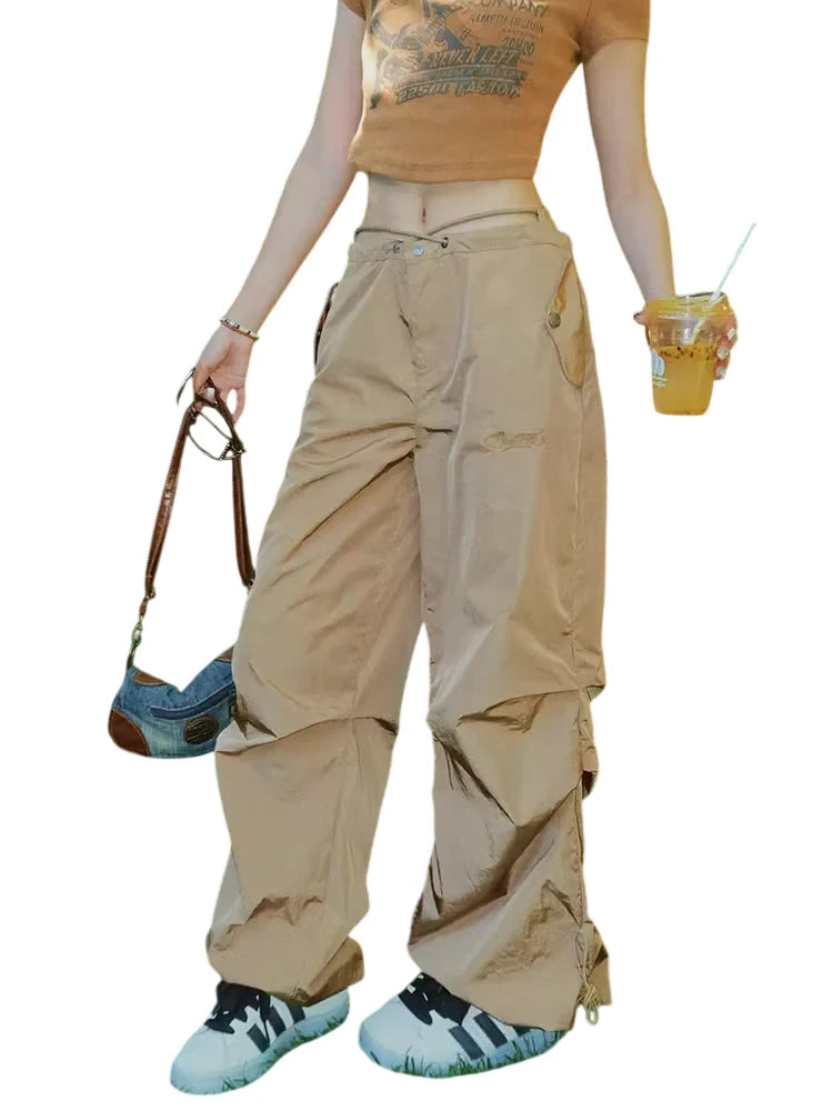 BeerBro Women's Green Parachute Cargo Pants with Drawstring Cuffs