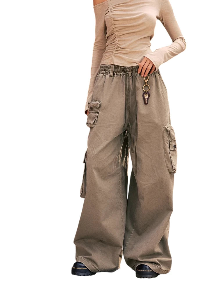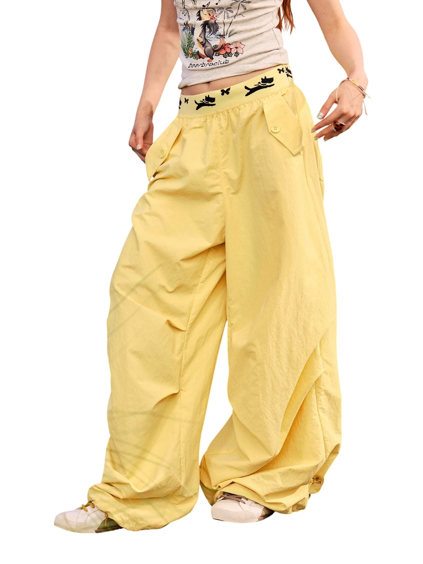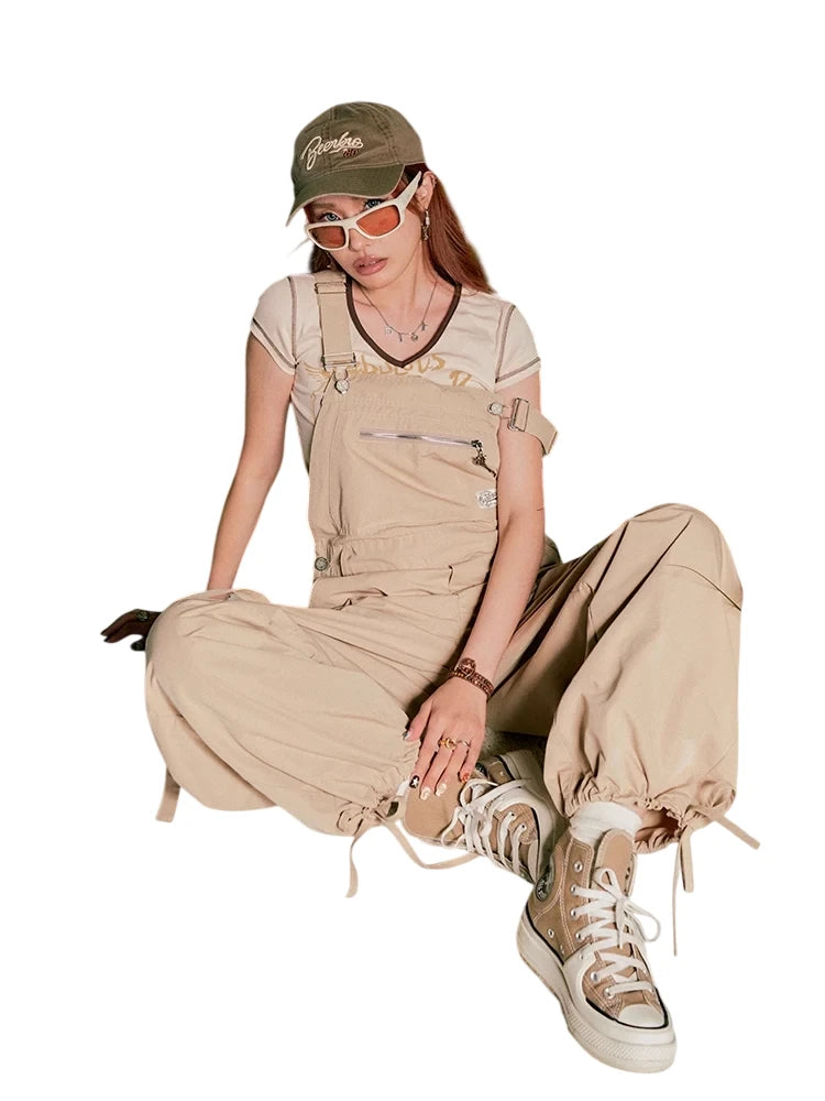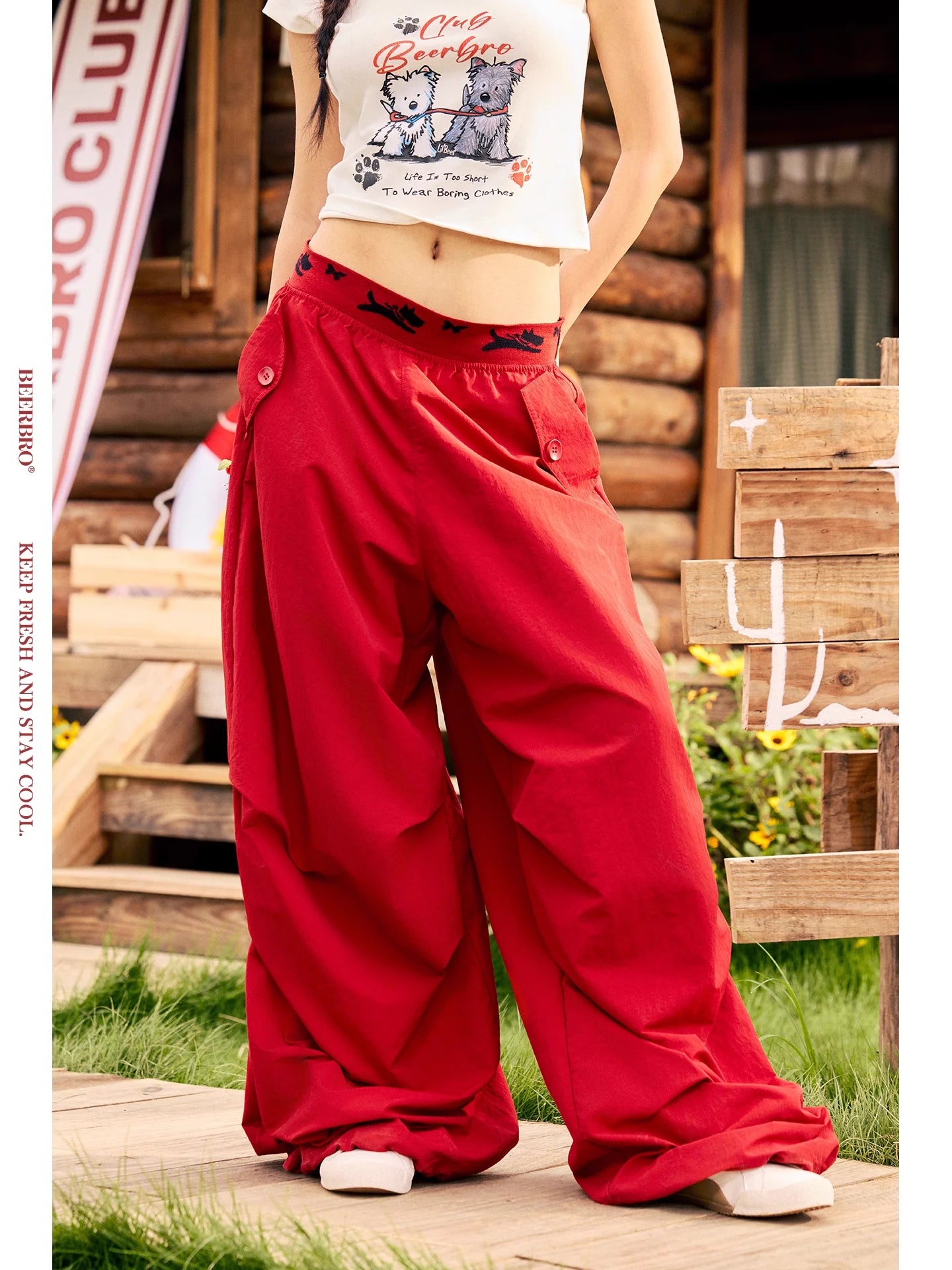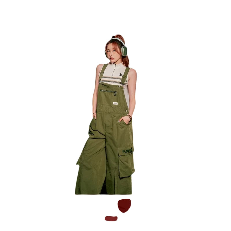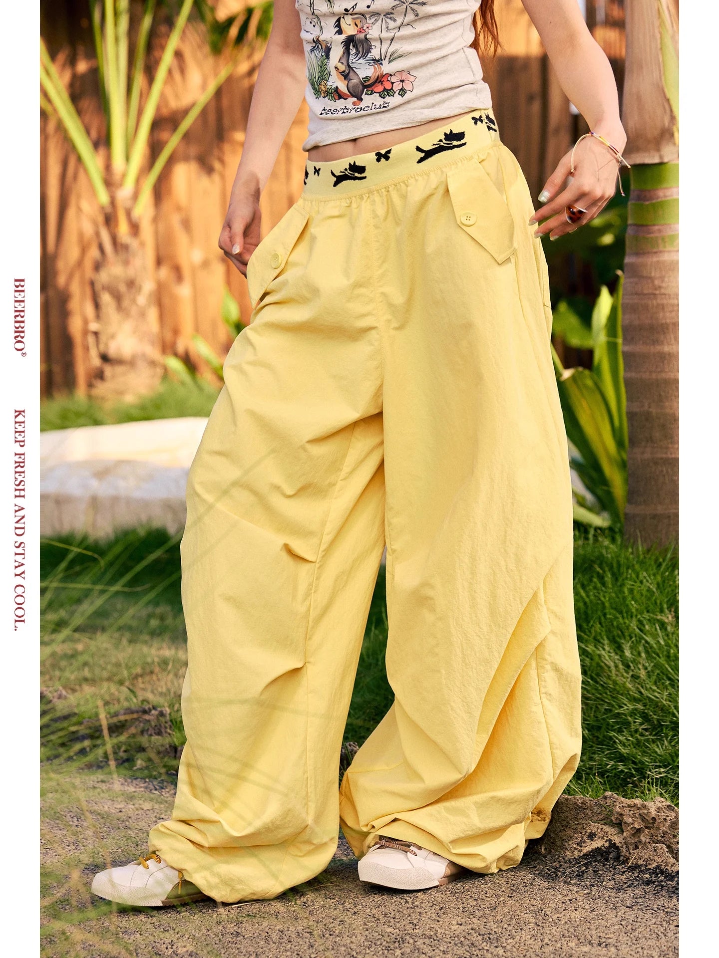 BeerBro Women's Green Parachute Cargo Pants with Drawstring Cuffs