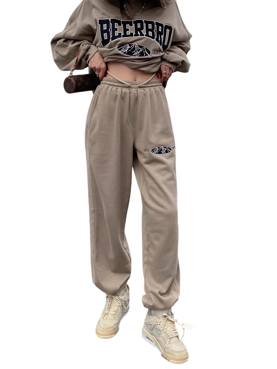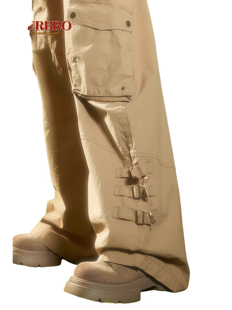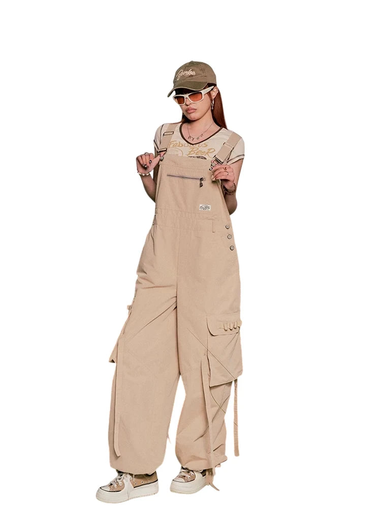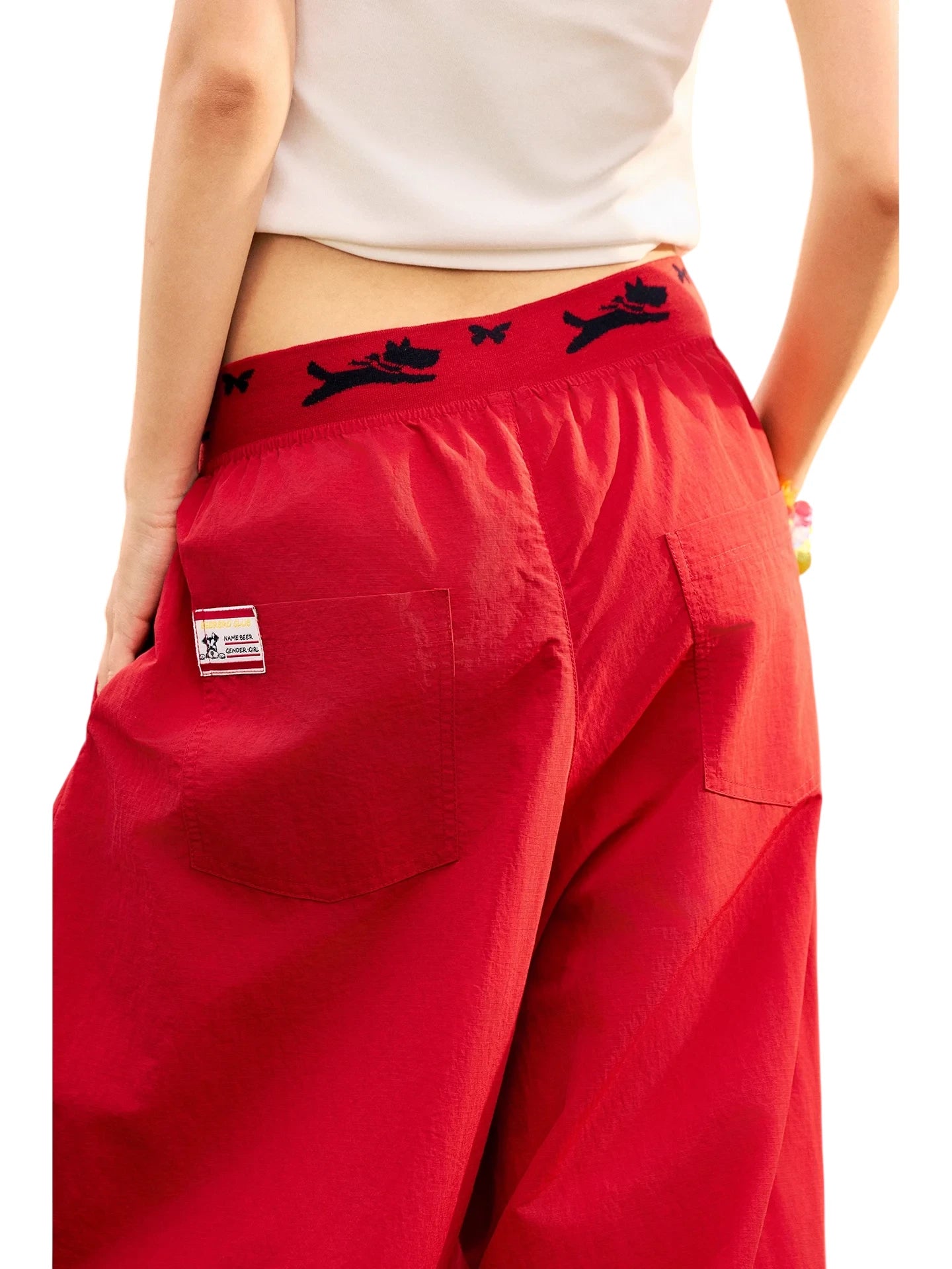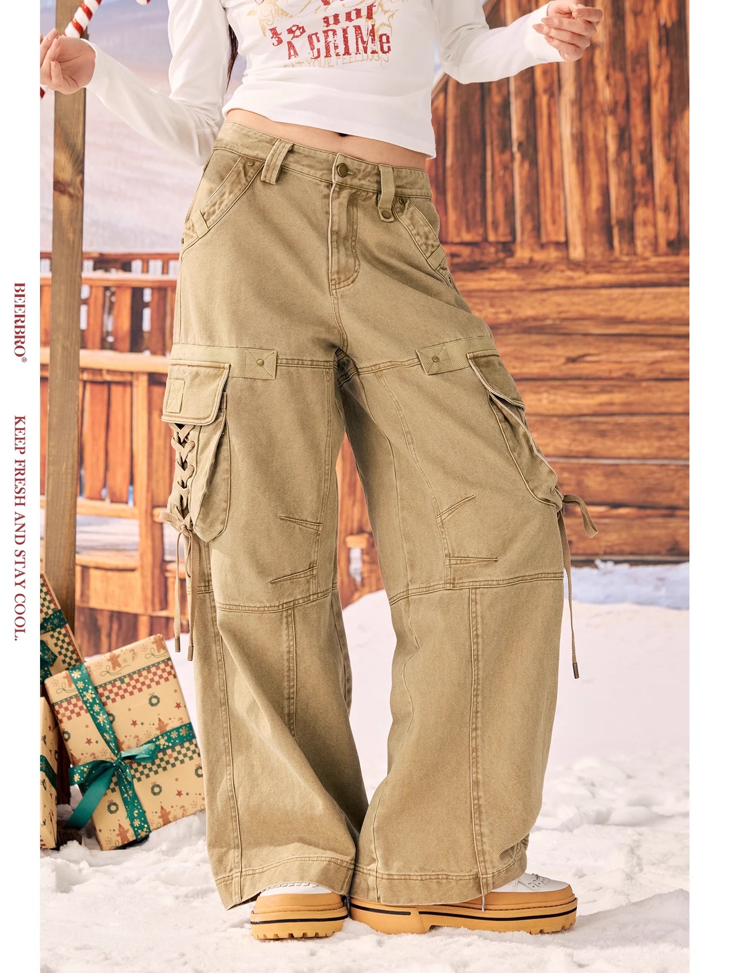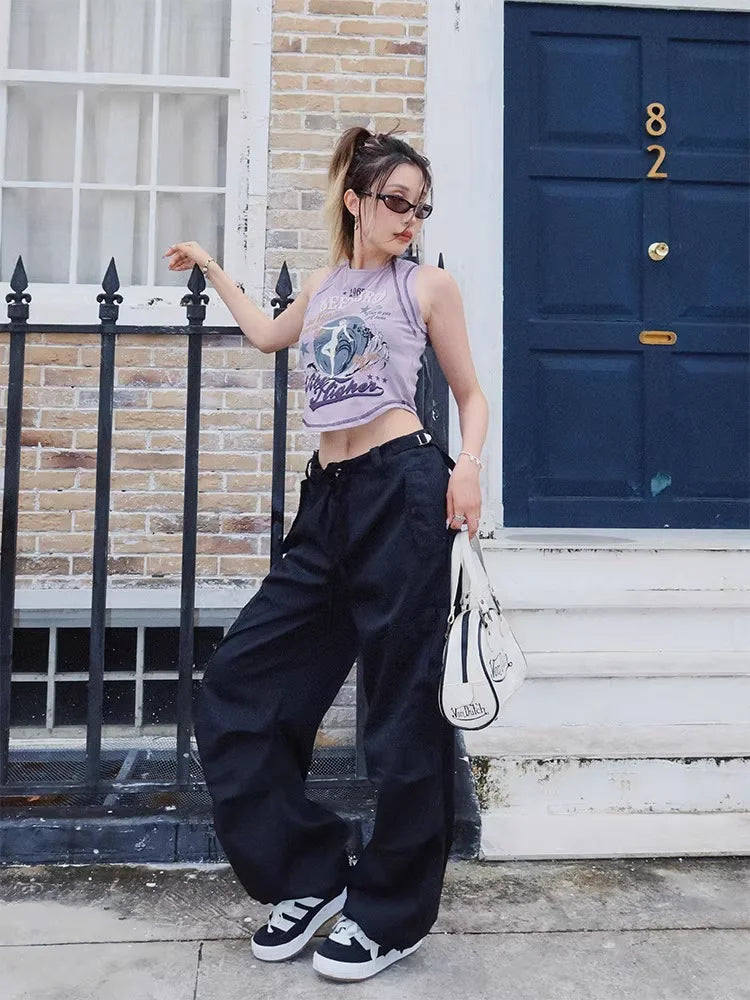 BeerBro Women's Green Parachute Cargo Pants with Drawstring Cuffs