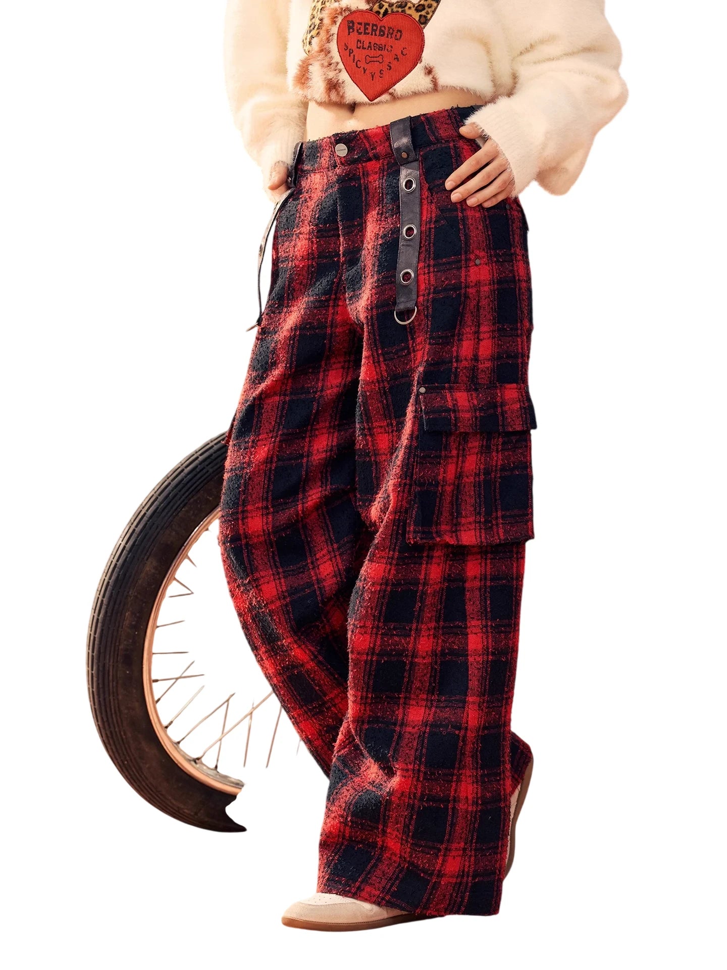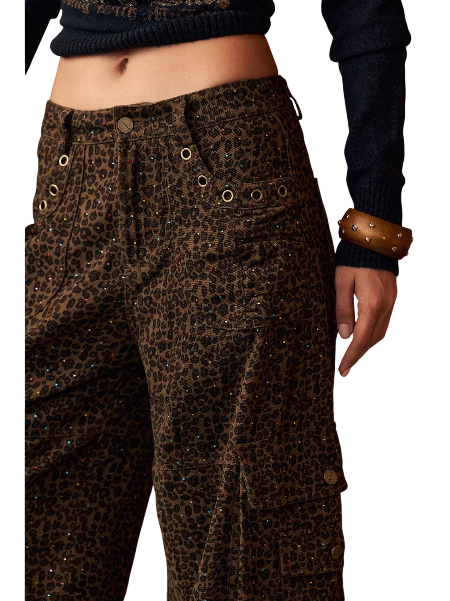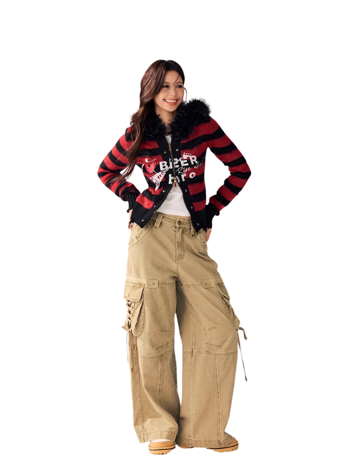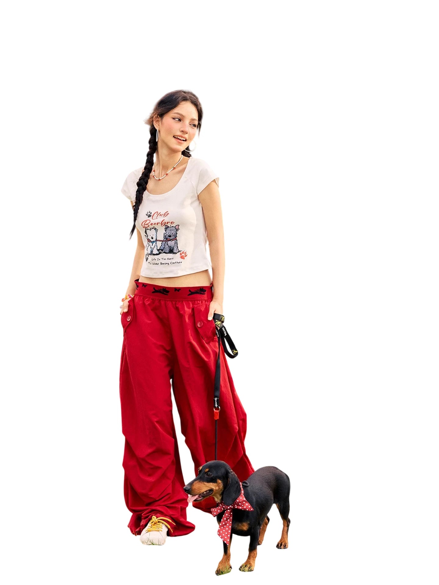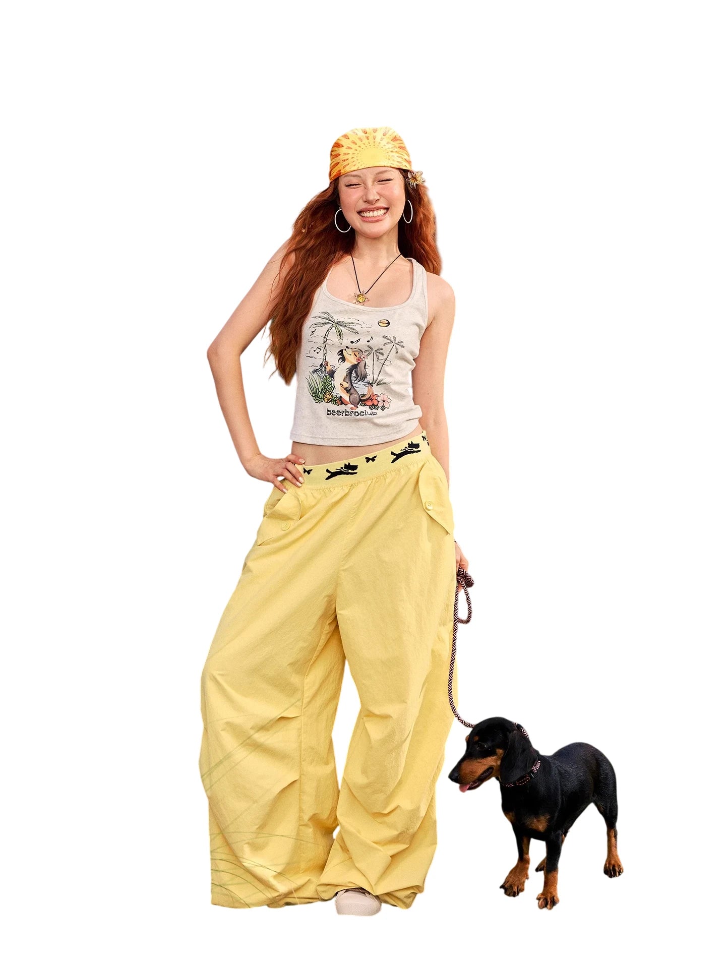 BeerBro Women's Green Parachute Cargo Pants with Drawstring Cuffs