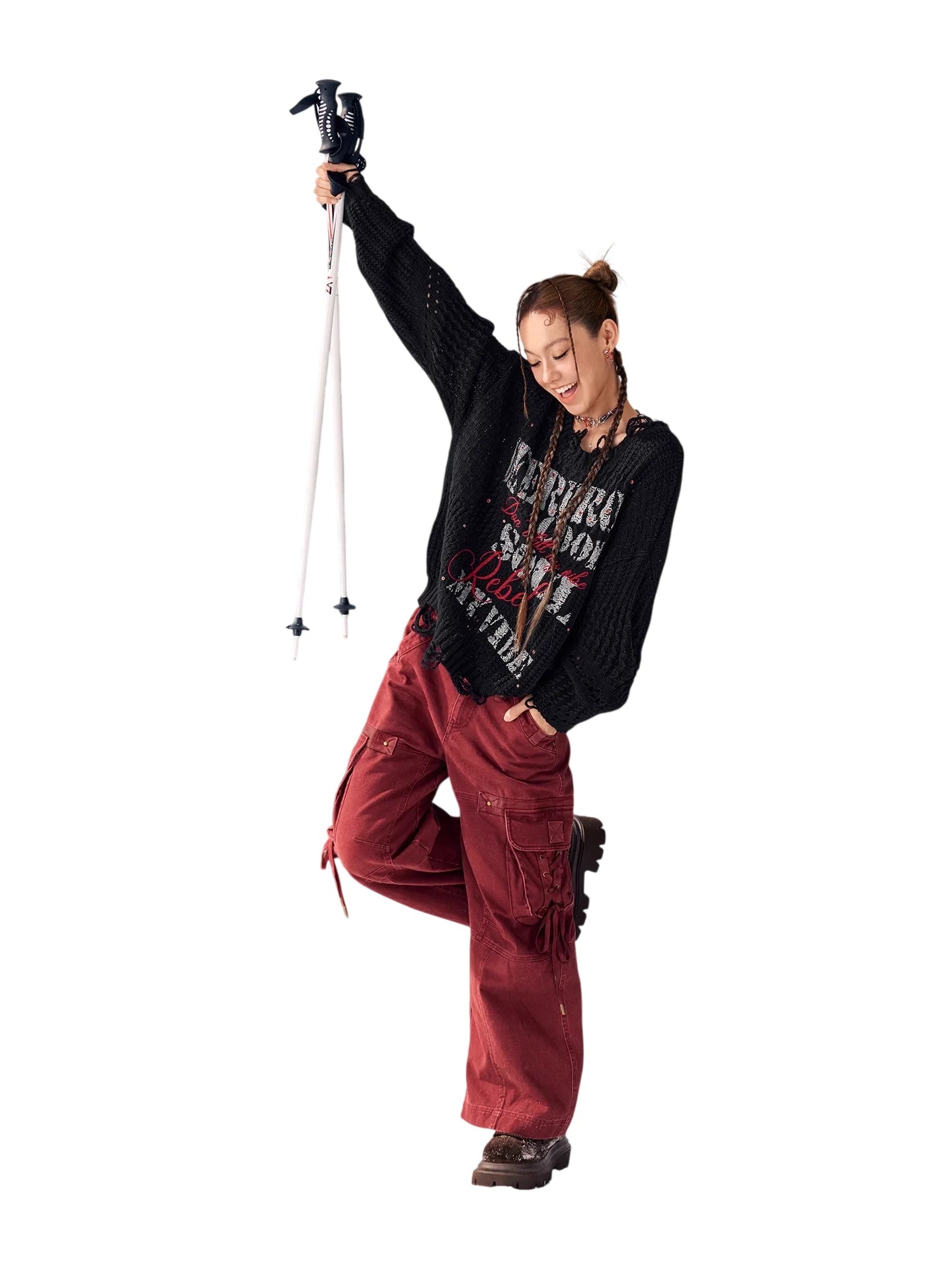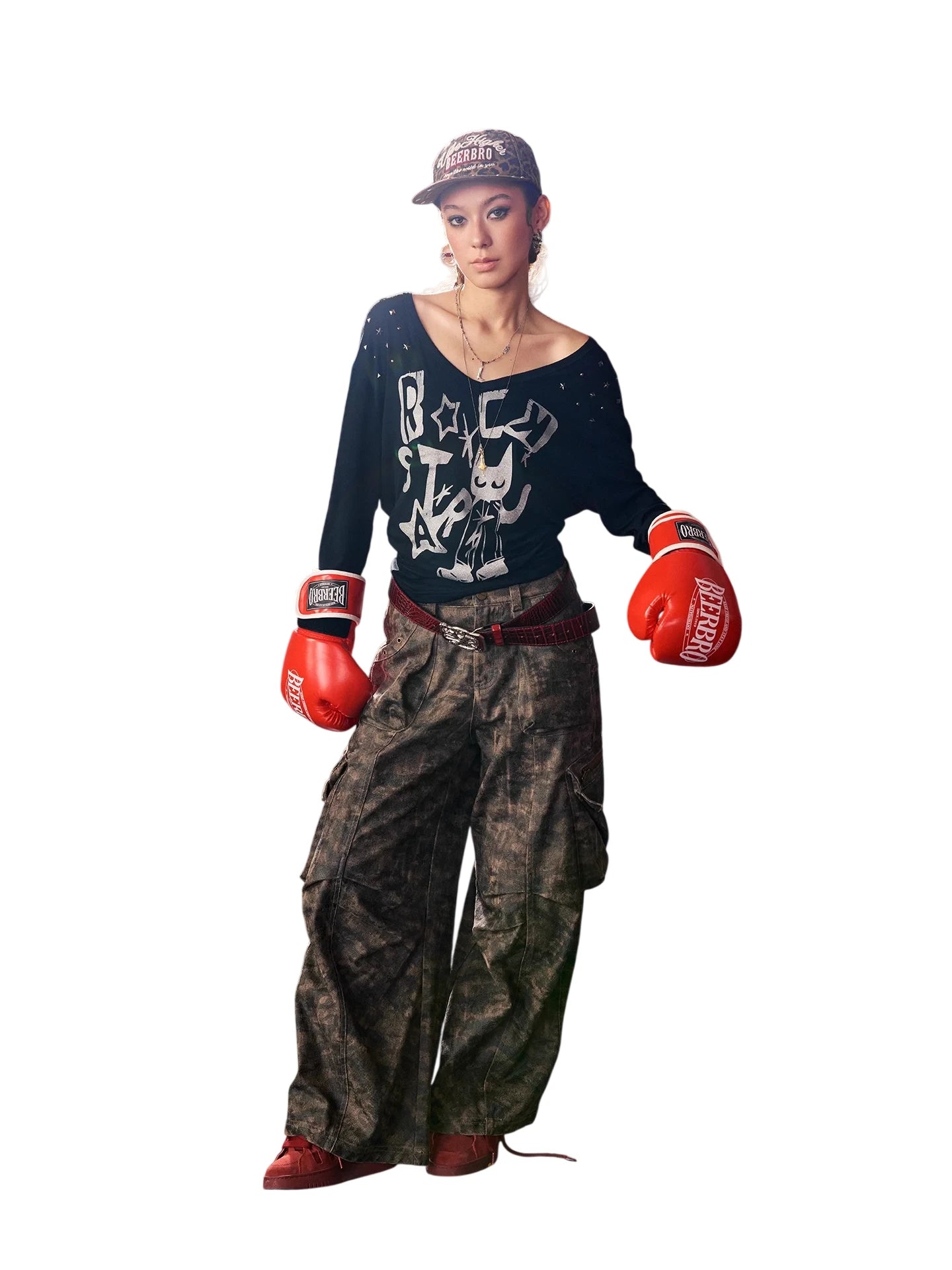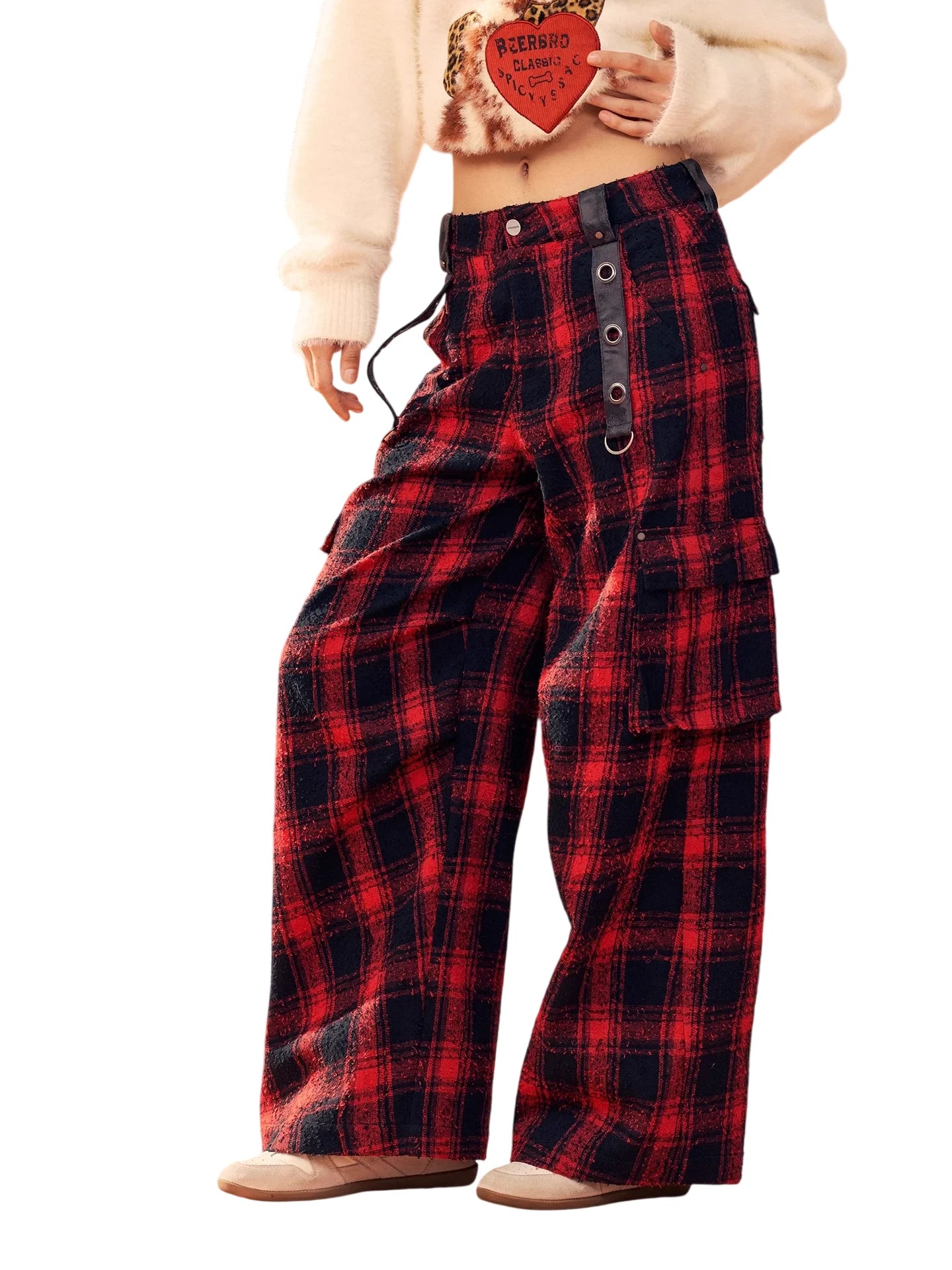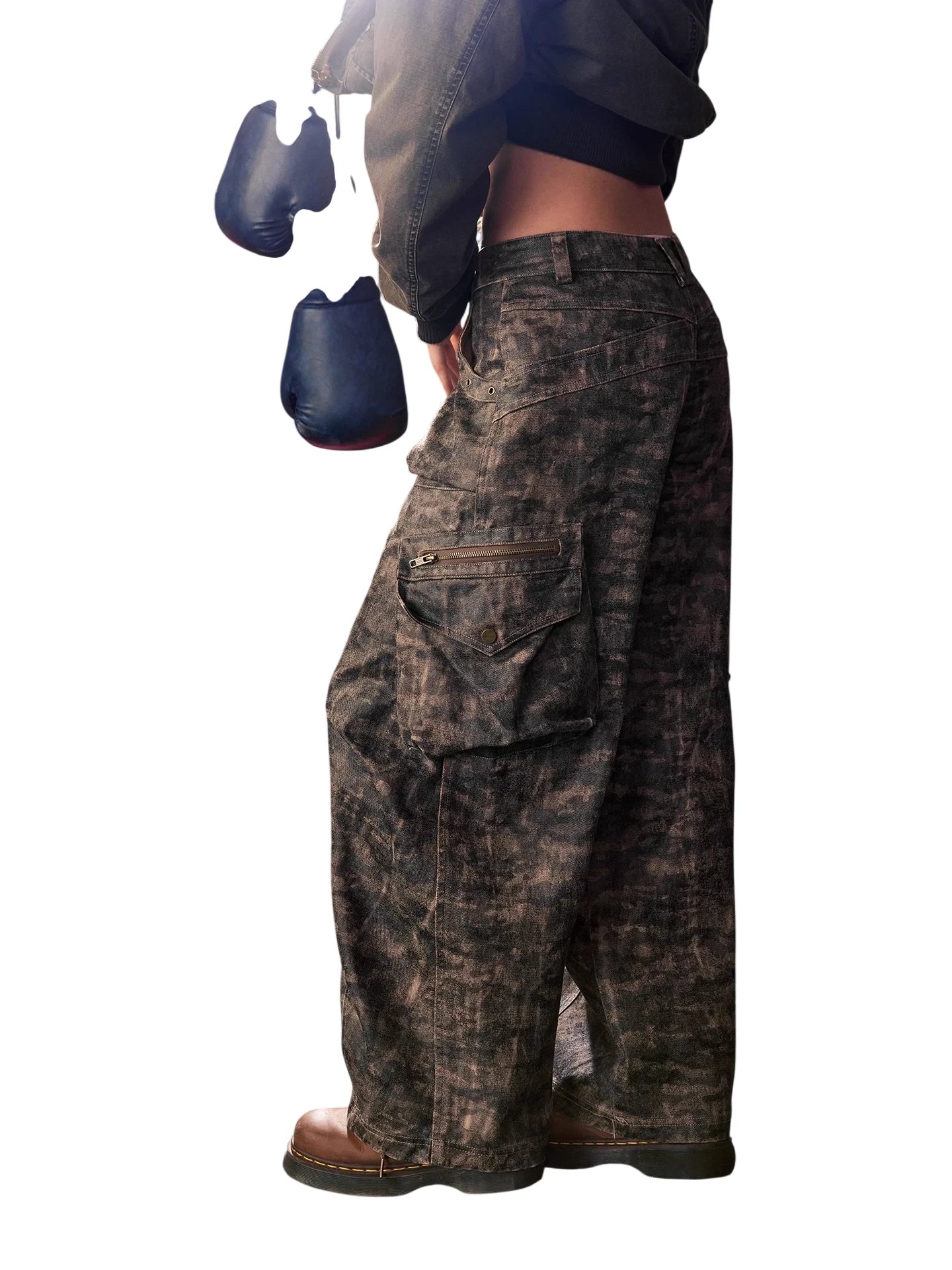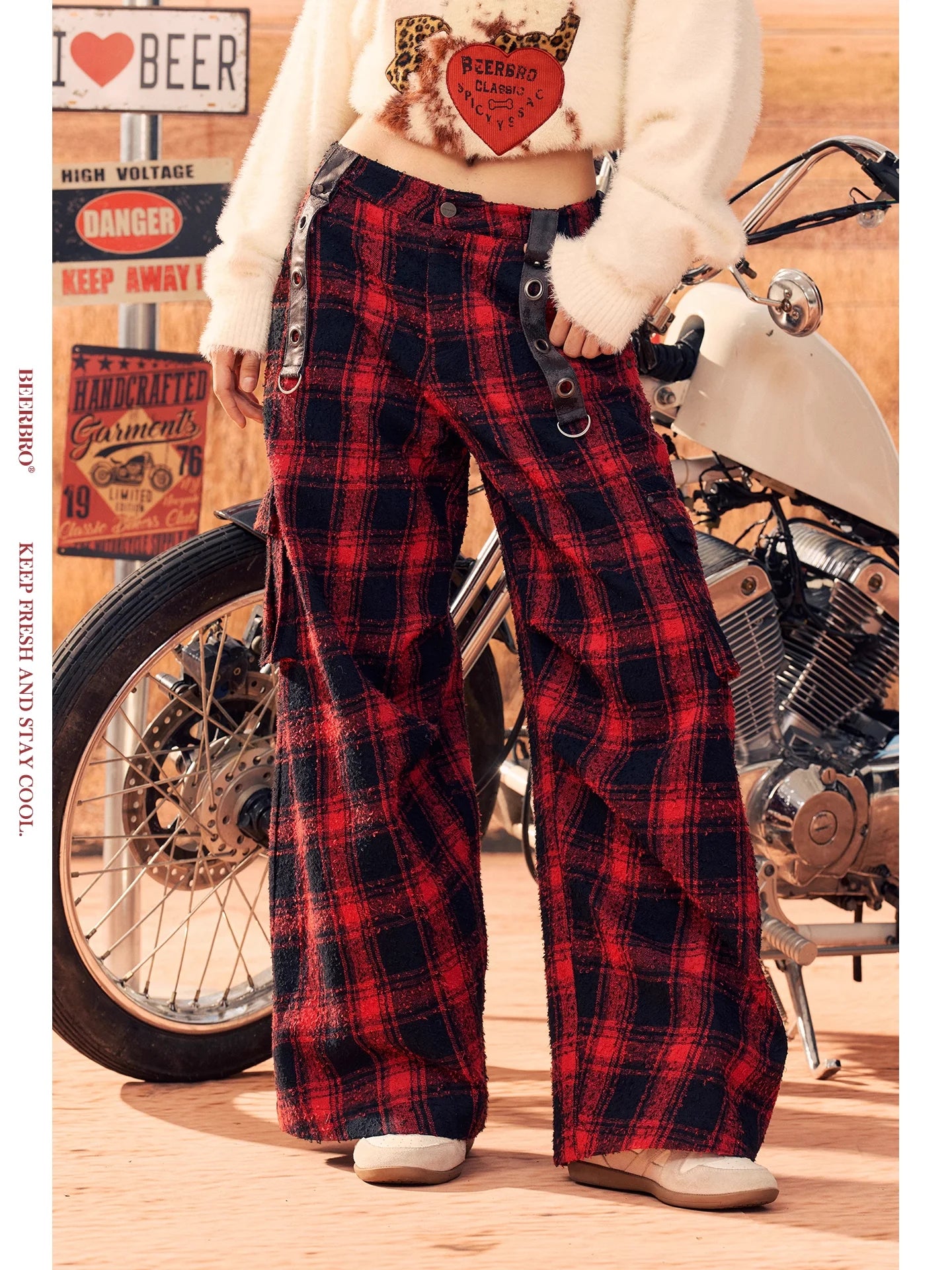 BeerBro Women's Green Parachute Cargo Pants with Drawstring Cuffs