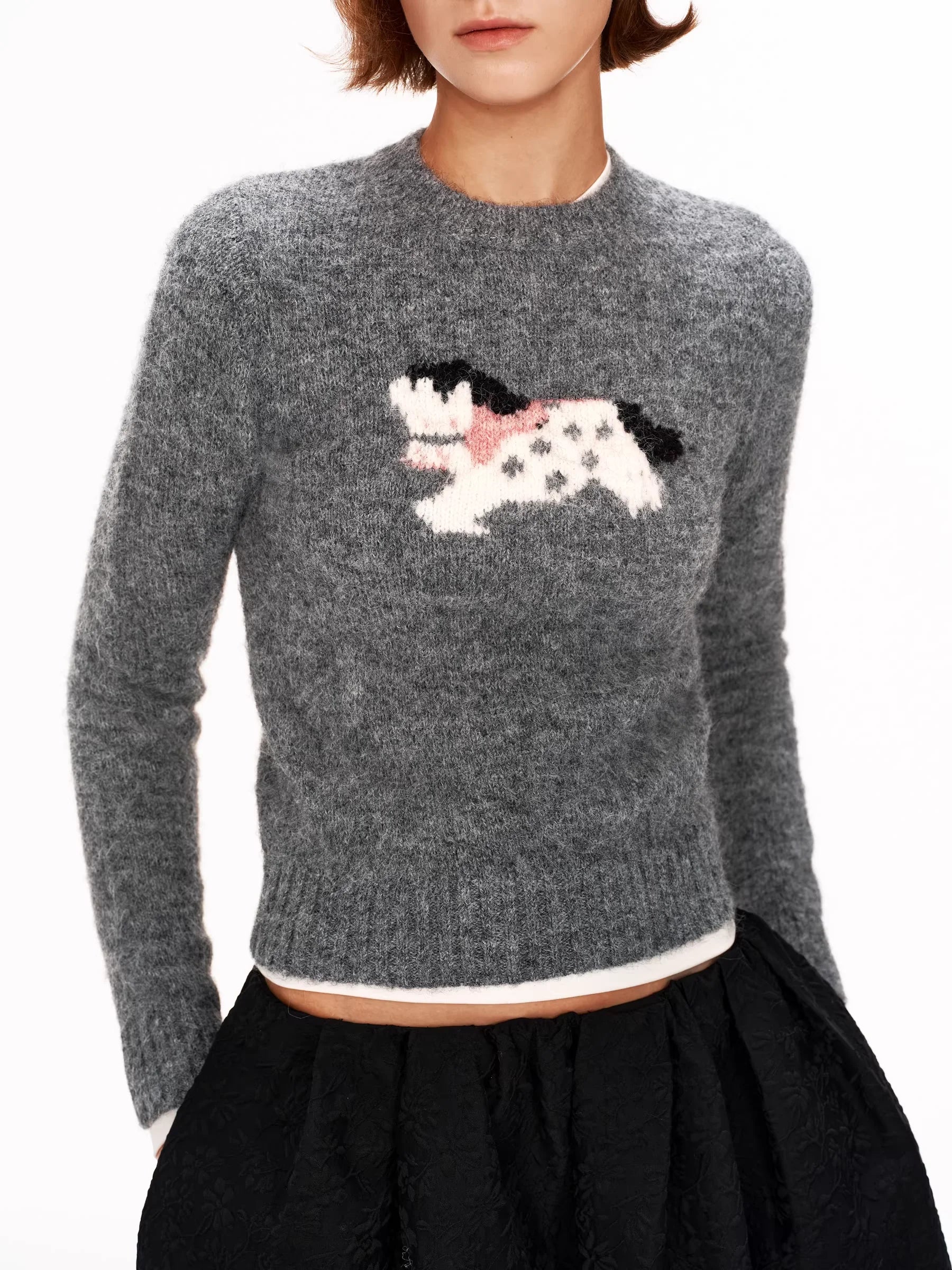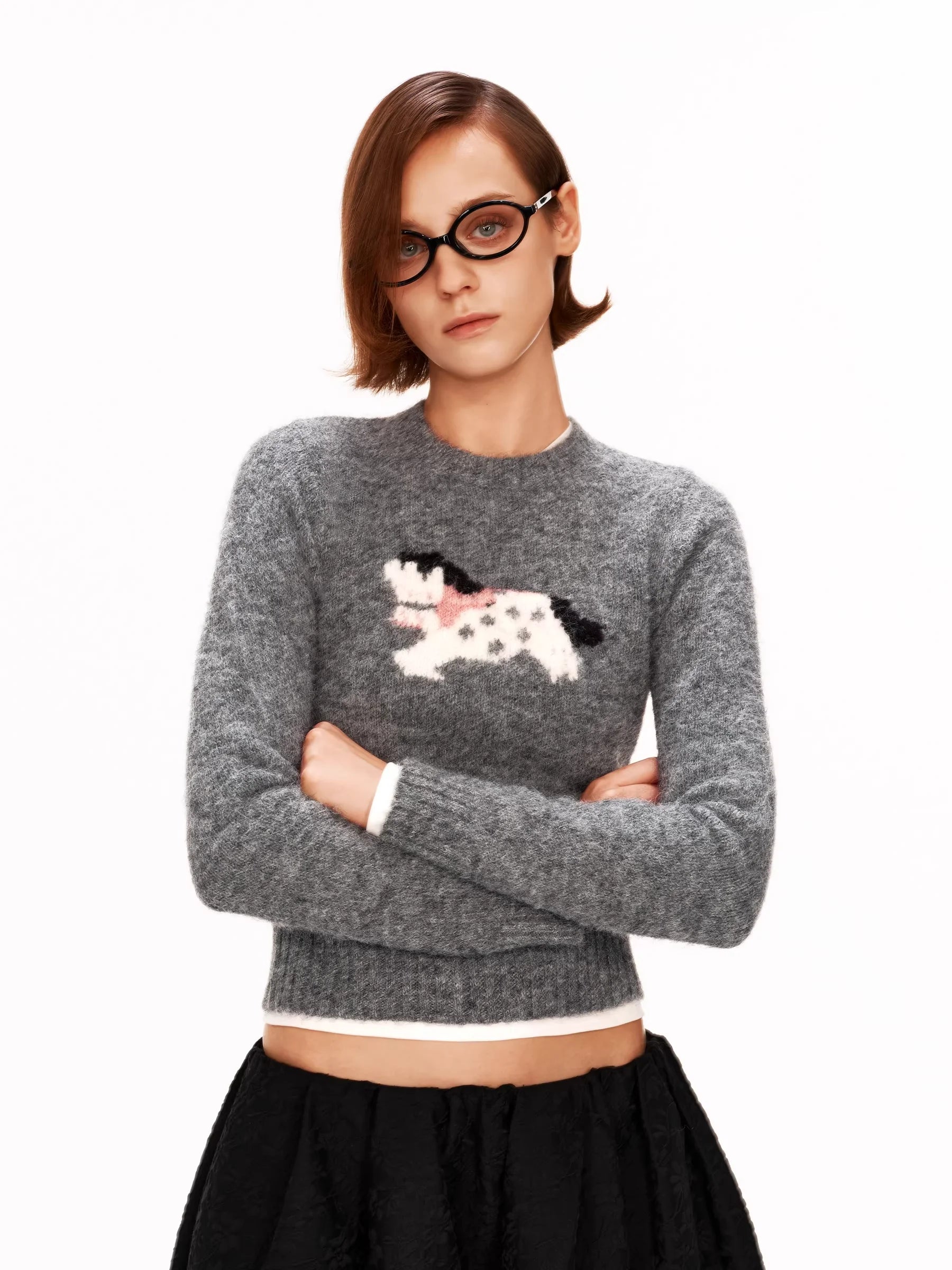 PUKI Embroidered Wool Sweater with Dog Motif and Crew Neck