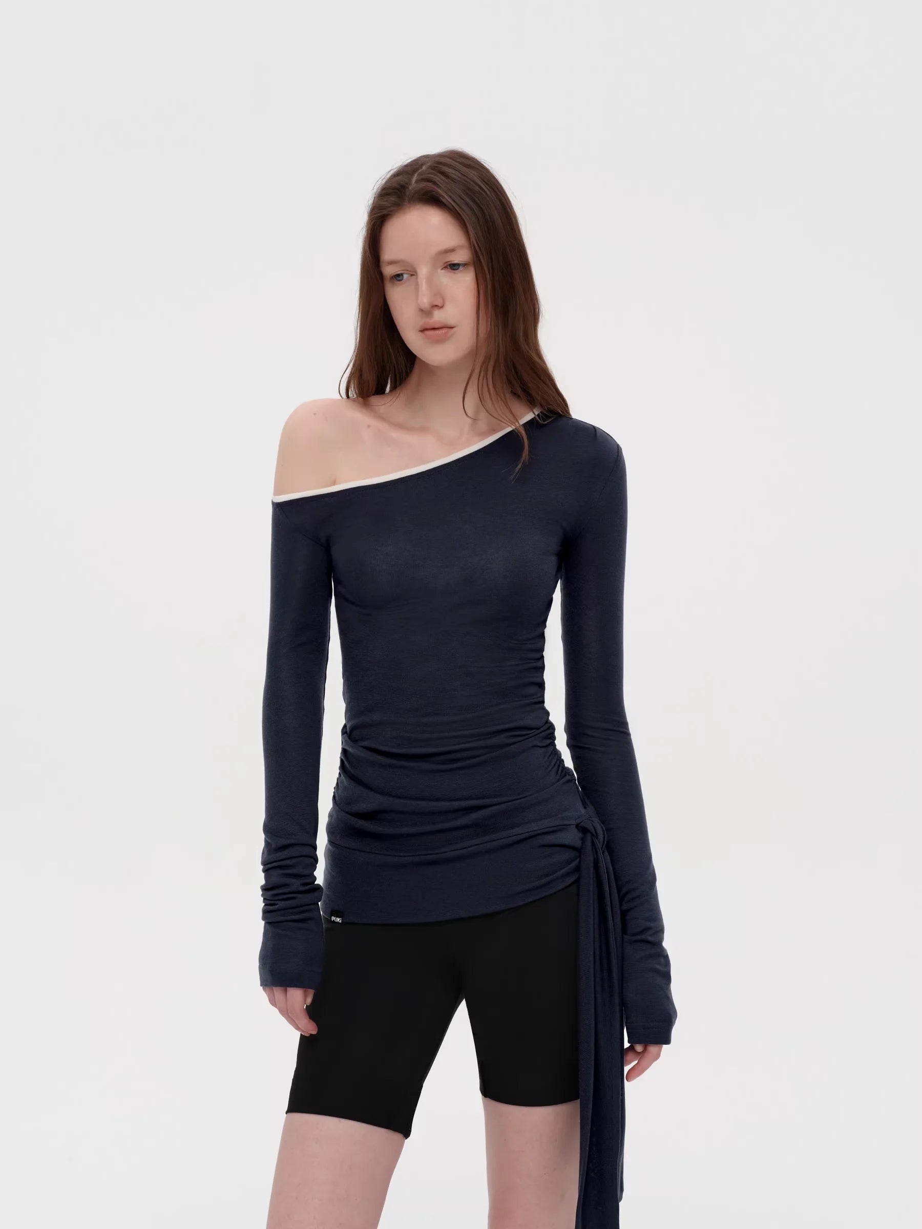 PUKI Merino Wool Lyocell One-Shoulder Draped Ruched Top