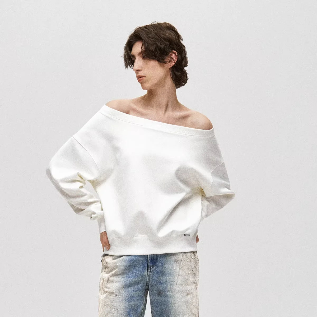 PUKI Two-Way Off-Shoulder Loose Fit Sweatshirt