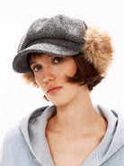 Stay stylish and warm with this vintage-inspired women's newsboy cap crafted from a soft 50% wool blend. Featuring a classic grey herringbone pattern, the cap includes a structured brim and cozy, plush beige earflaps for added warmth in cold weather. Side button accents enhance its timeless silhouette, making it a perfect accessory for both fashion and functionality. Ideal for casual, everyday wear.