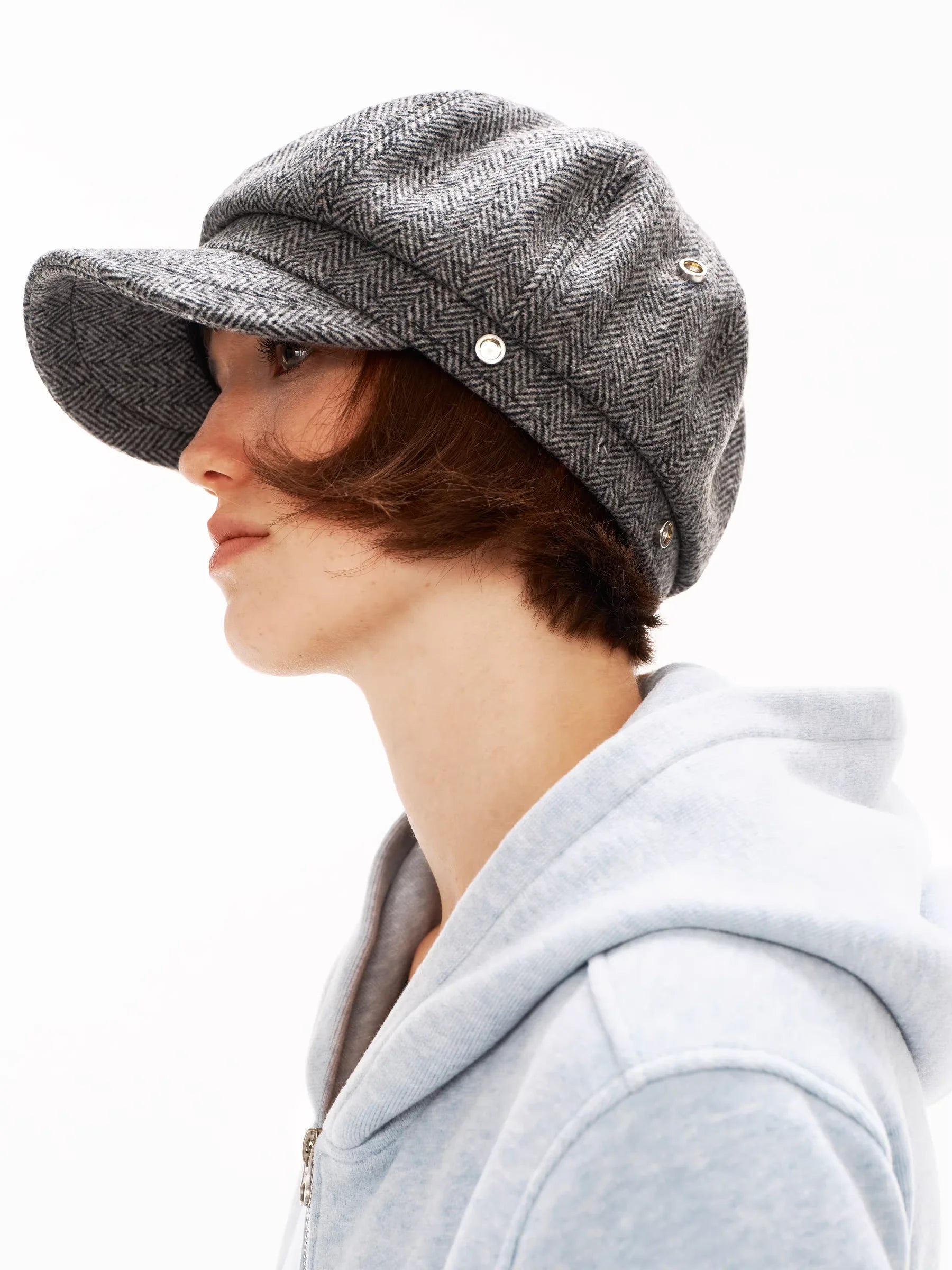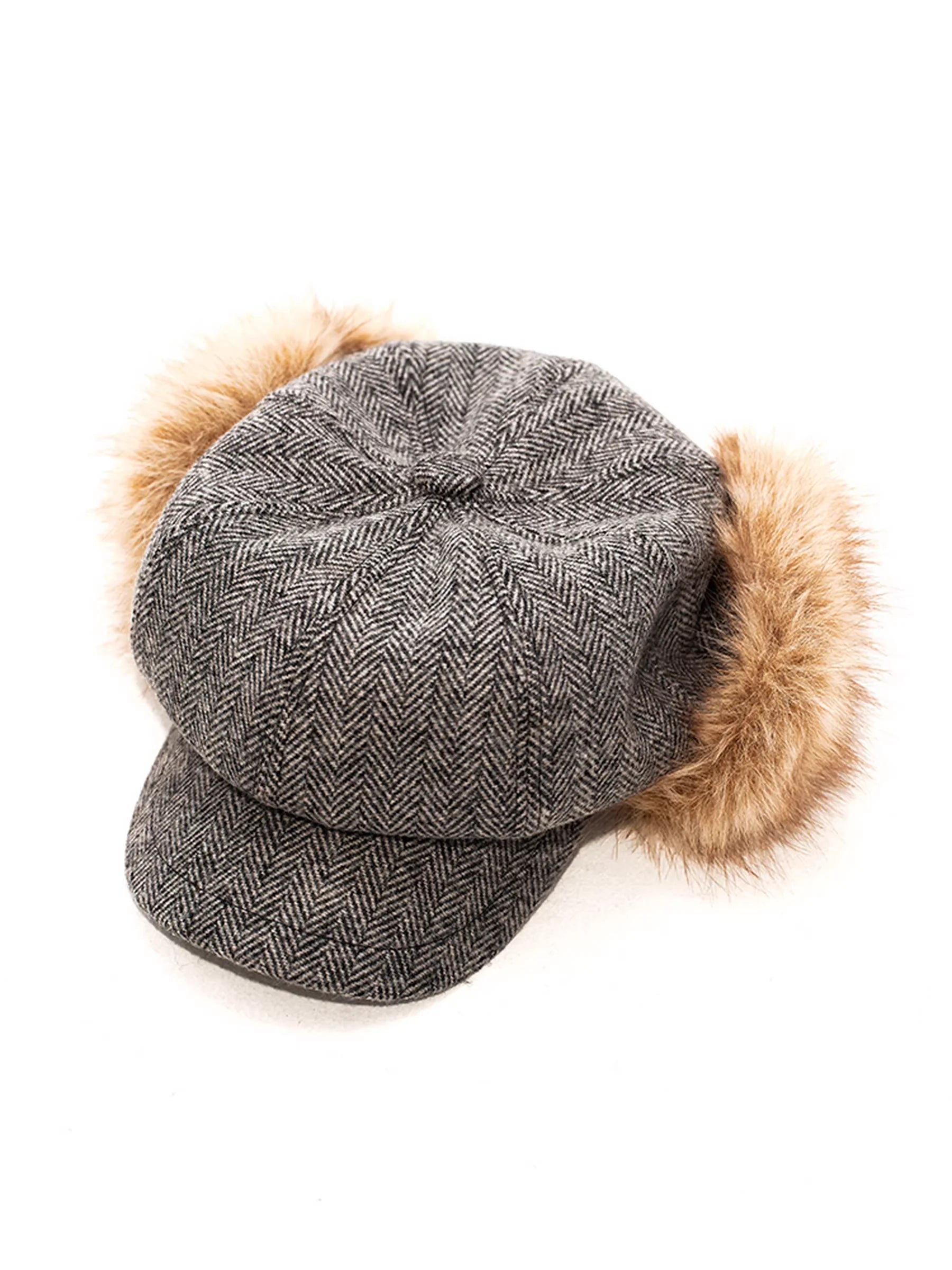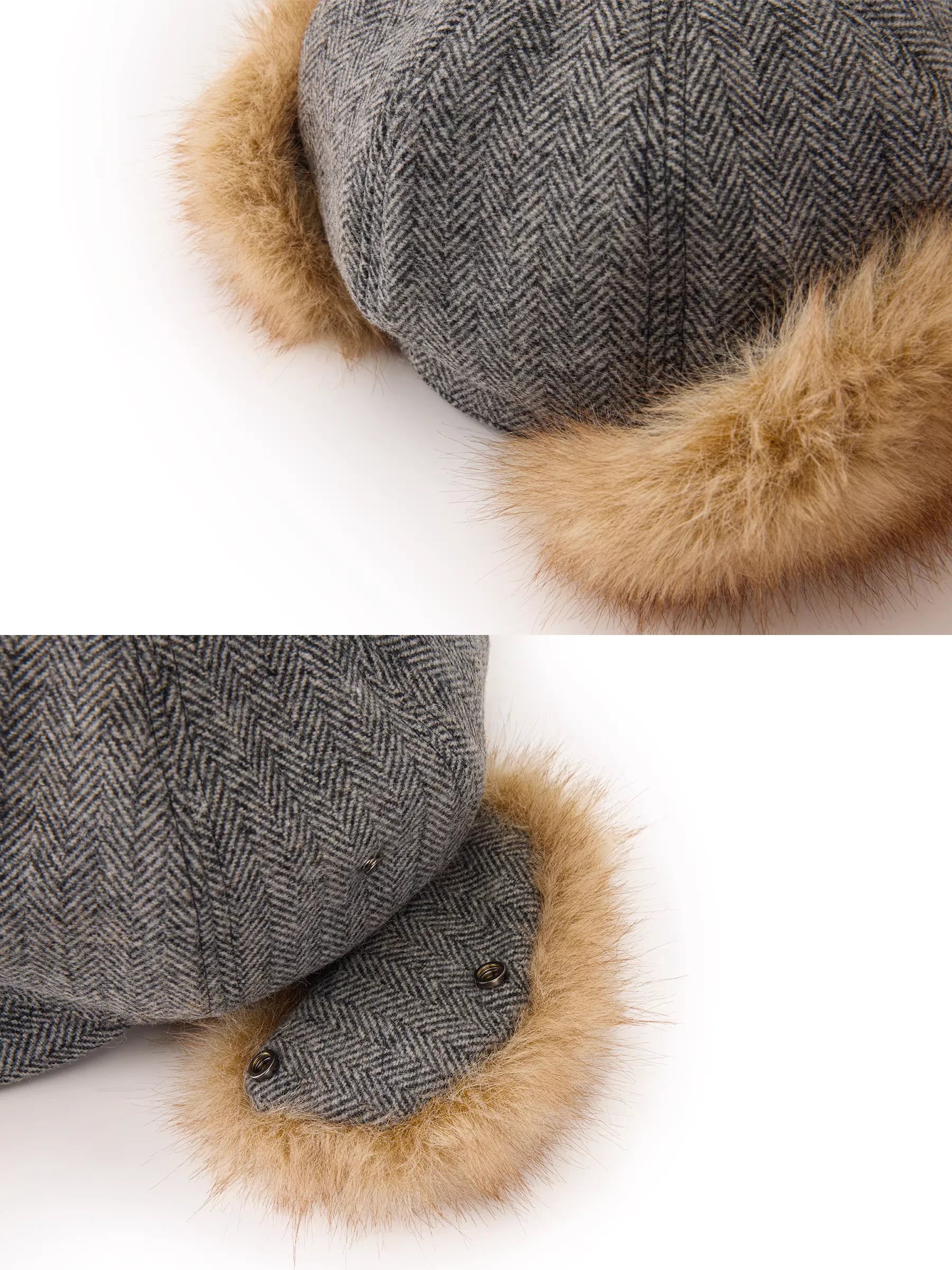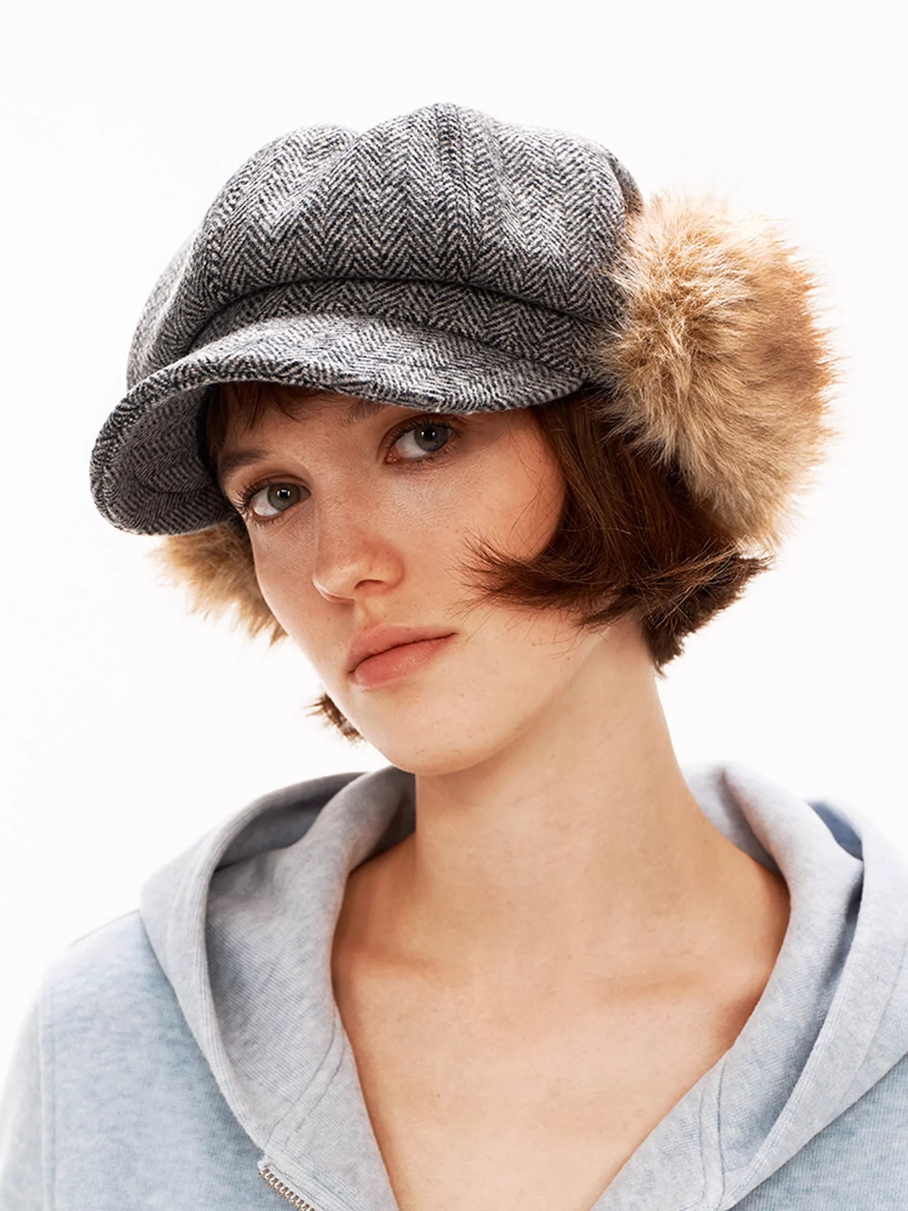 PUKI Wool Herringbone Earflap Newsboy Cap