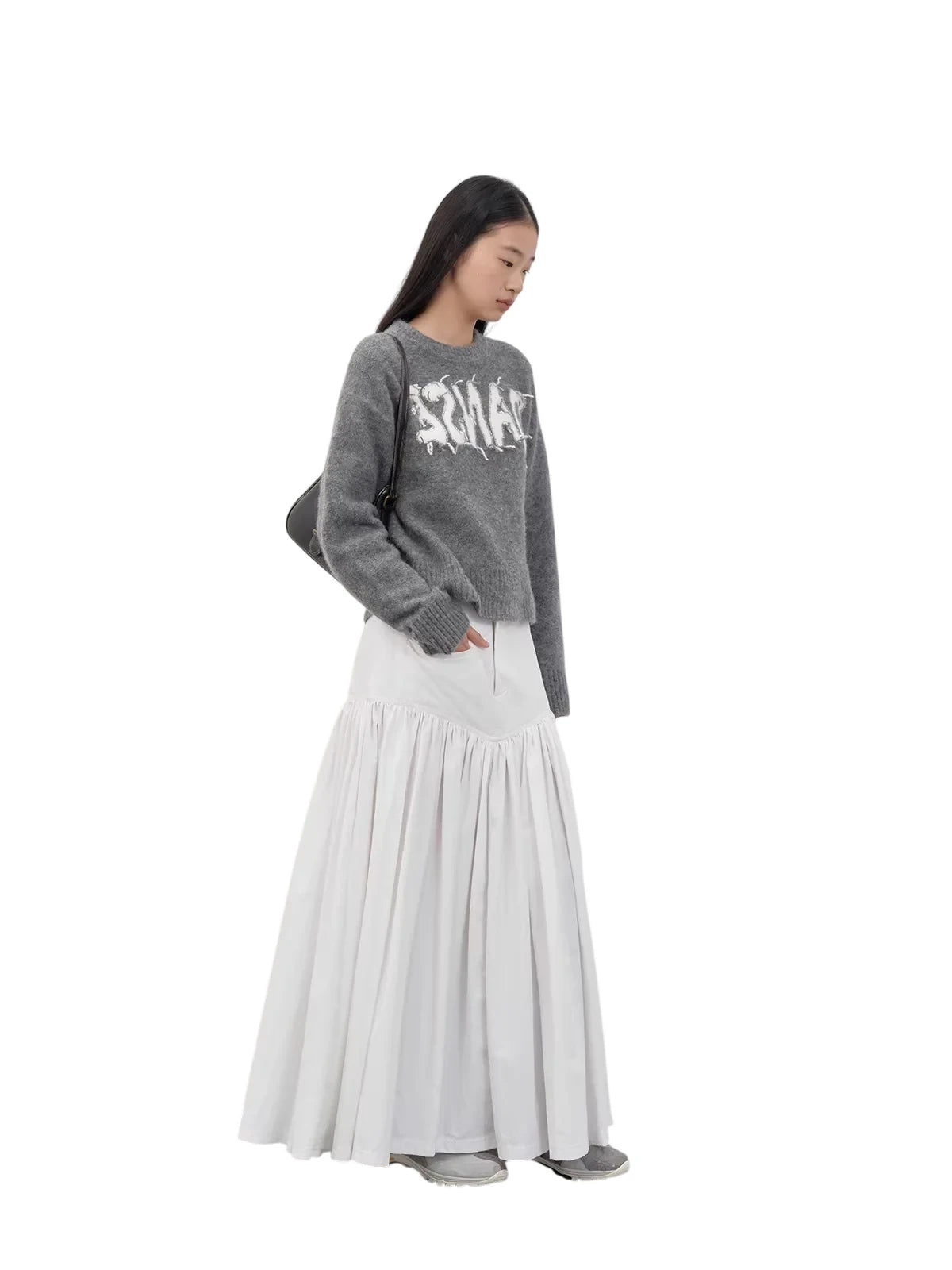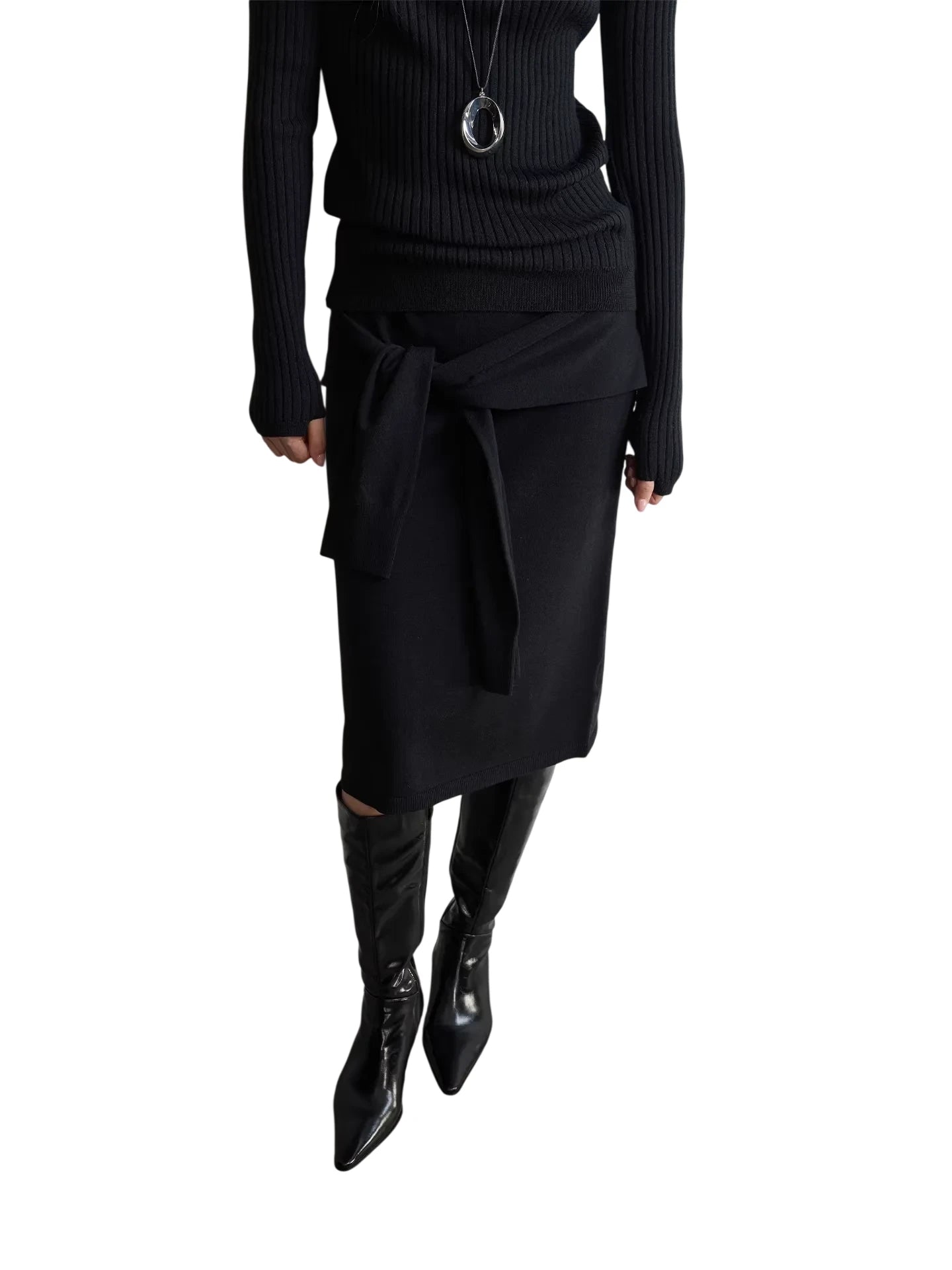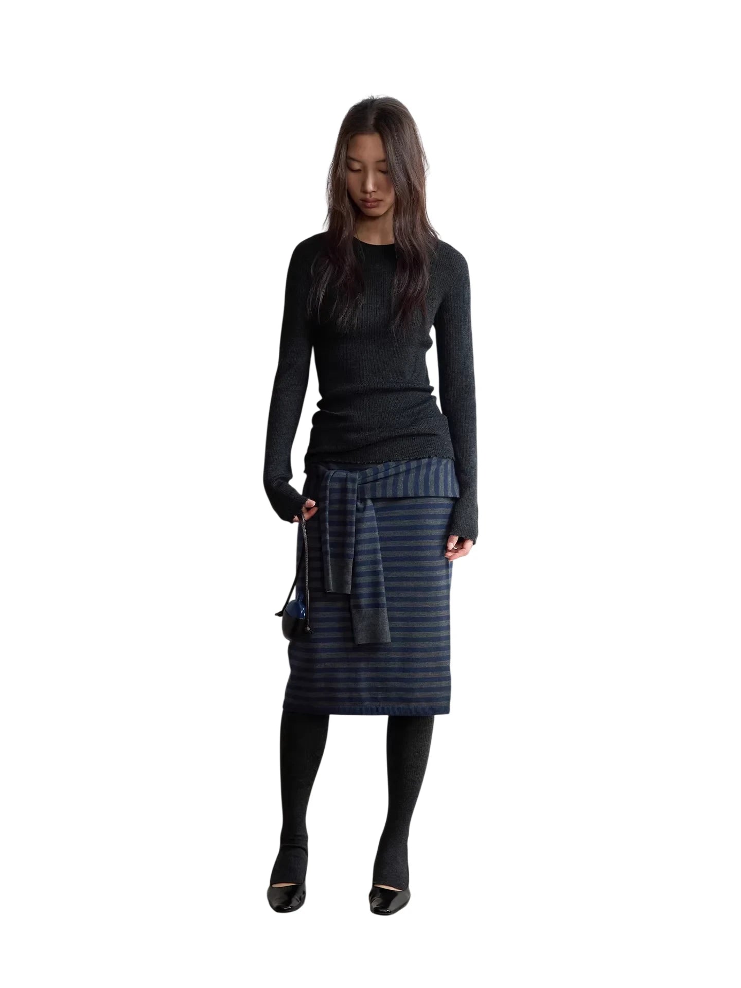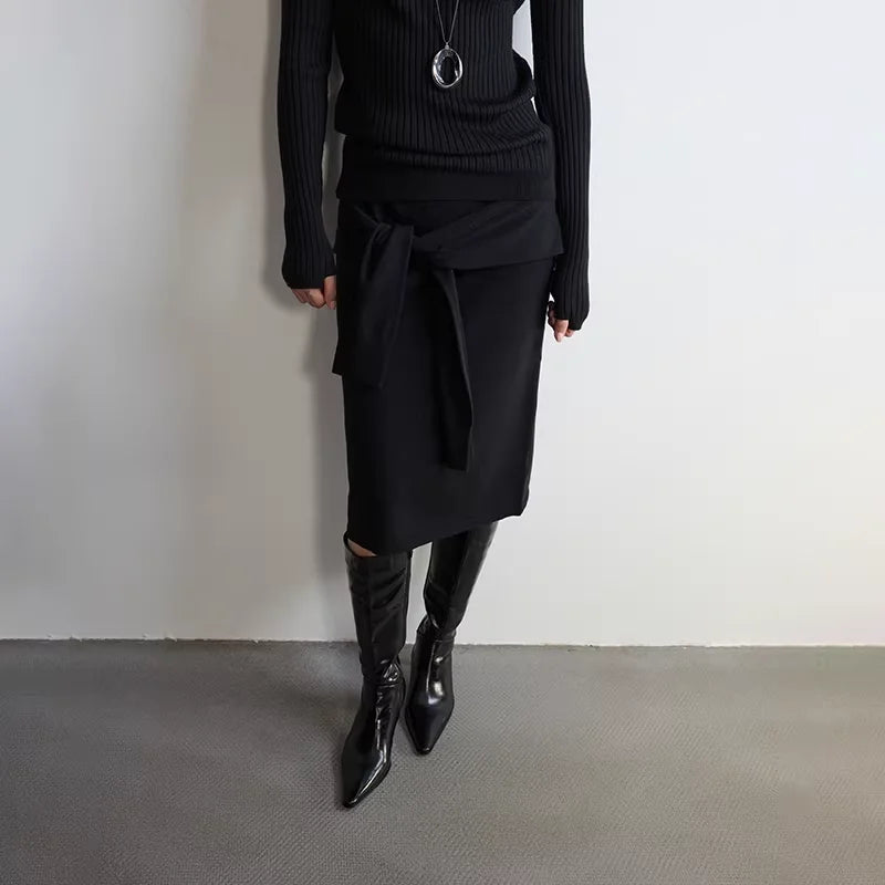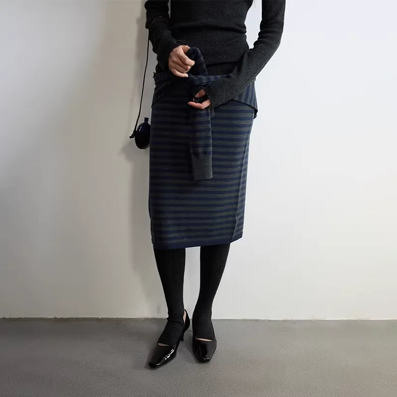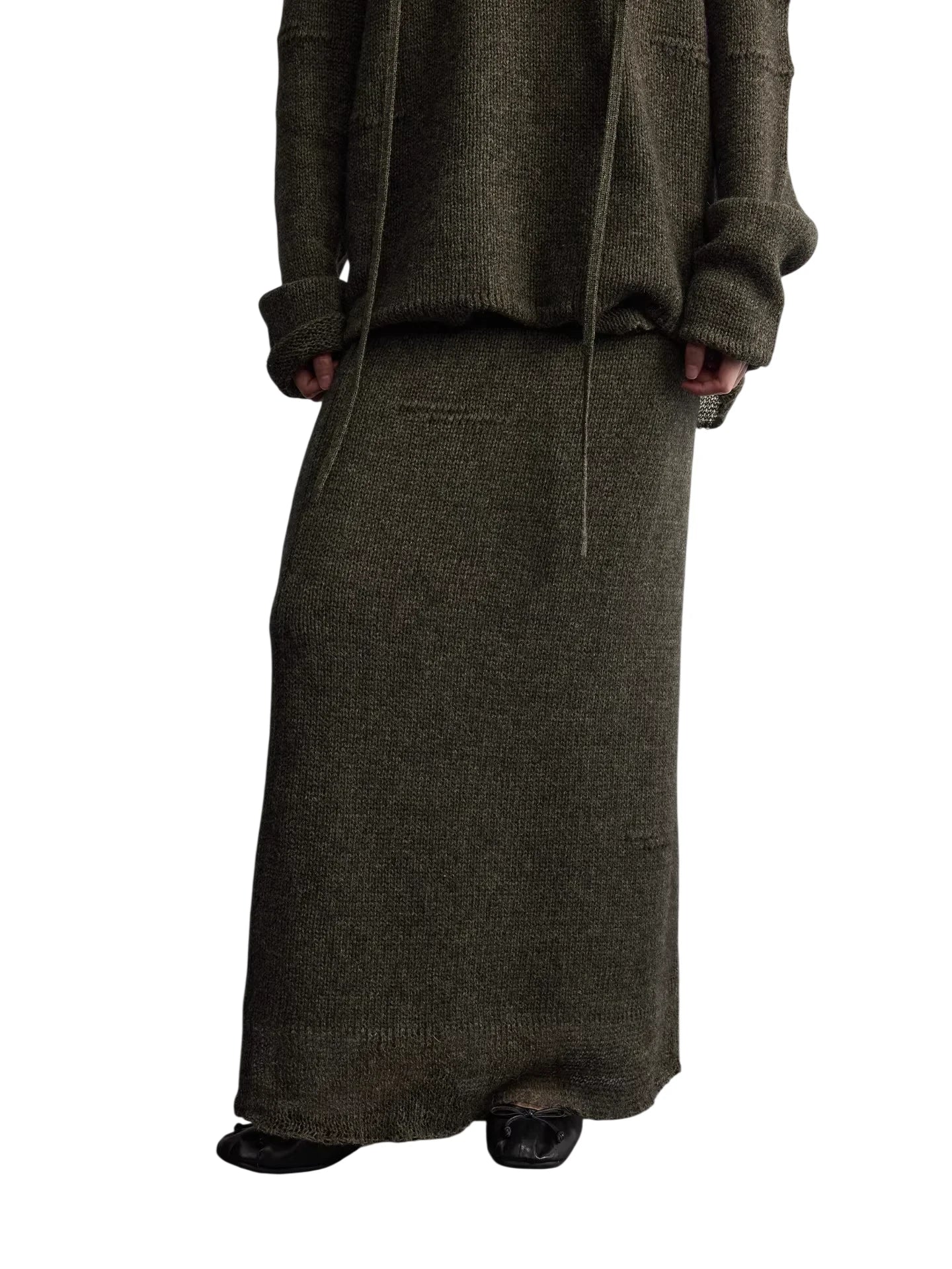 RandomPiece Yak Wool Blend Knit Midi Skirt with Elastic Waist