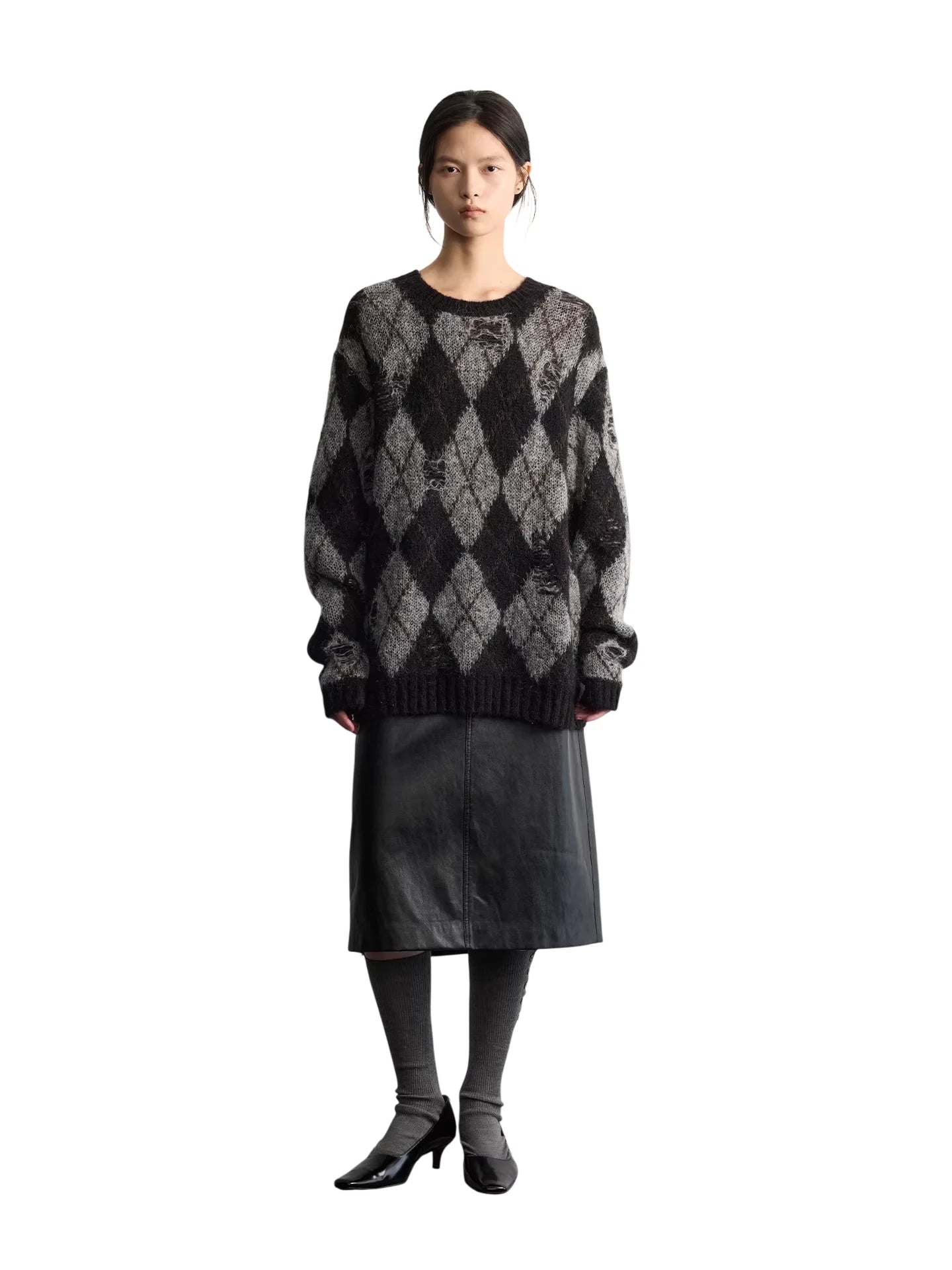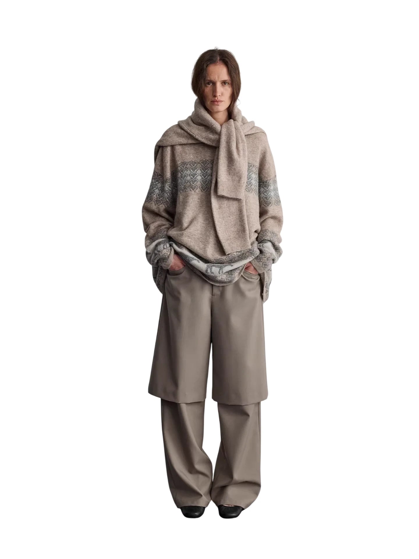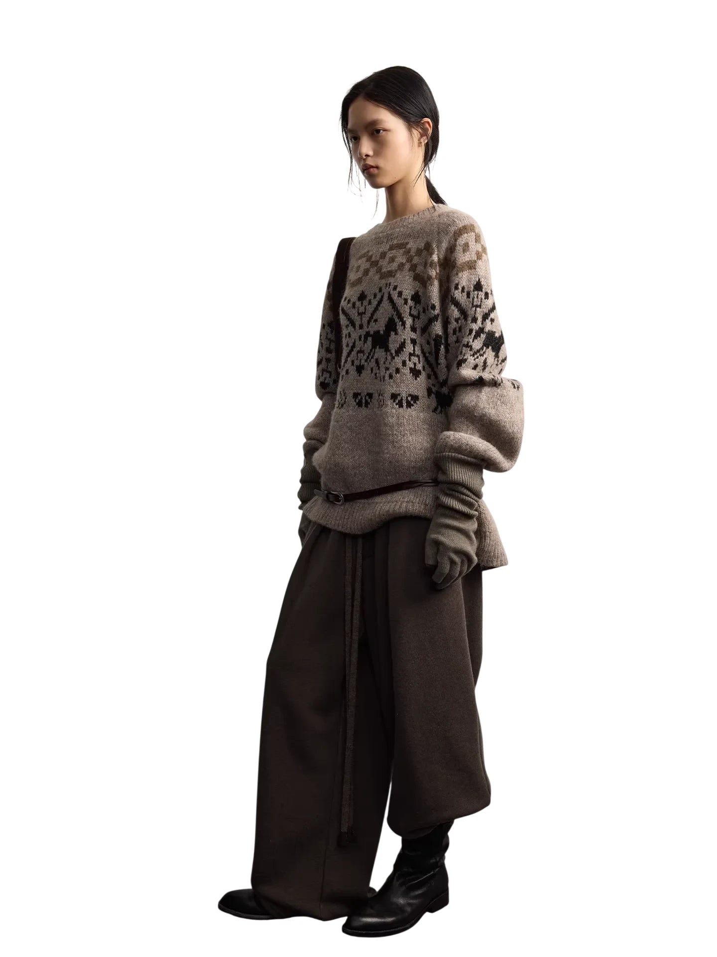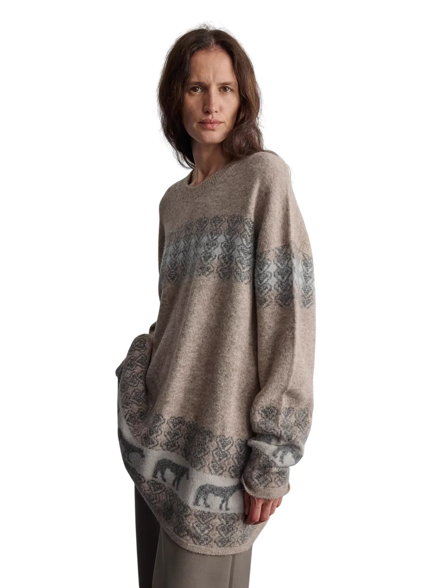 RandomPiece Wool Silk Blend Jacquard Oversized Sweater