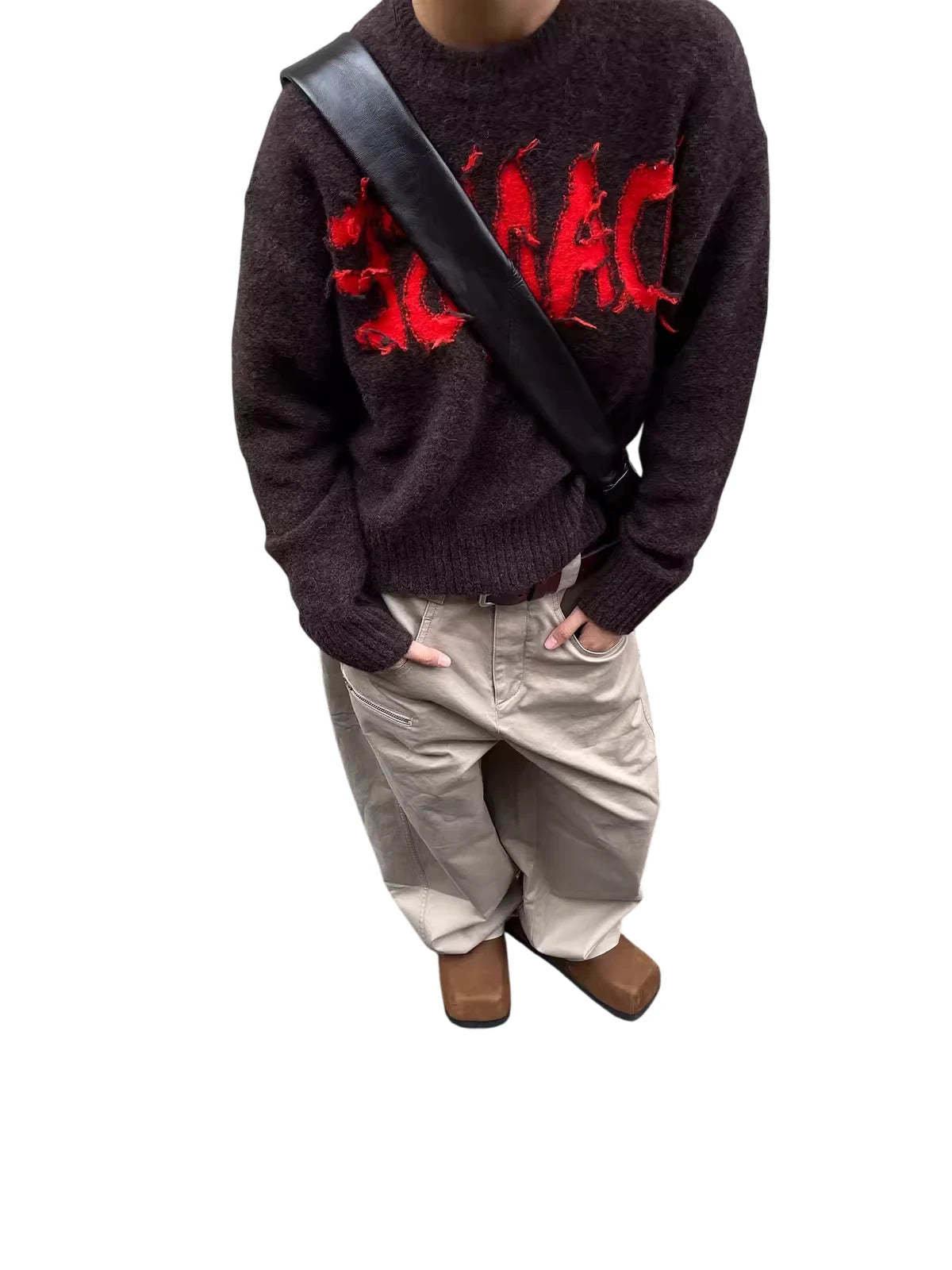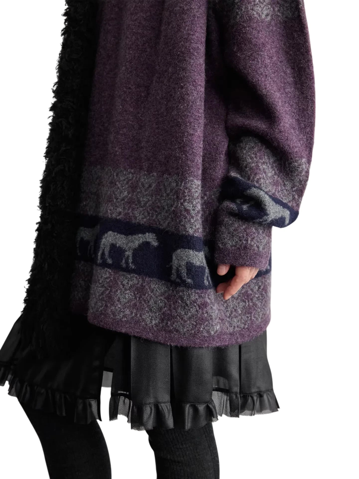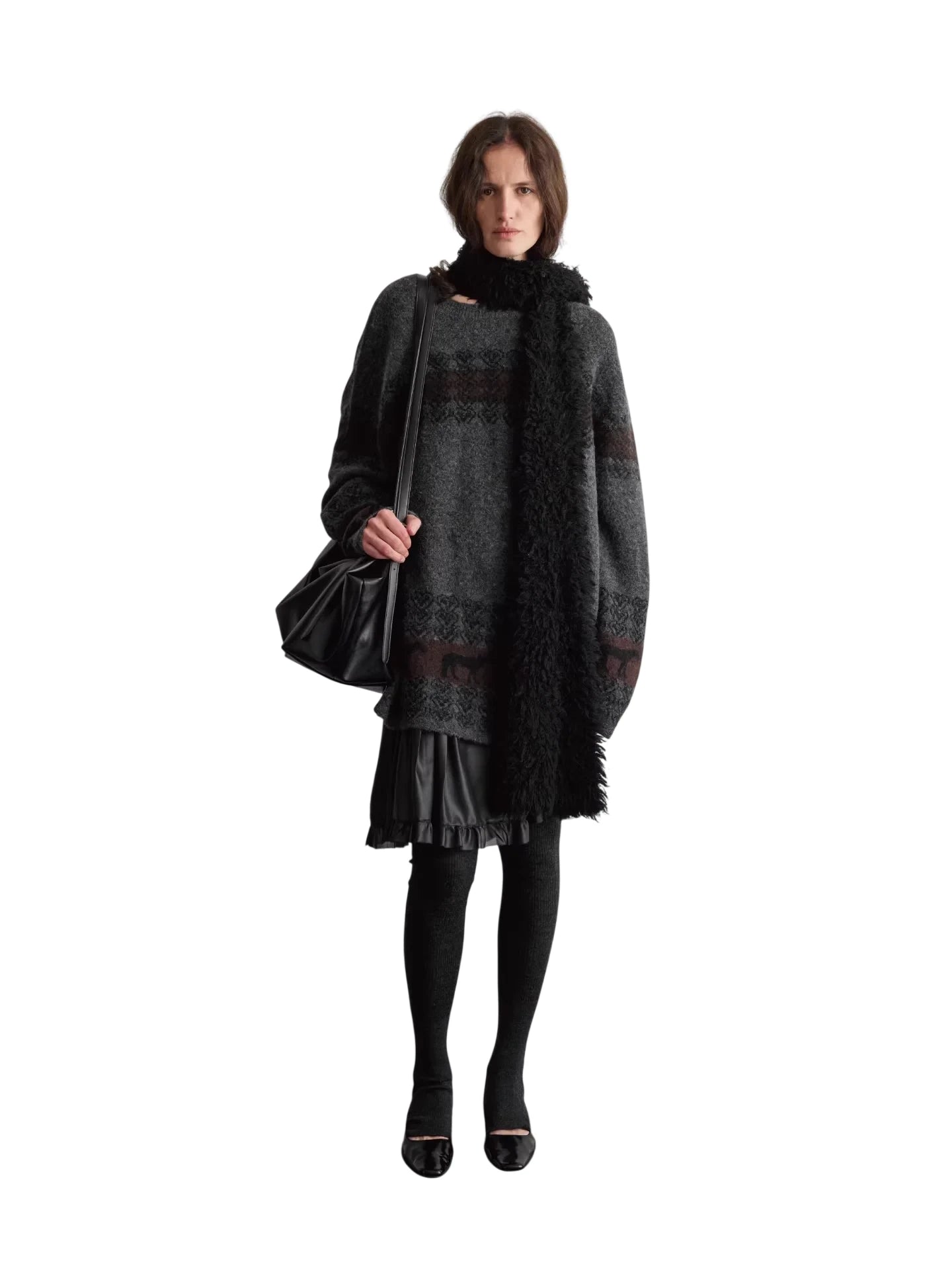 RandomPiece Wool Silk Blend Jacquard Oversized Sweater