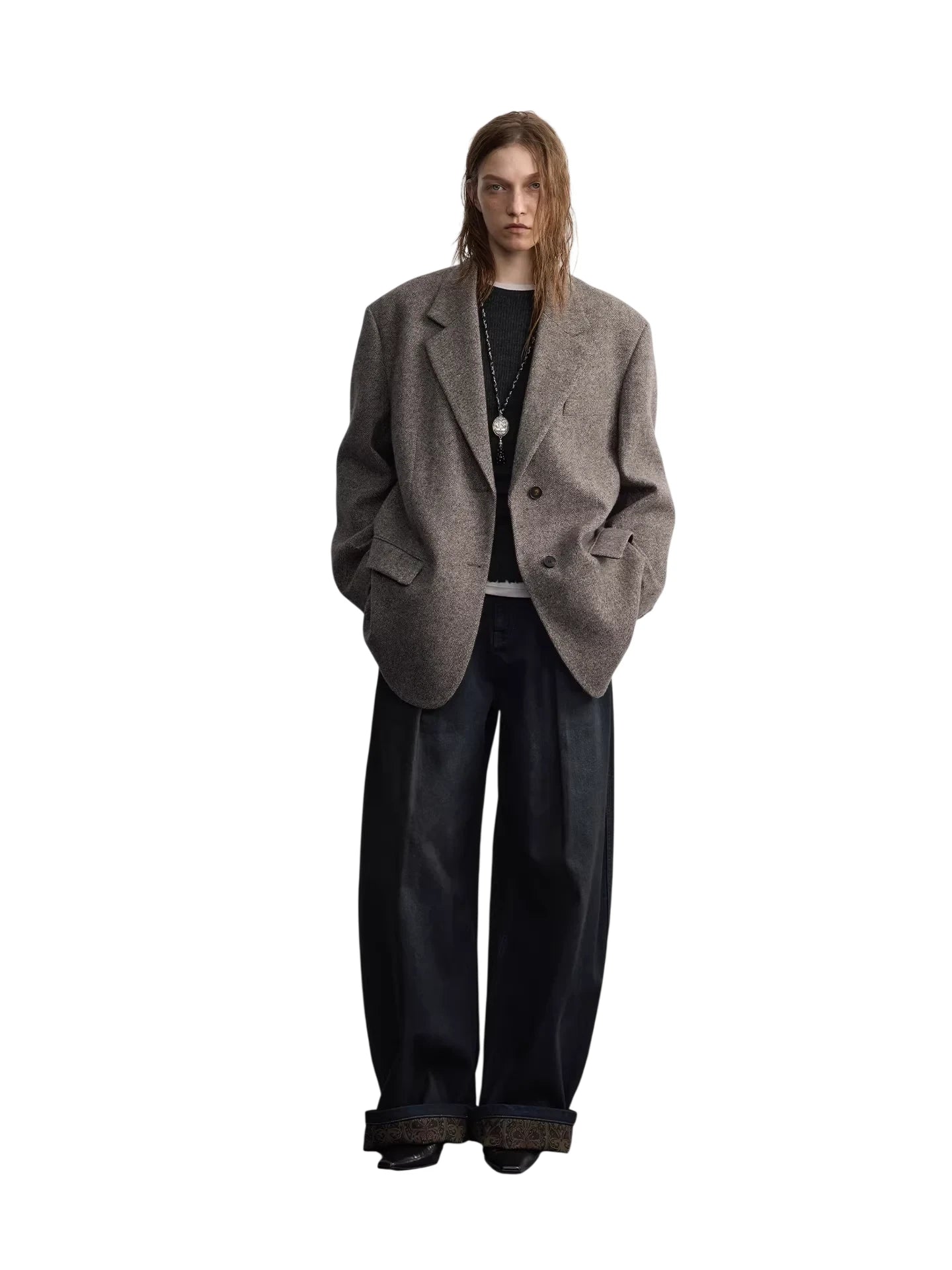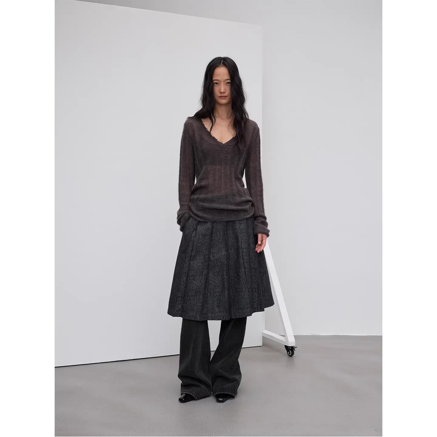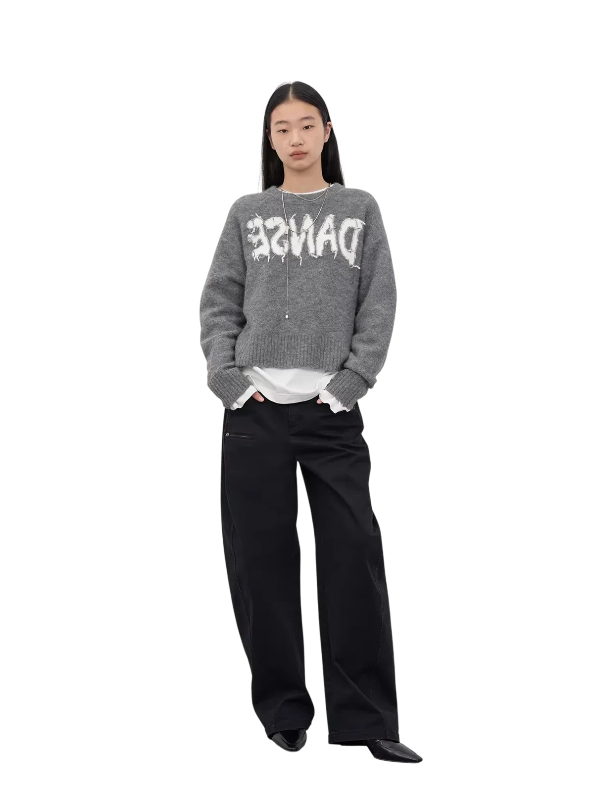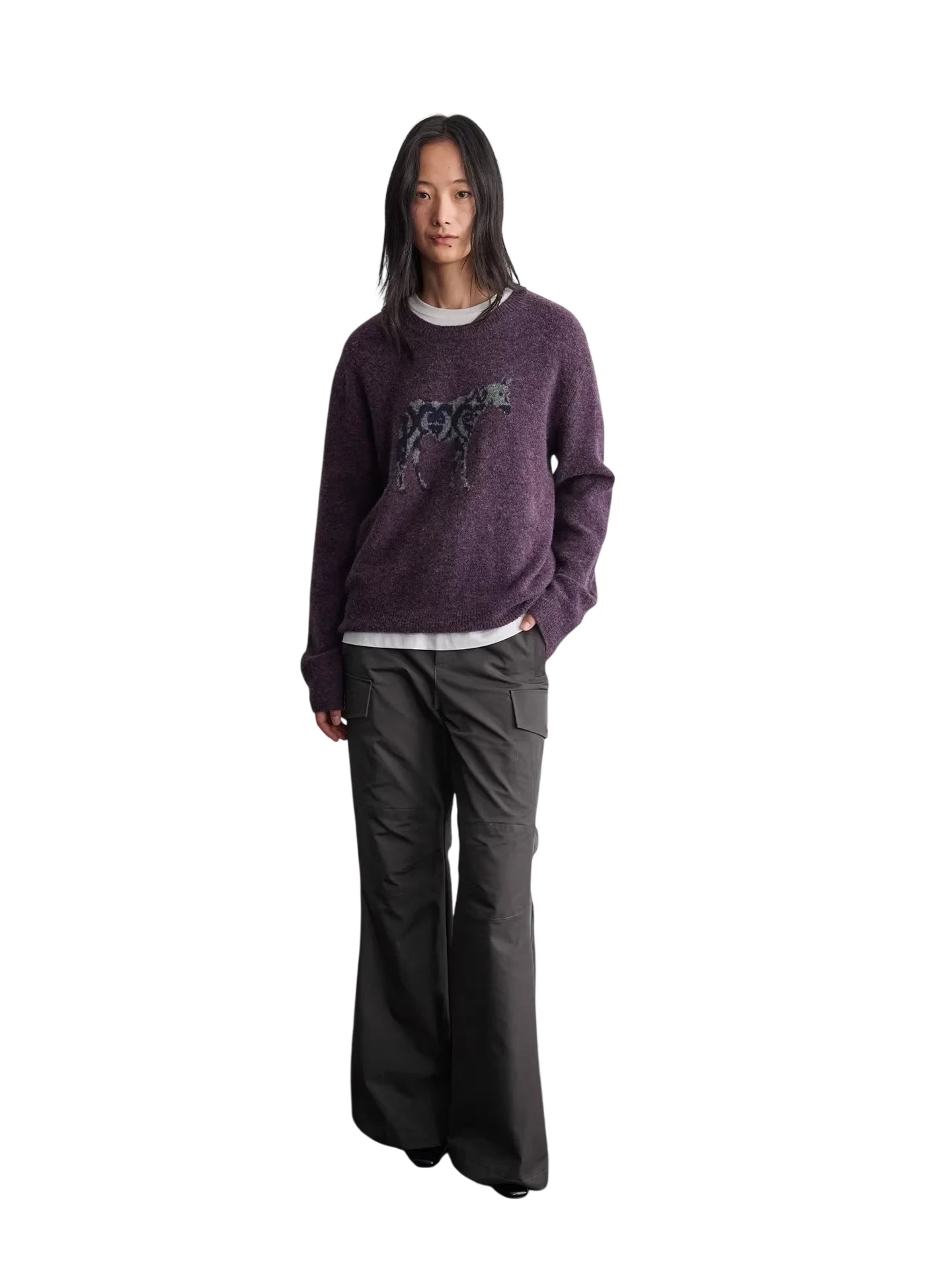 RandomPiece Wool Silk Blend Jacquard Oversized Sweater