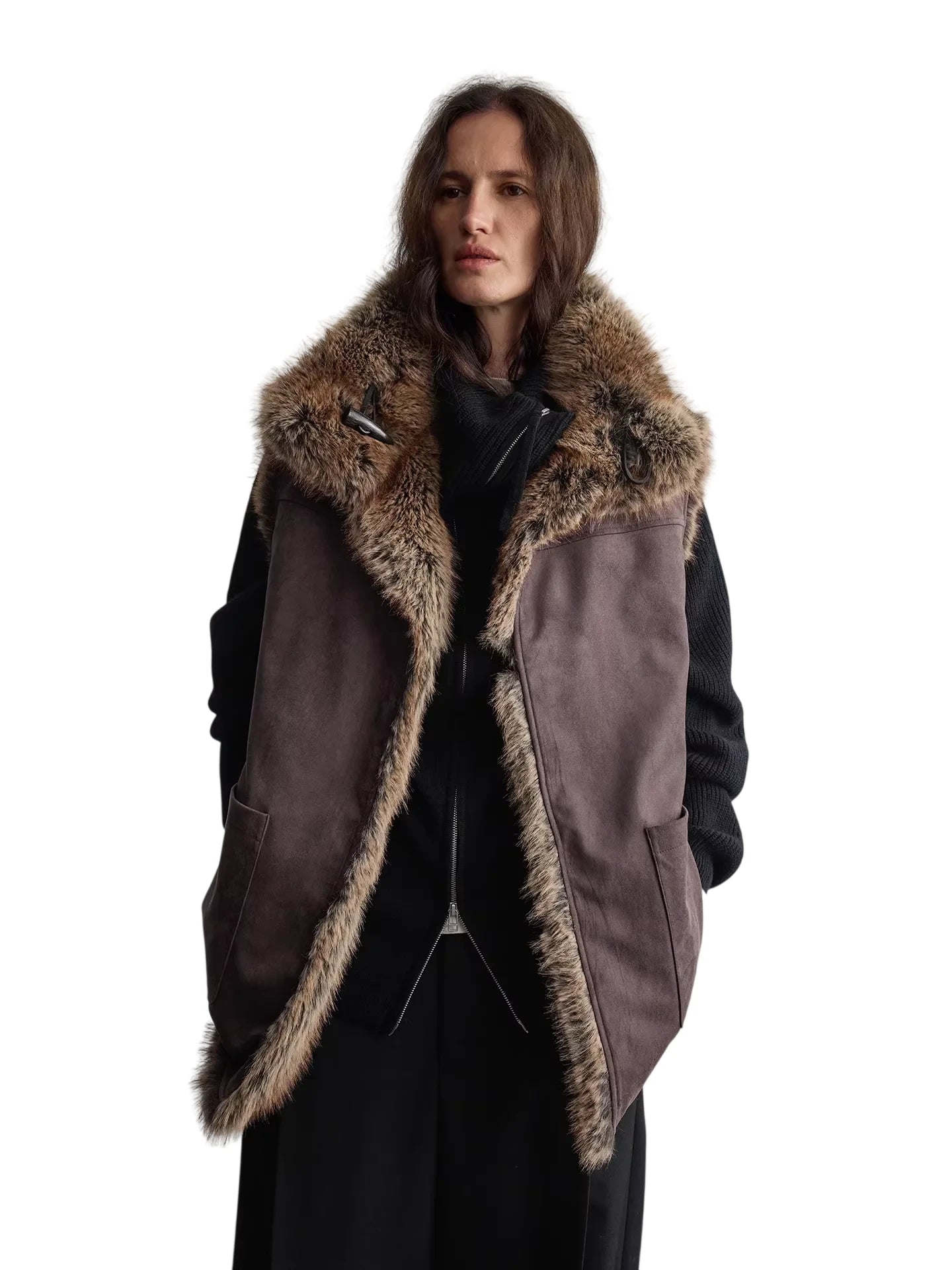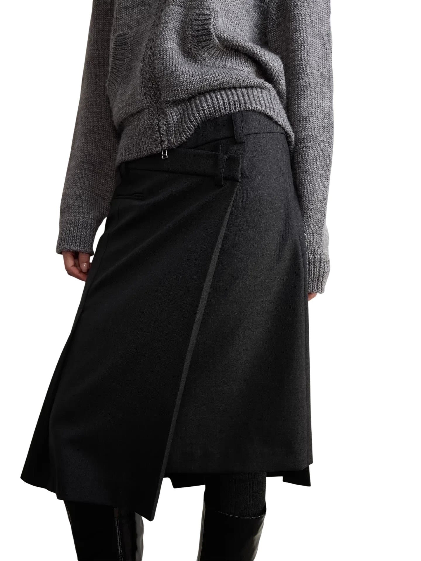 RandomPiece Asymmetrical Wool Blend Wrap Skirt