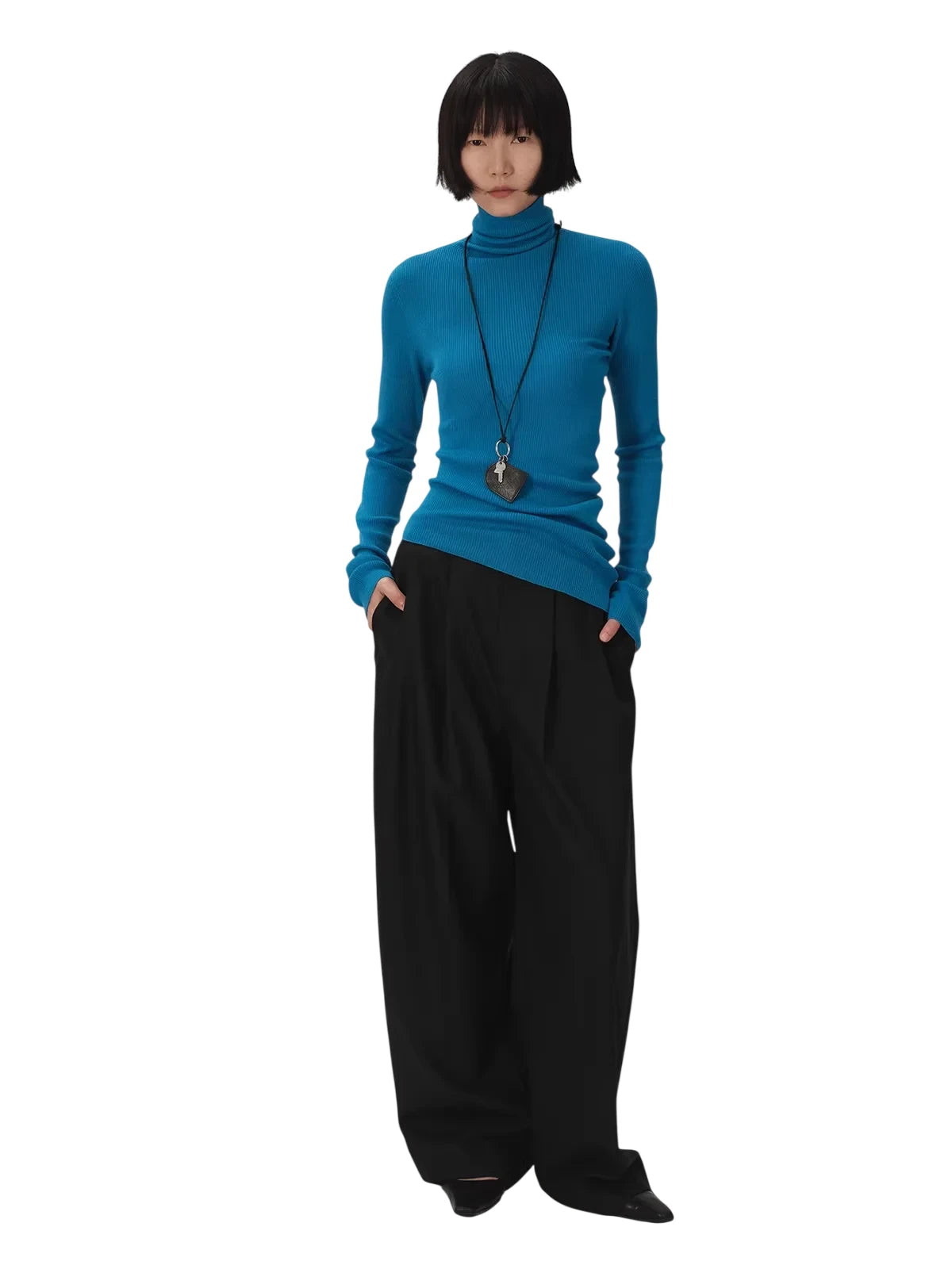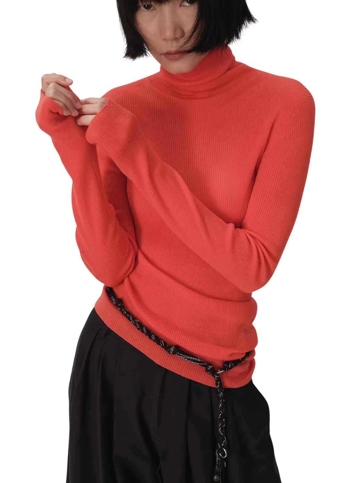 RandomPiece 18-Gauge Merino Wool Asymmetrical Hem Turtleneck Top