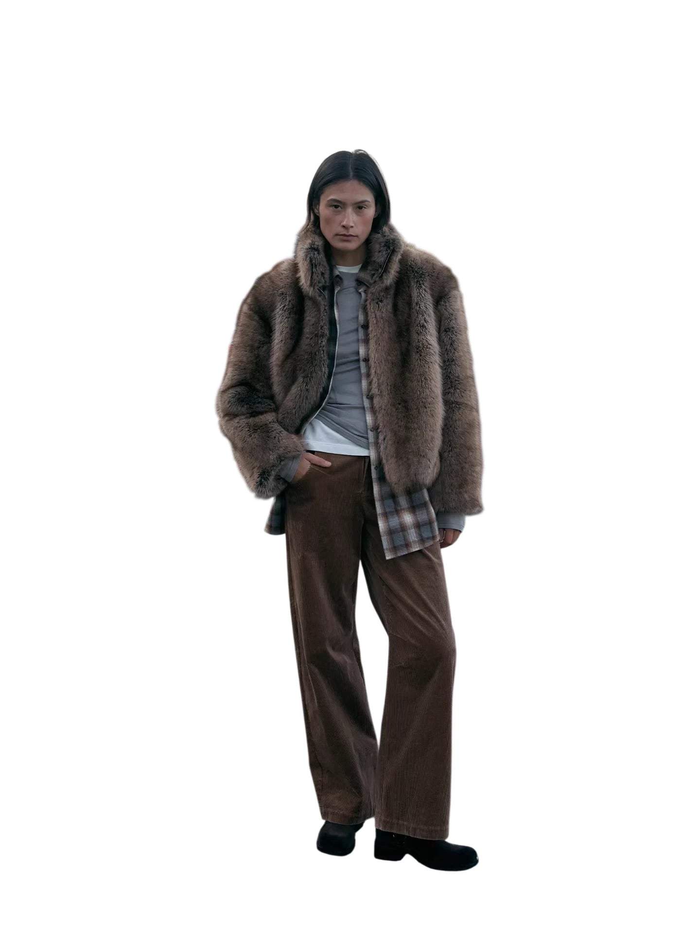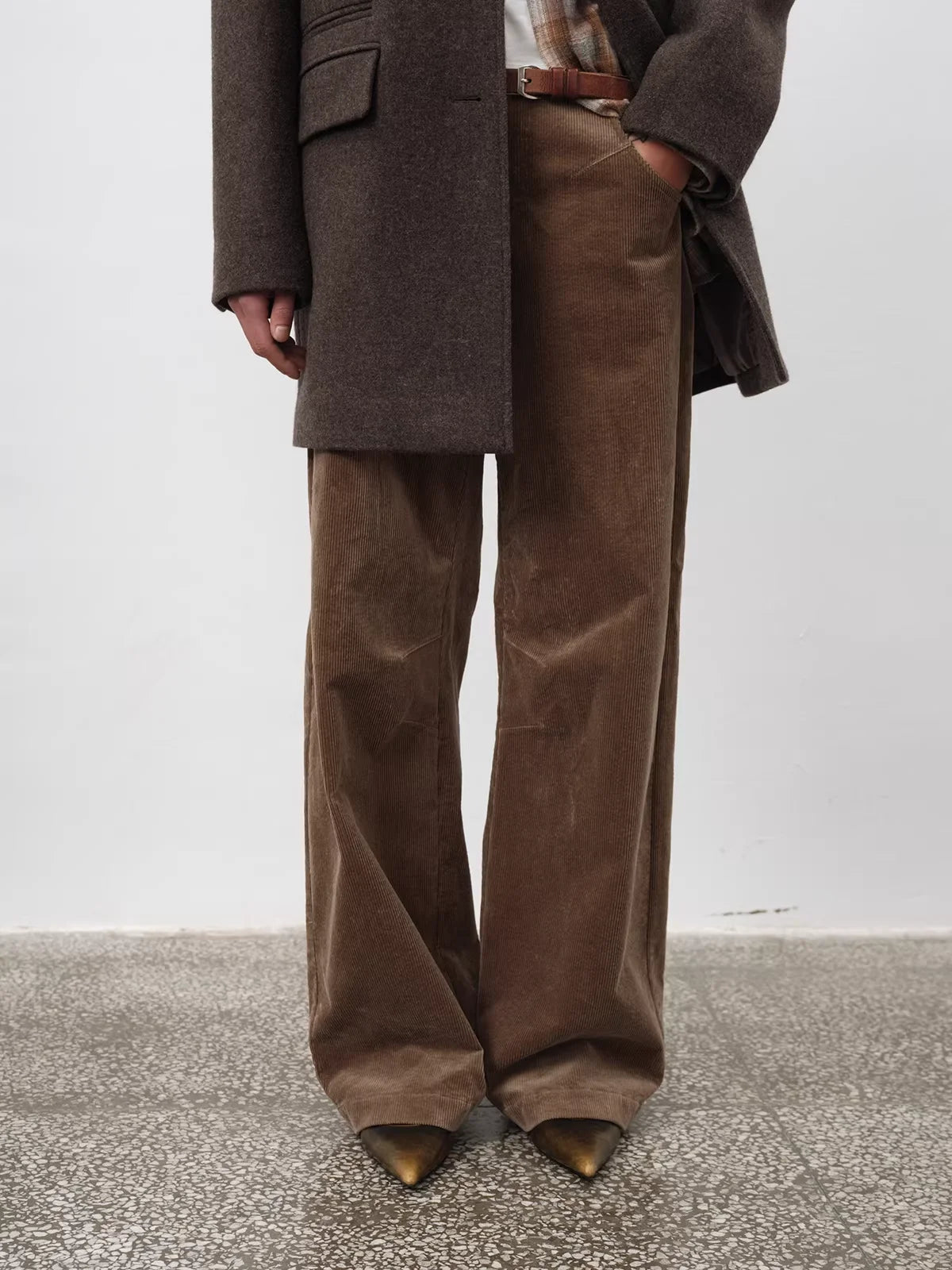 Elevate your winter wardrobe with these women's air-washed corduroy pants, featuring a rich vertical stripe texture and relaxed wide-leg silhouette. Crafted in a soft, stretch corduroy fabric, these high-waisted pants offer both style and comfort. The loose fit delivers a vintage-inspired casual look, perfect for pairing with oversized sweaters and boots during the colder months.
