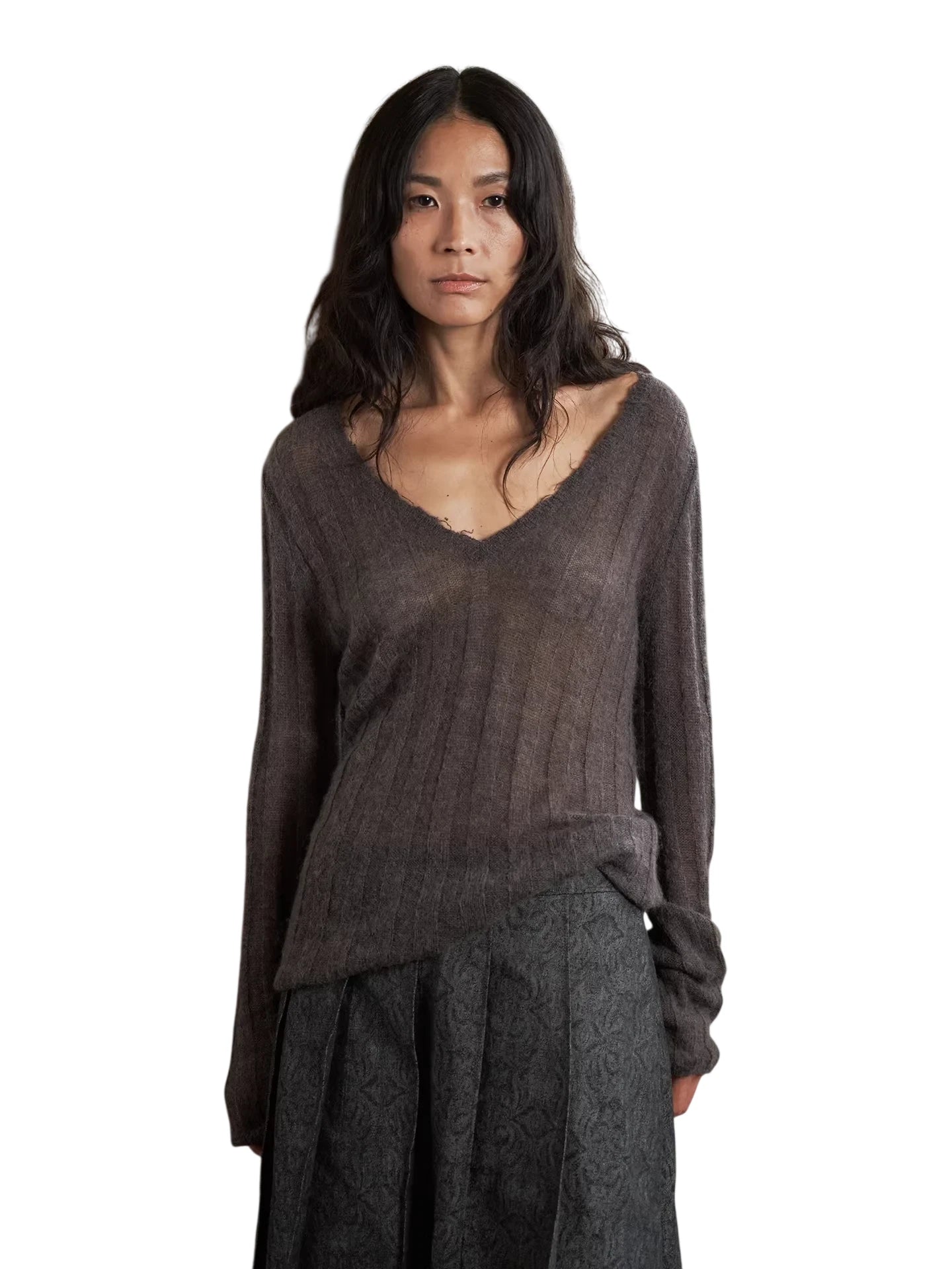 RandomPiece Alpaca Wool V-Neck Ribbed Sweater