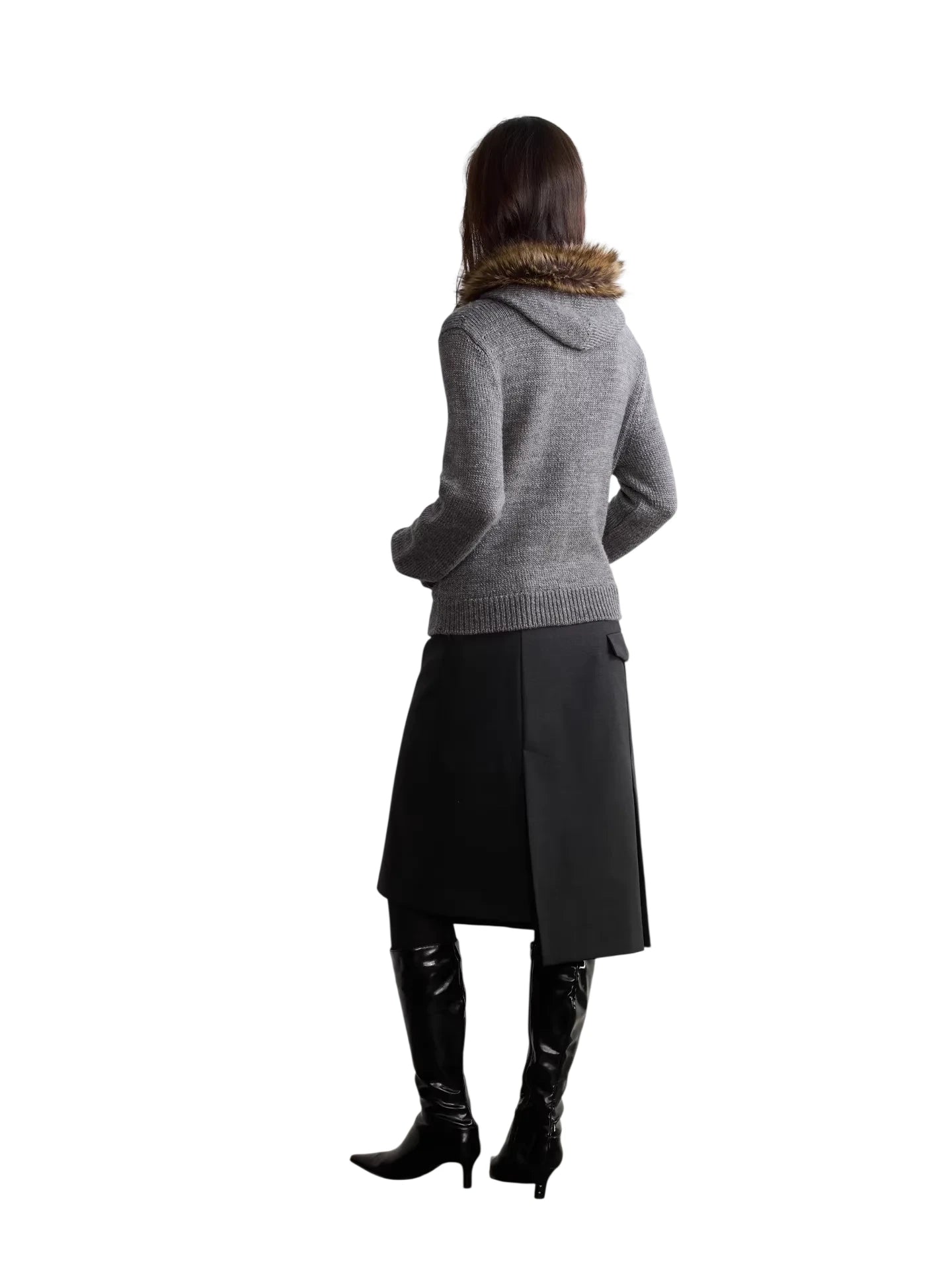 RandomPiece Asymmetrical Wool Blend Wrap Skirt