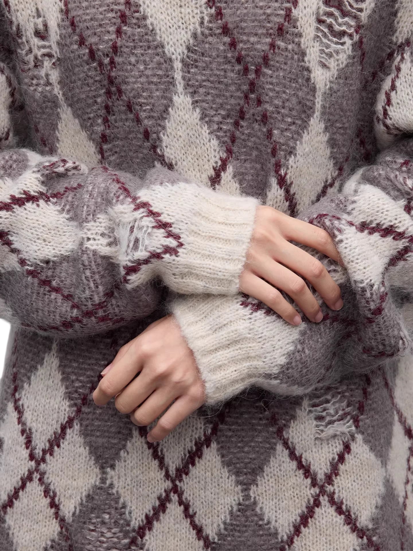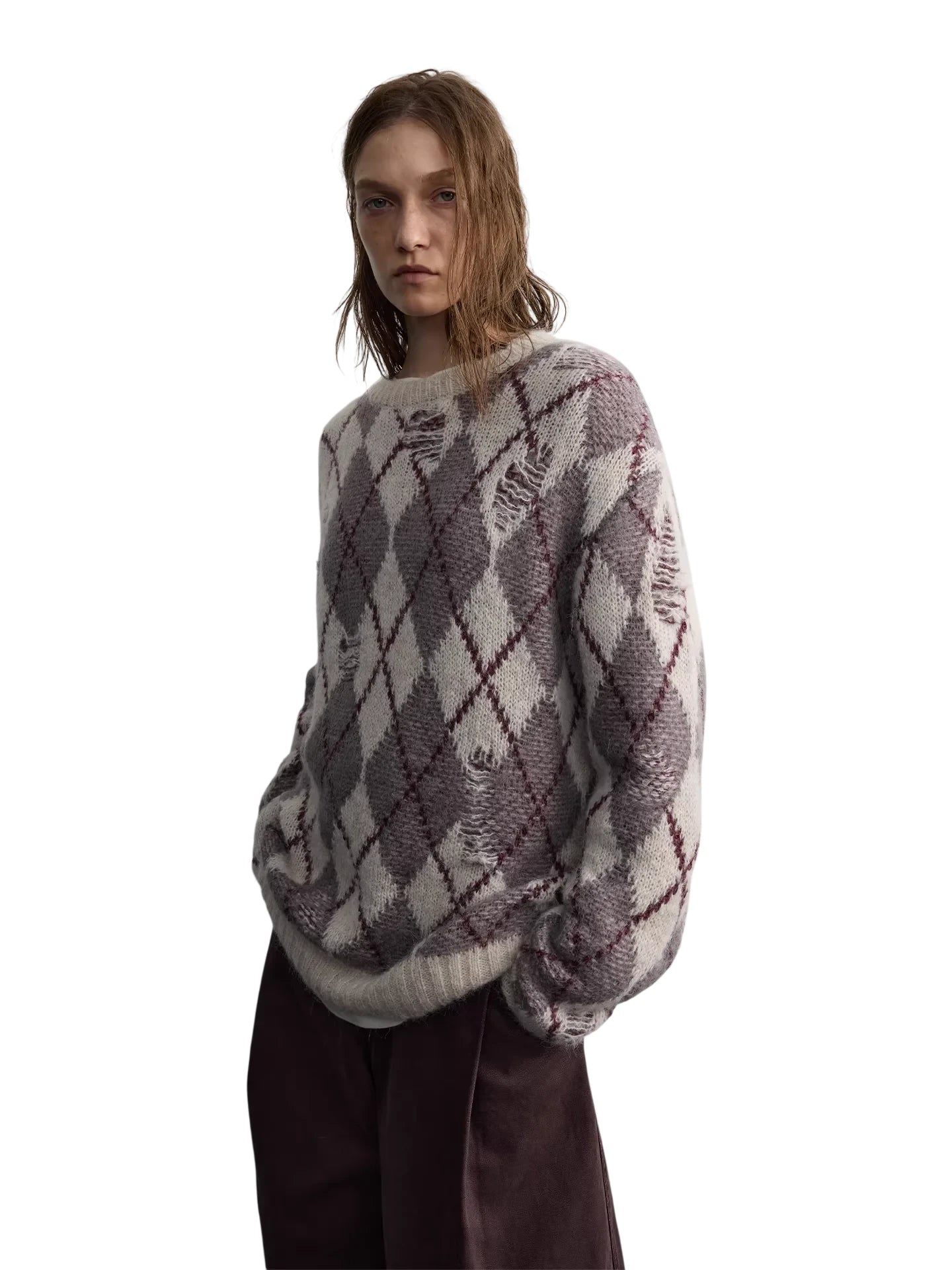 RandomPiece Distressed Argyle Alpaca Wool Blend Sweater