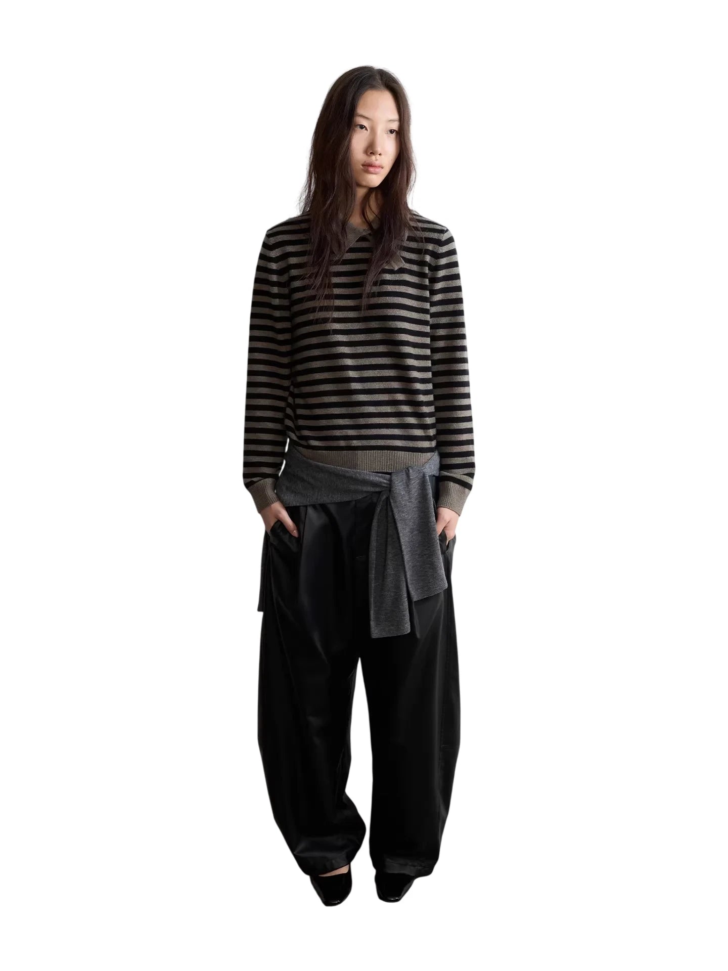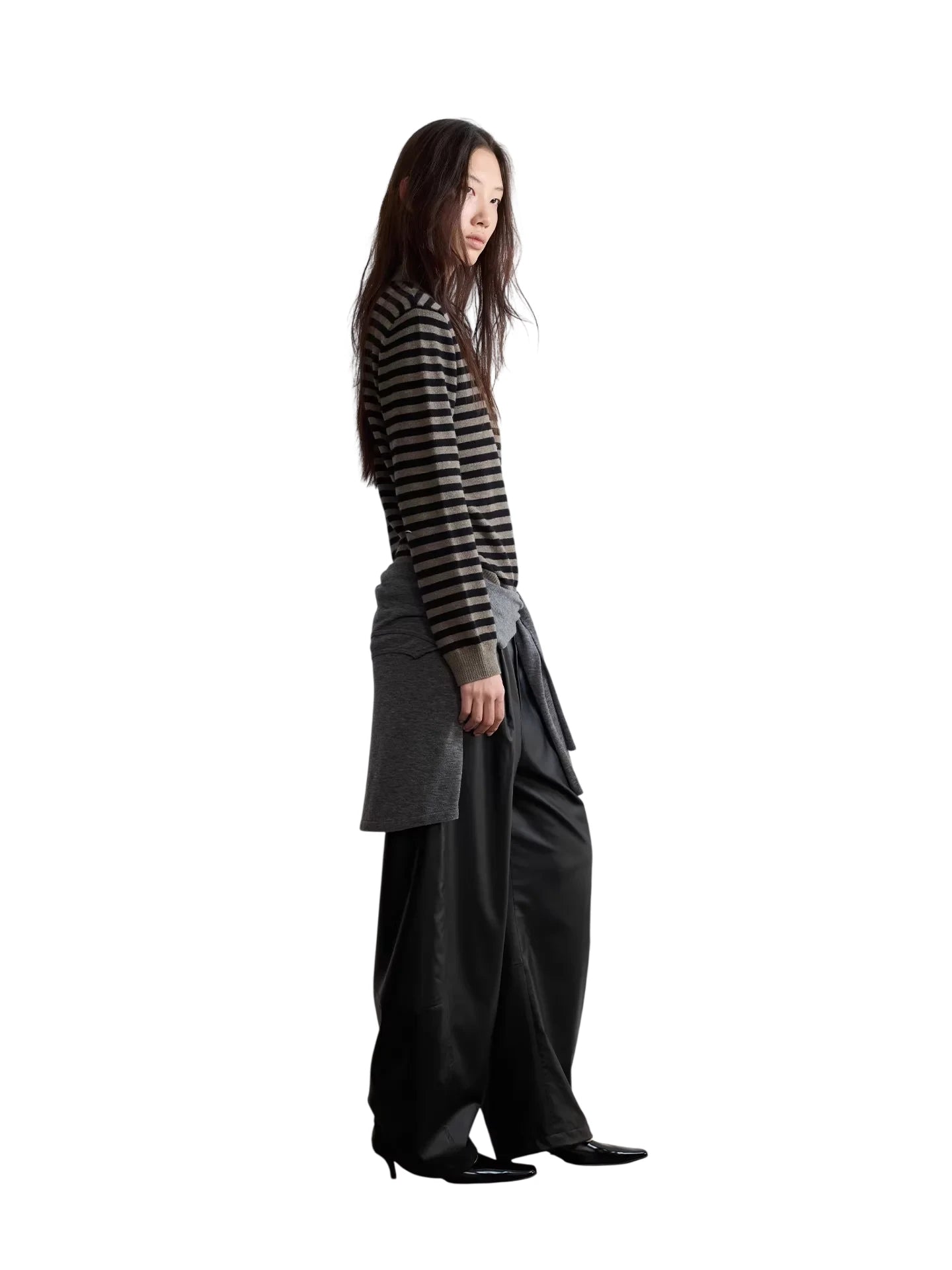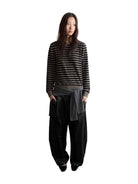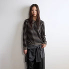 RandomPiece Extra Fine Wool Striped Sweater with Asymmetrical Placket