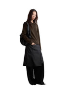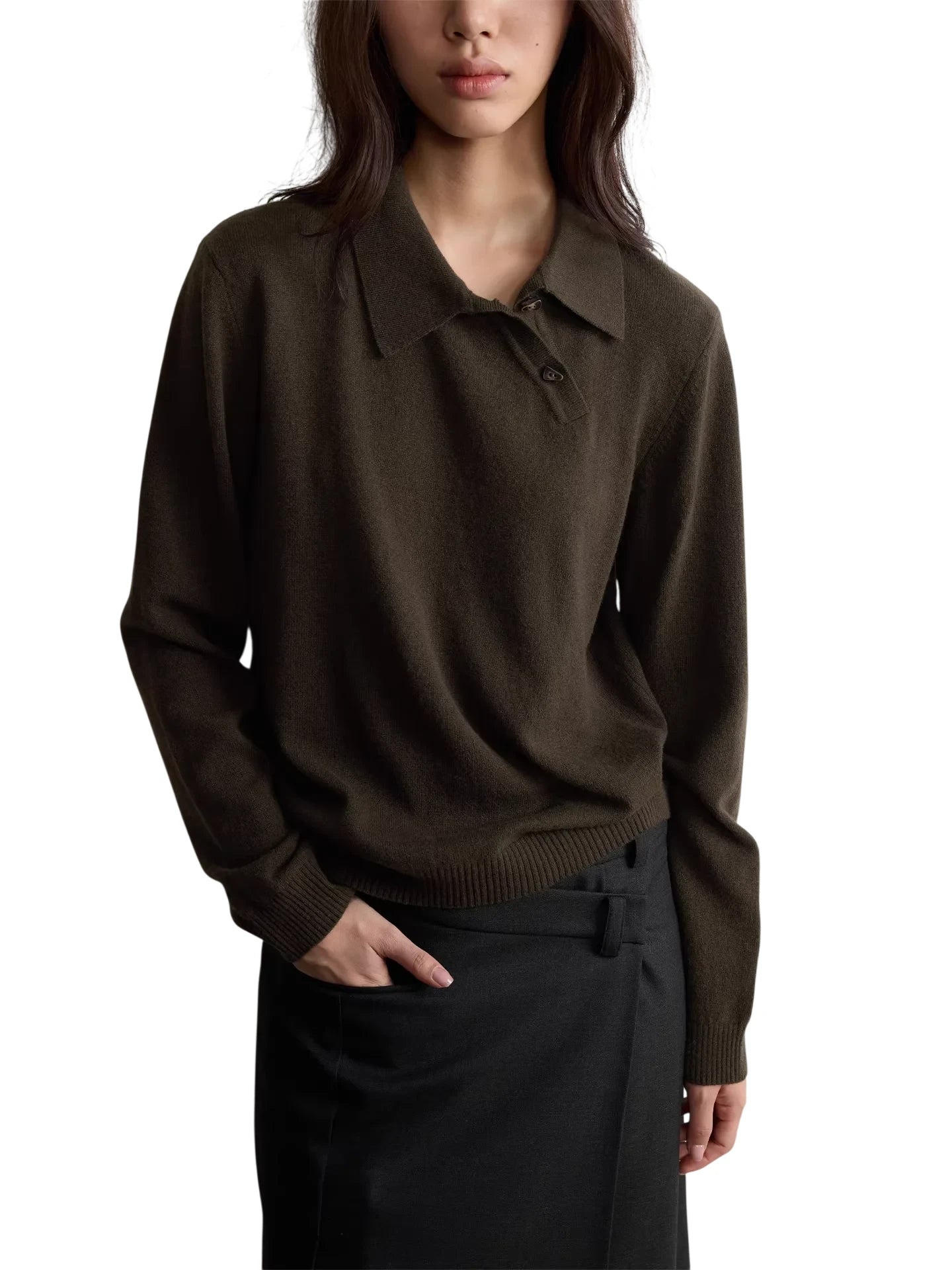 This women's sweater is crafted from 100% extra fine Australian wool, offering a luxuriously soft and lightweight feel. It features a unique asymmetrical placket detail and an eye-catching pattern of horizontal black and olive-green stripes. The ribbed cuffs and hem add definition and texture, while the layered shirt collar design introduces a refined, sophisticated touch. Perfect for transitional weather, this sweater blends modern style with timeless comfort.