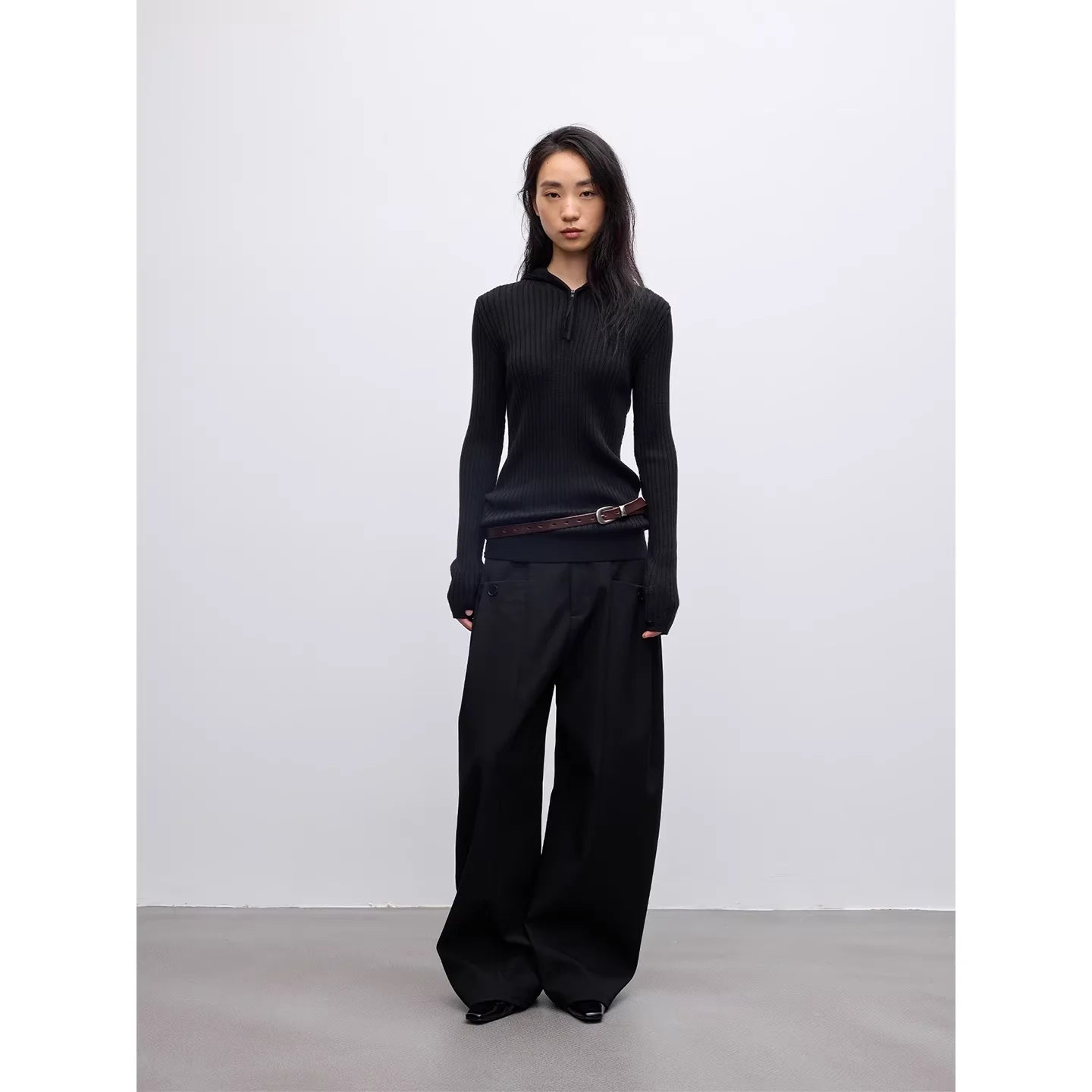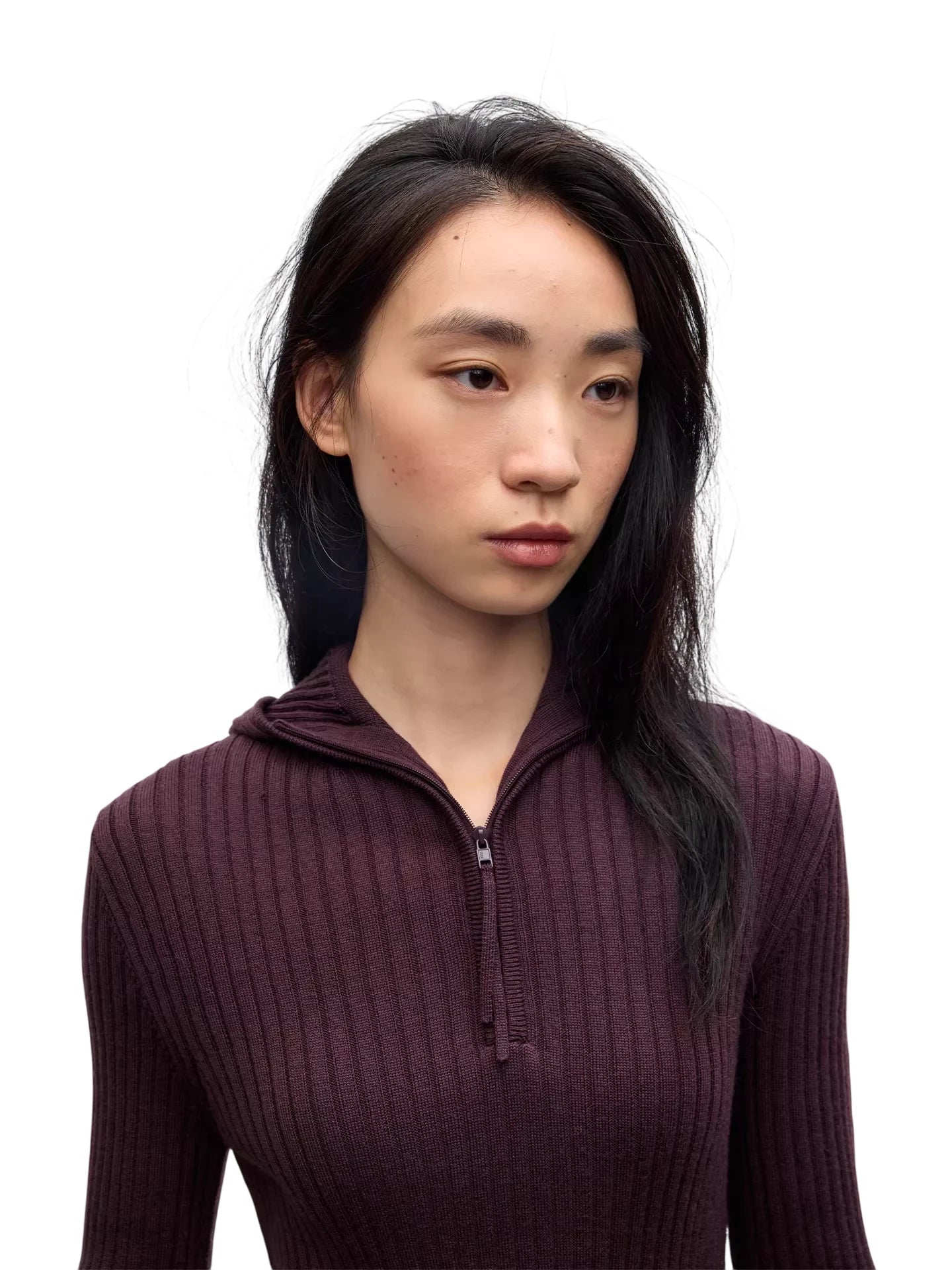 RandomPiece Merino Wool Blend Ribbed Hooded Zip Sweater