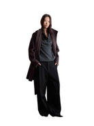 These men's high-waisted trousers are crafted from 100% Australian Merino wool, offering a soft yet structured silhouette. Designed with deep front pleats and a wide-leg fit, they provide both comfort and sophistication. The subtle sheen of the fabric adds a refined finish, making them ideal for formal or elevated casual wear.
