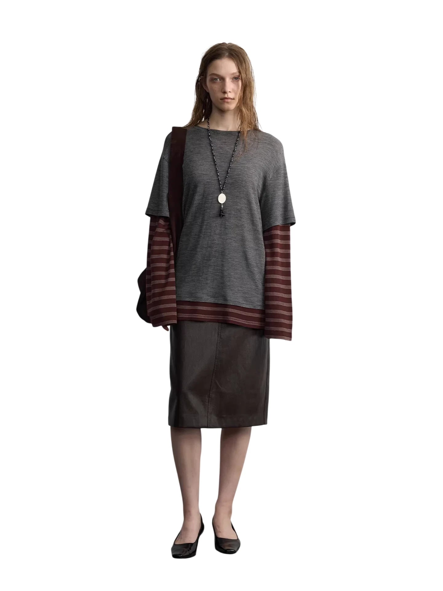 RandomPiece Merino Wool Striped Patchwork Layered Long Sleeve Top