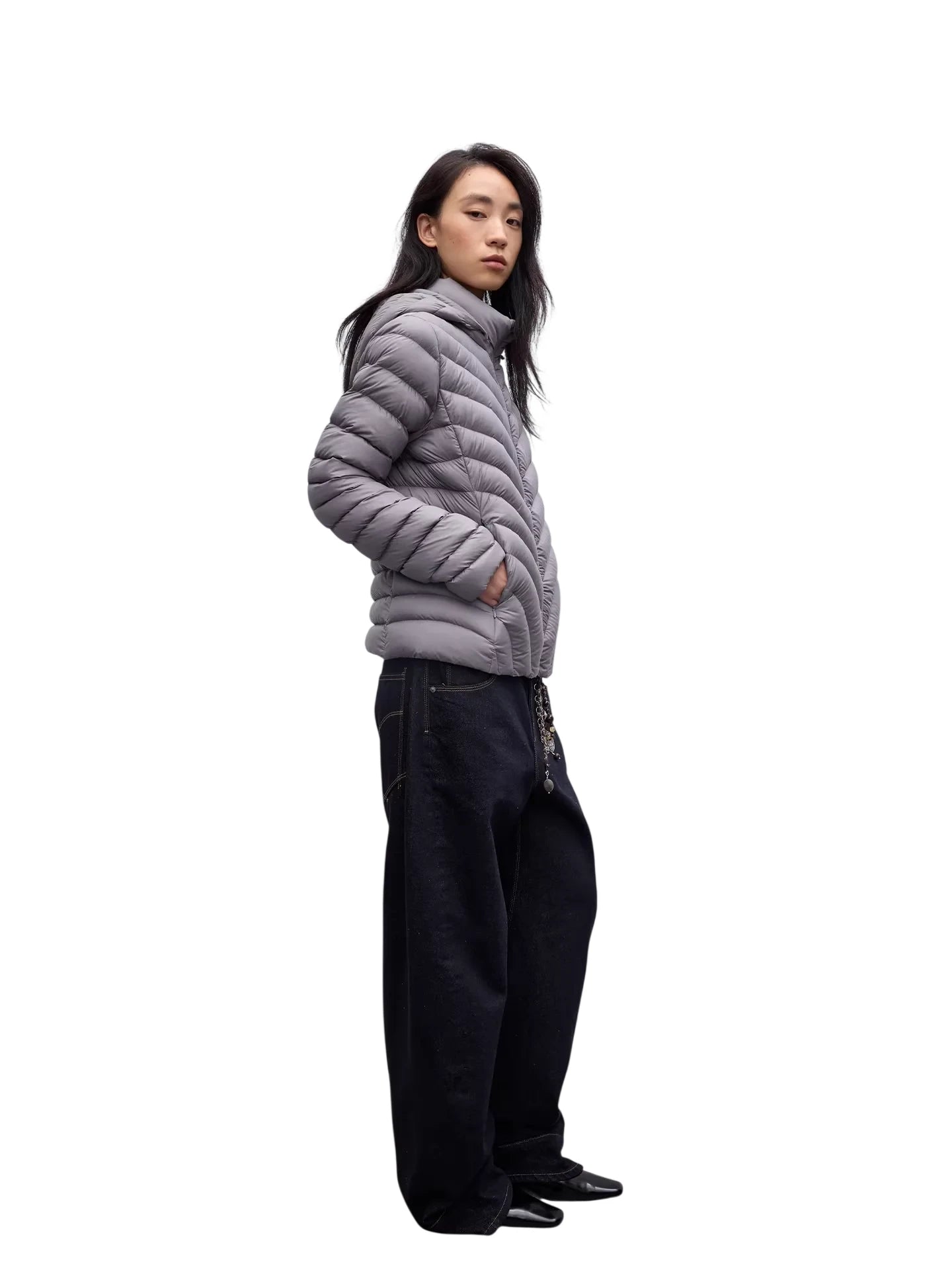 The jacket includes a cozy hood, high collar, and ribbed cuffs to help seal in warmth, while the zippered front makes it easy to layer. Side pockets provide functionality without compromising on style. Available in versatile shades including black, grey, burgundy, and off-white.