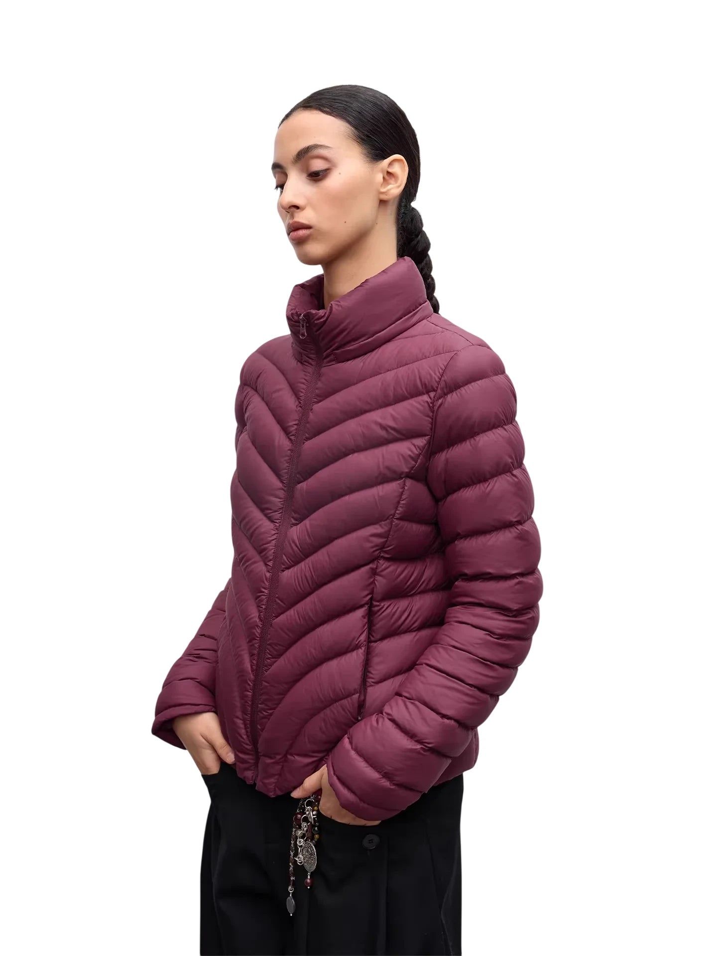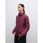 Stay warm and stylish with this women's lightweight puffer jacket, filled with 90% white goose down for superior insulation. Designed with a slim, flattering fit, the jacket features chevron-style quilted stitching for a modern look.