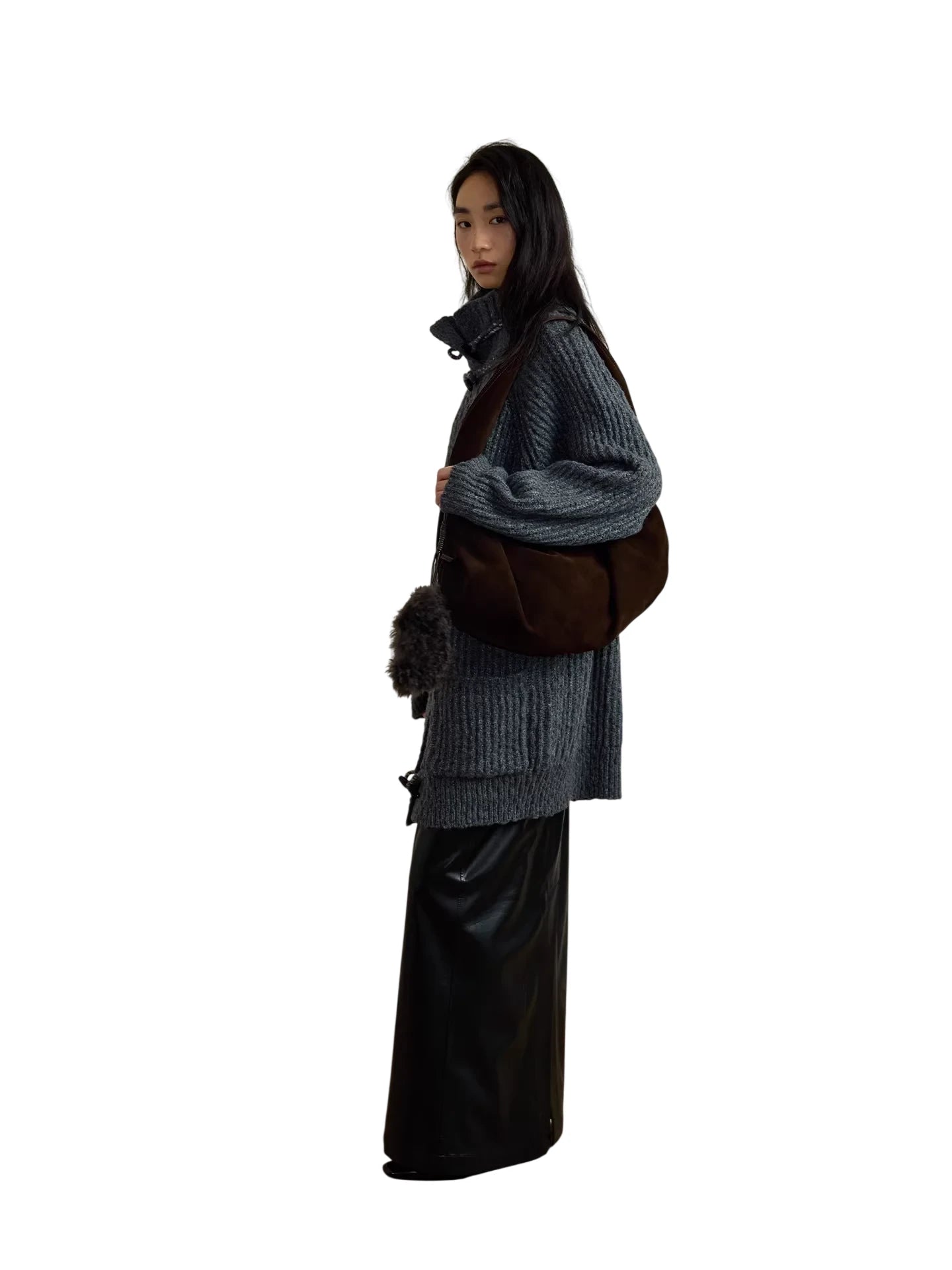 Stay warm and stylish with this women's mid-length coat crafted from a cozy wool blend knit. Featuring a stand collar and toggle-button front, this ribbed design offers both comfort and sophistication, perfect for cold-weather layering. The dark gray hue and textured finish create a timeless winter look suitable for any casual outing.