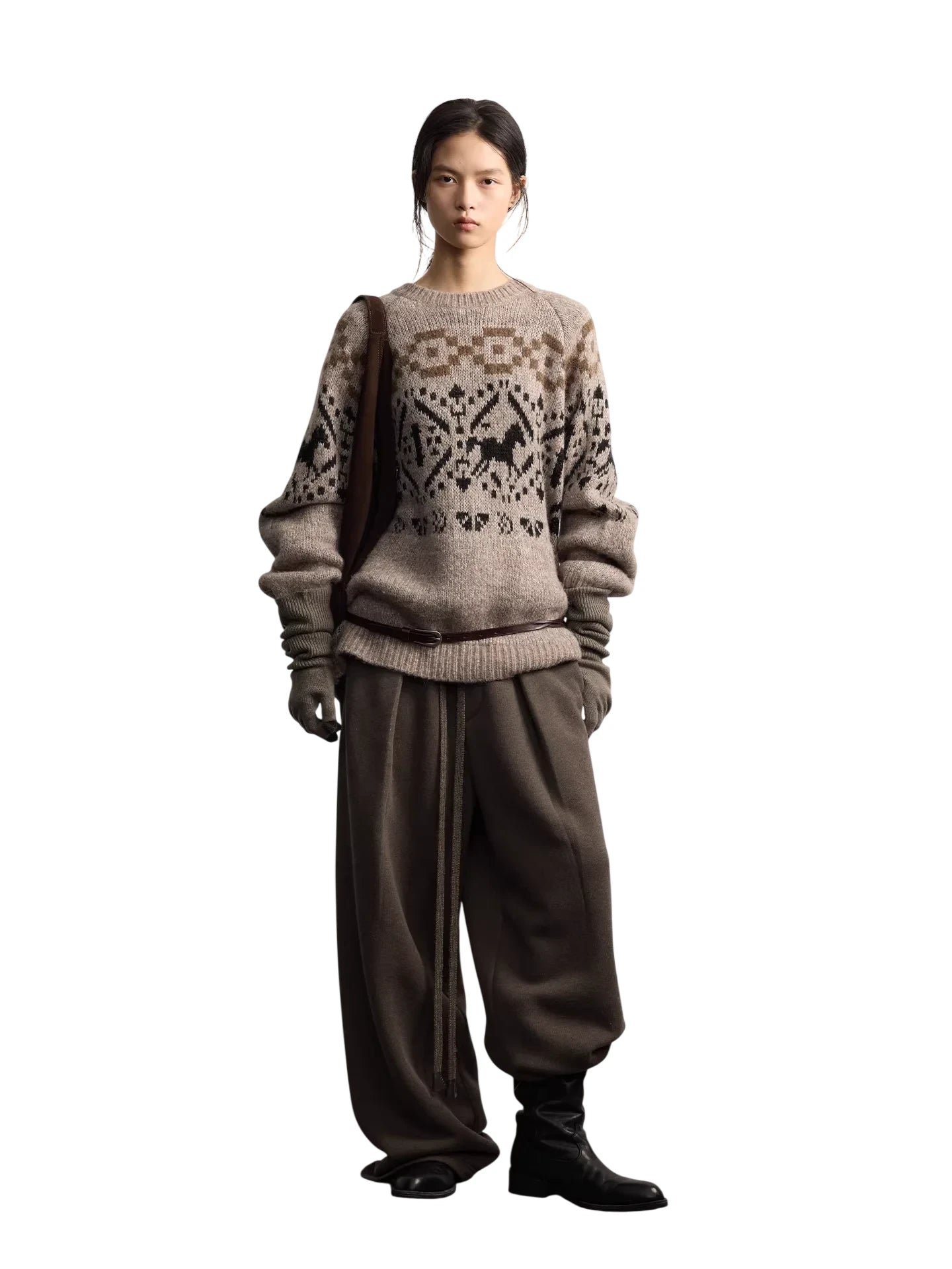 RandomPiece Women's Wool-Blend Elastic Waist Pleated Sweatpants