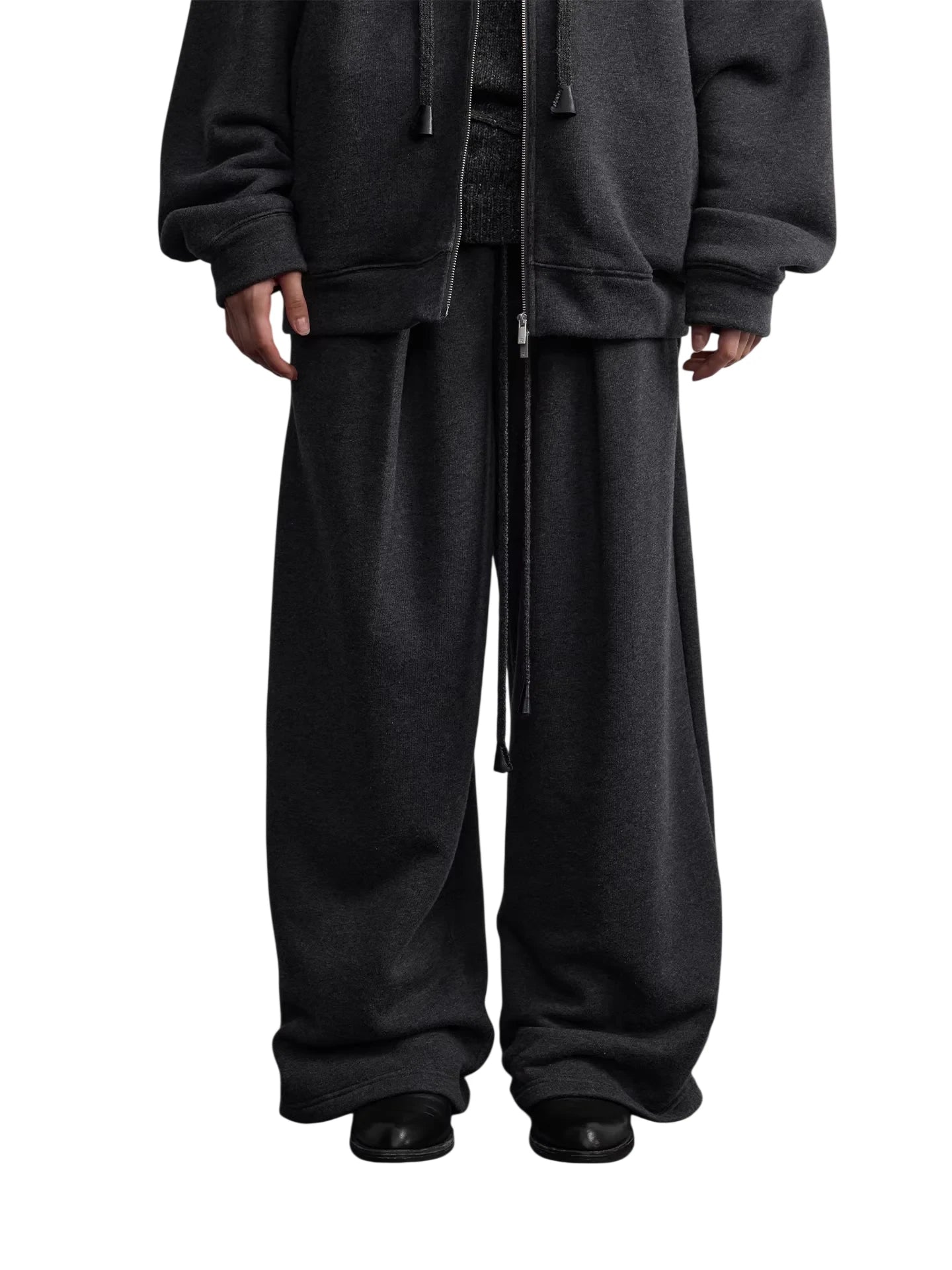 Stay warm and stylish during the colder months with these women's wool-blend sweatpants. Designed with a cozy terry lining, they feature a high-rise elastic waistband and adjustable drawstring for maximum comfort. The pleated wide-leg cut offers a relaxed, laid-back look, perfect for casual winter outfits. Soft and drapey, these pants pair effortlessly with your favorite knits and winter layers.