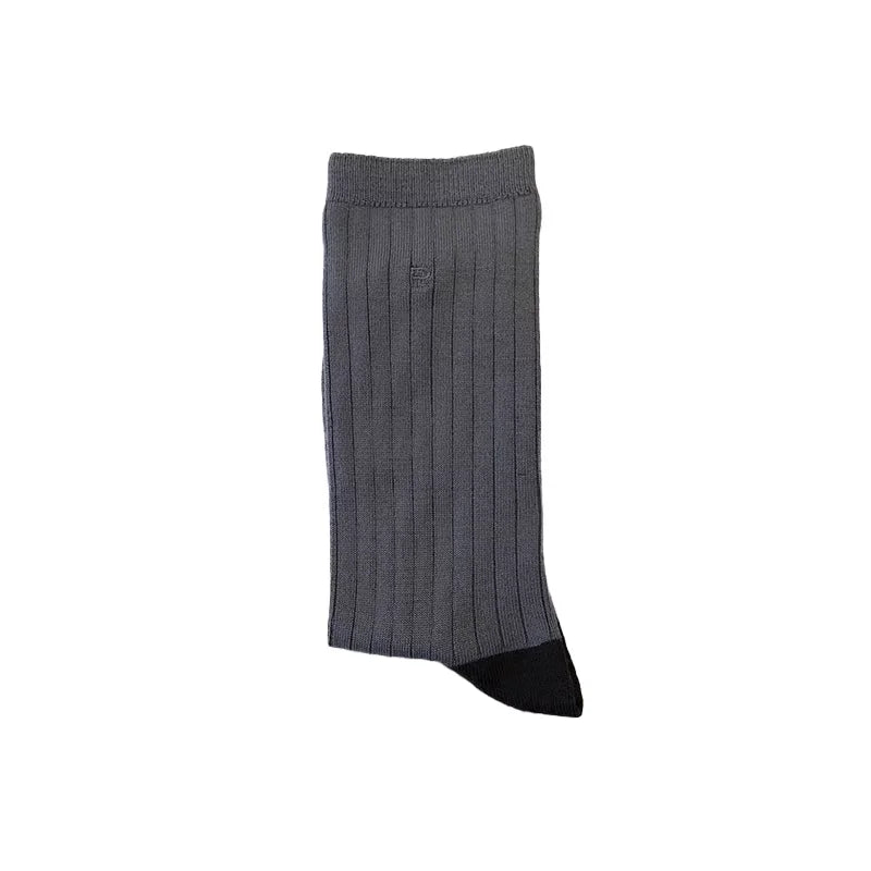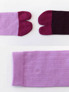 Stay cozy and stylish with these unisex mid-calf wool blend socks featuring a partial colorblock design. Designed with a ribbed texture for added elasticity and a snug, comfortable fit, each sock showcases a unique color combination — one in grey with black accents and the other in maroon with magenta accents. The split-toe design adds a modern touch while enhancing breathability and comfort. Perfect for everyday wear during cooler seasons.