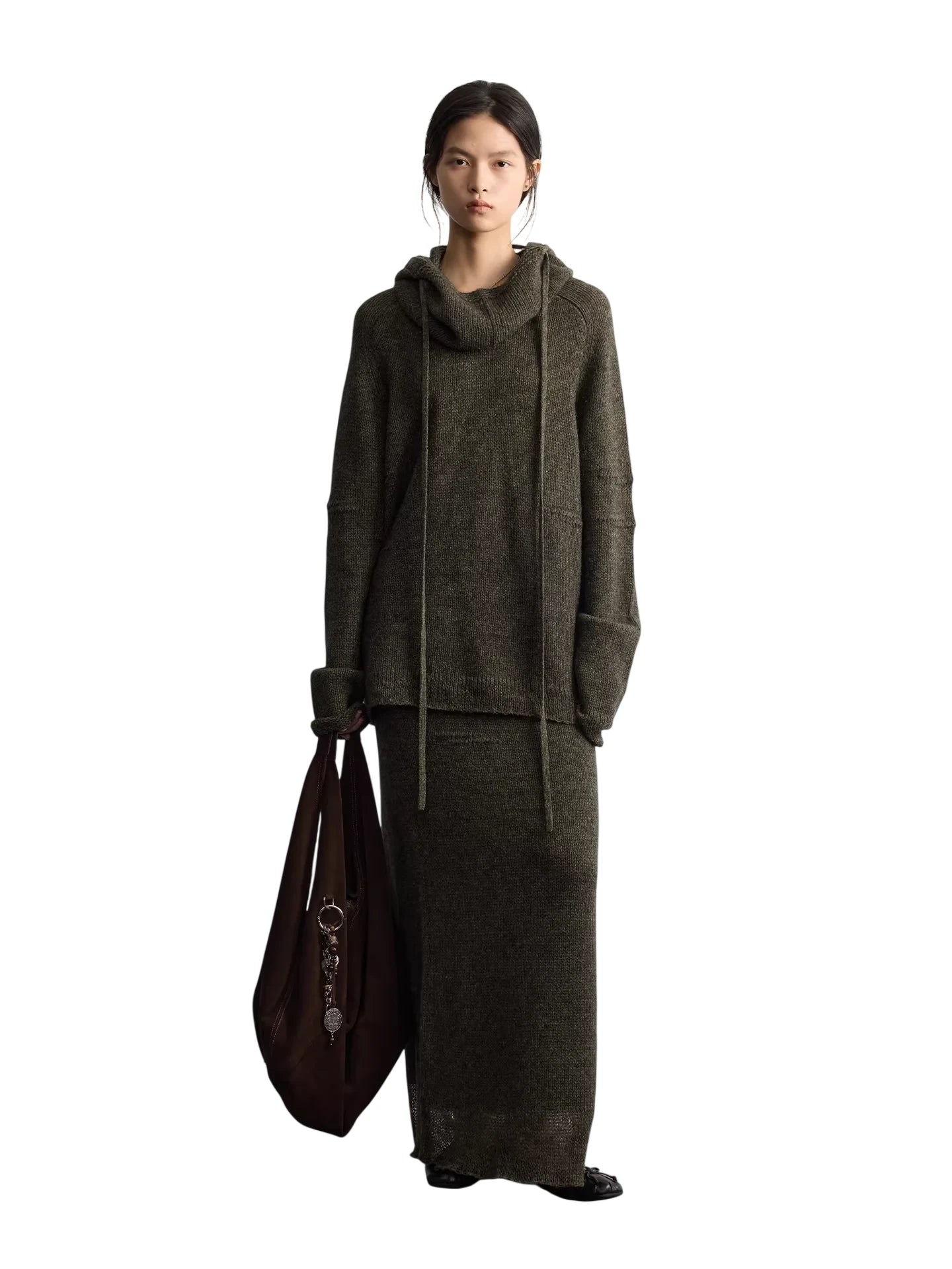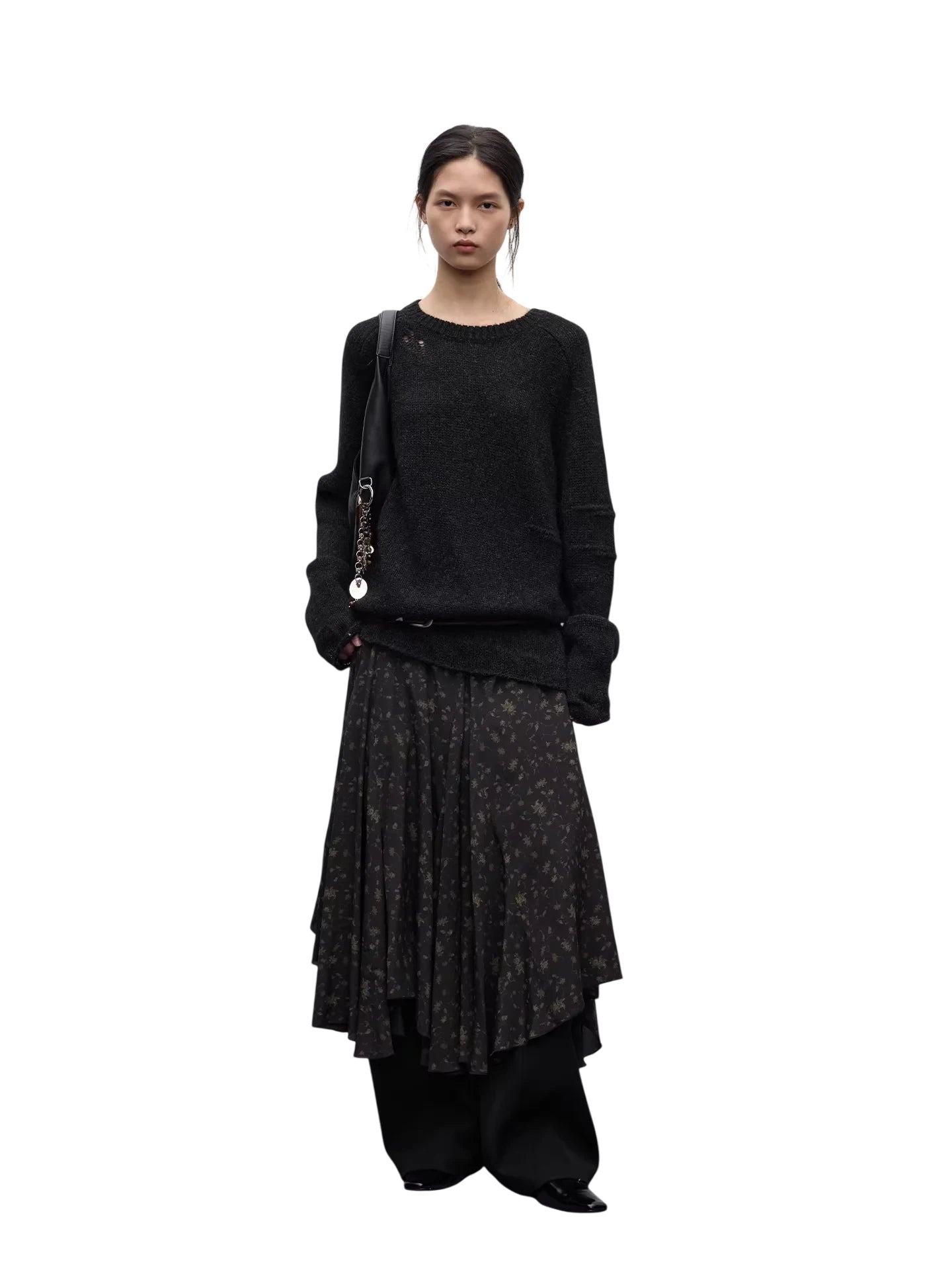 RandomPiece Yak and Alpaca Wool Knit Sweater with Sheer Hem and Cuffs