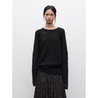 This women's knit sweater features a luxurious blend of yak and alpaca wool, offering exceptional softness and warmth. Designed with a relaxed fit, it showcases a slightly sheer texture along the hem and cuffs for added visual interest. The round neckline and long sleeves contribute to its timeless, casual style, while subtle distressed detailing adds a modern edge. Perfect for layering or wearing on its own, this sweater complements both relaxed and refined looks.