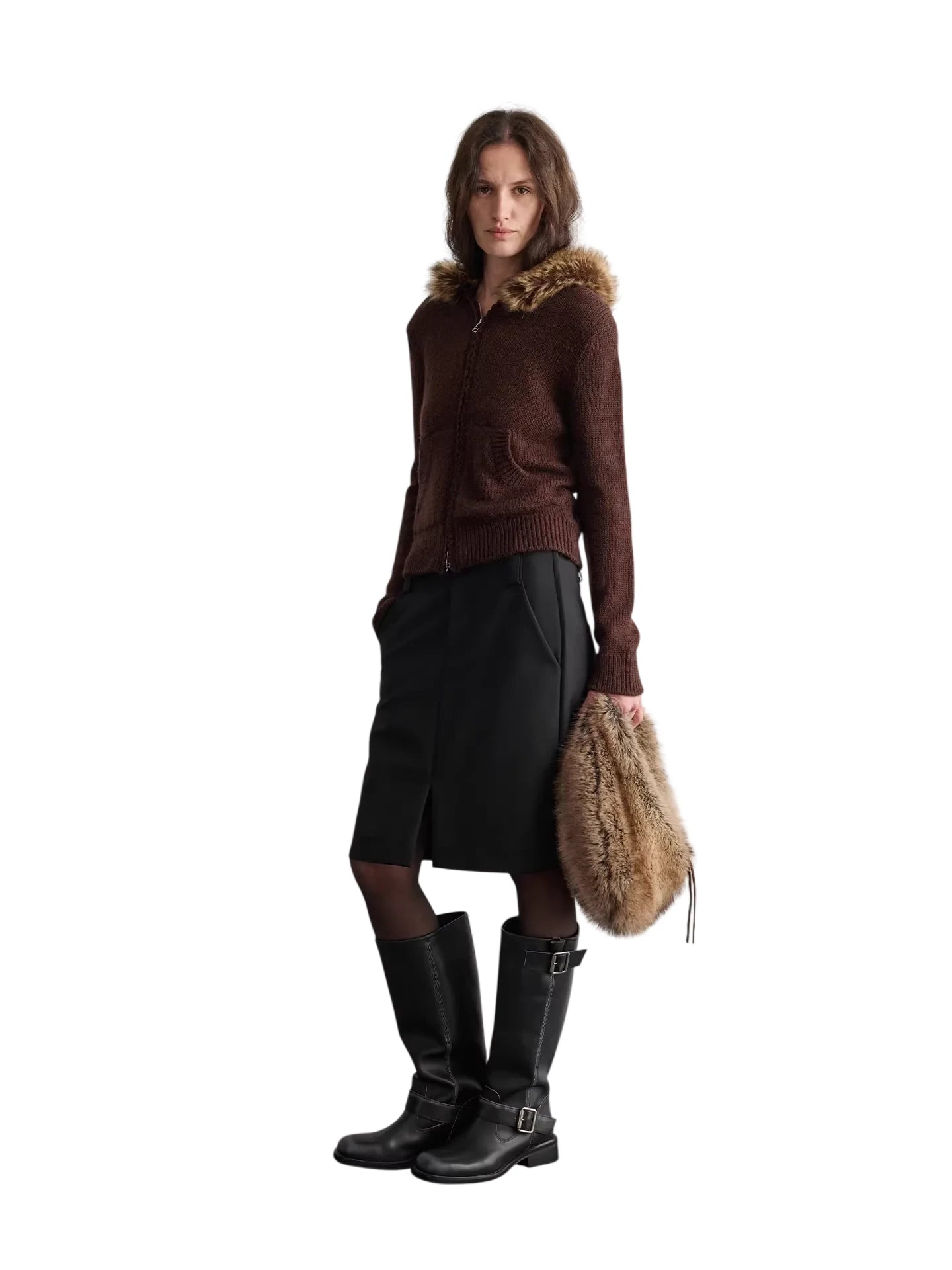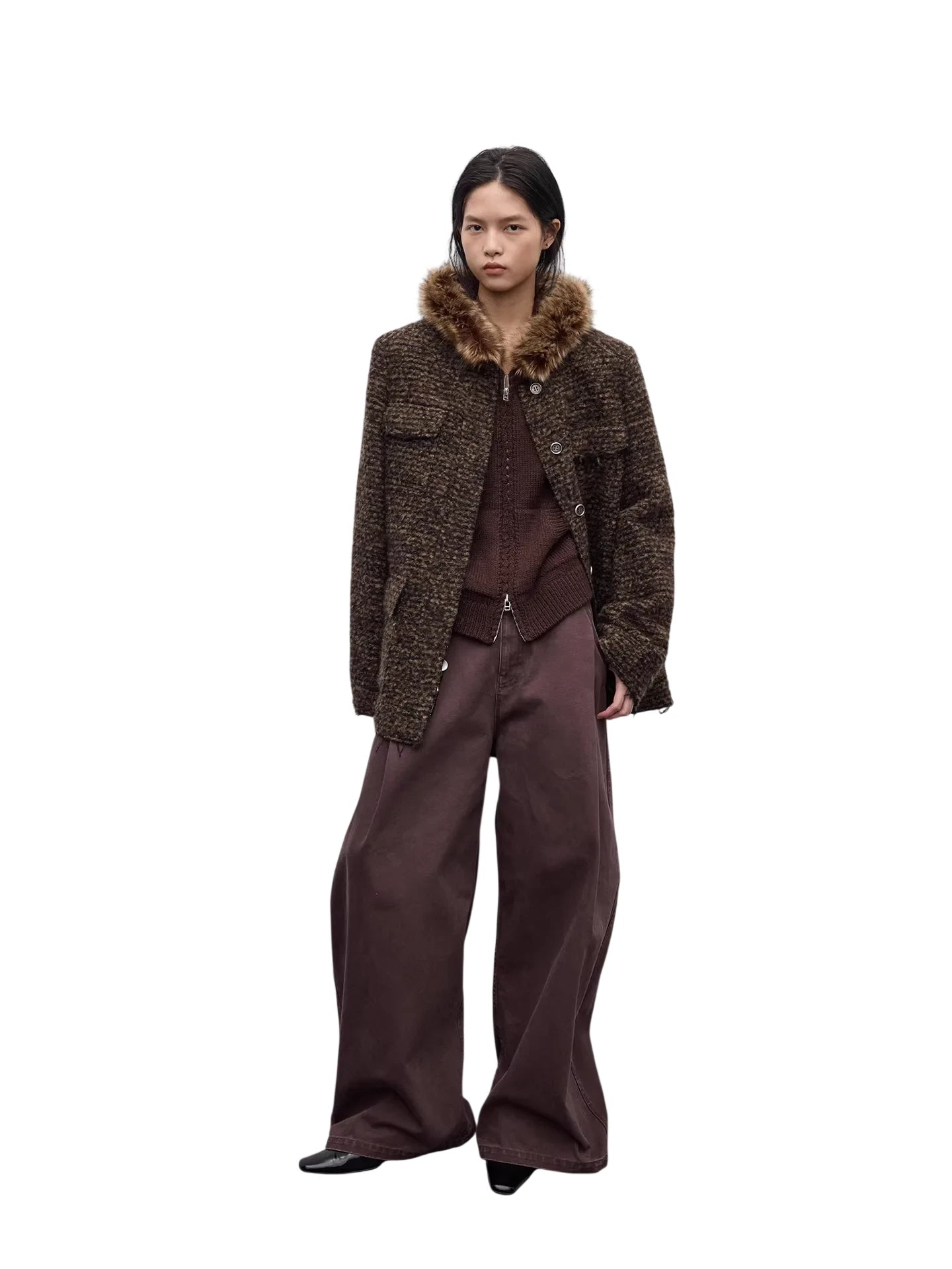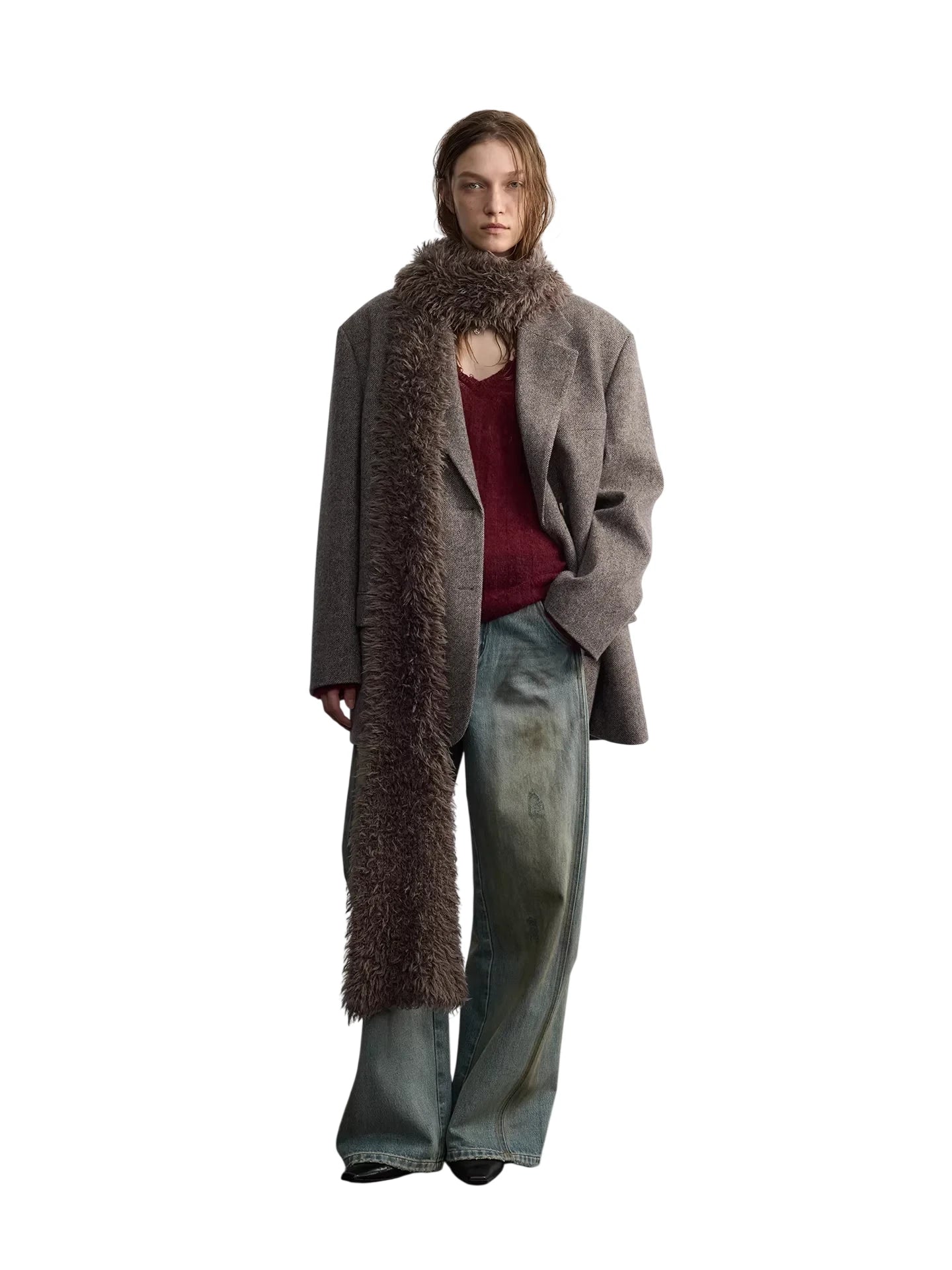 RandomPiece Women's Textured Wool Blend Blazer with Faux Fur Collar
