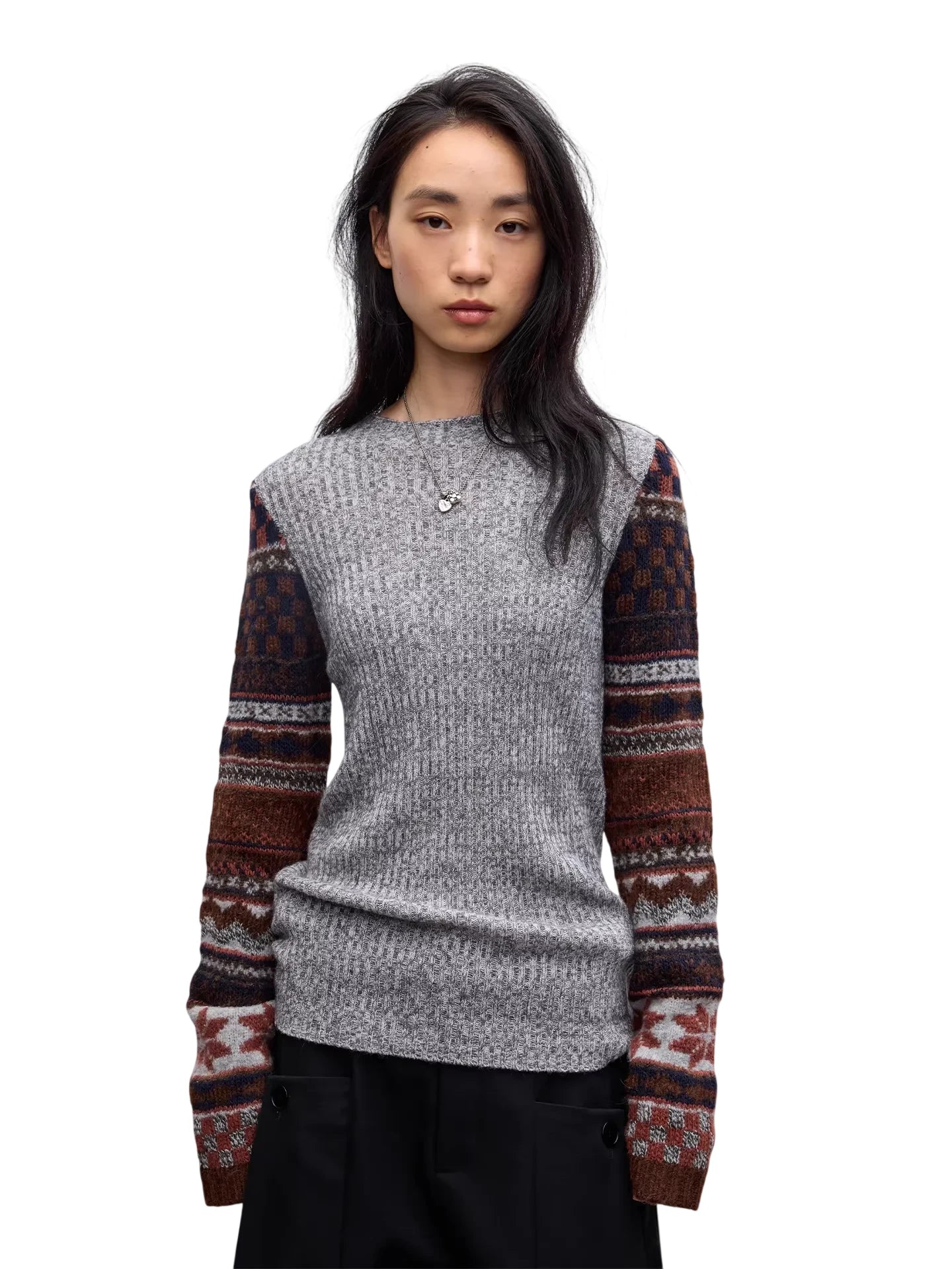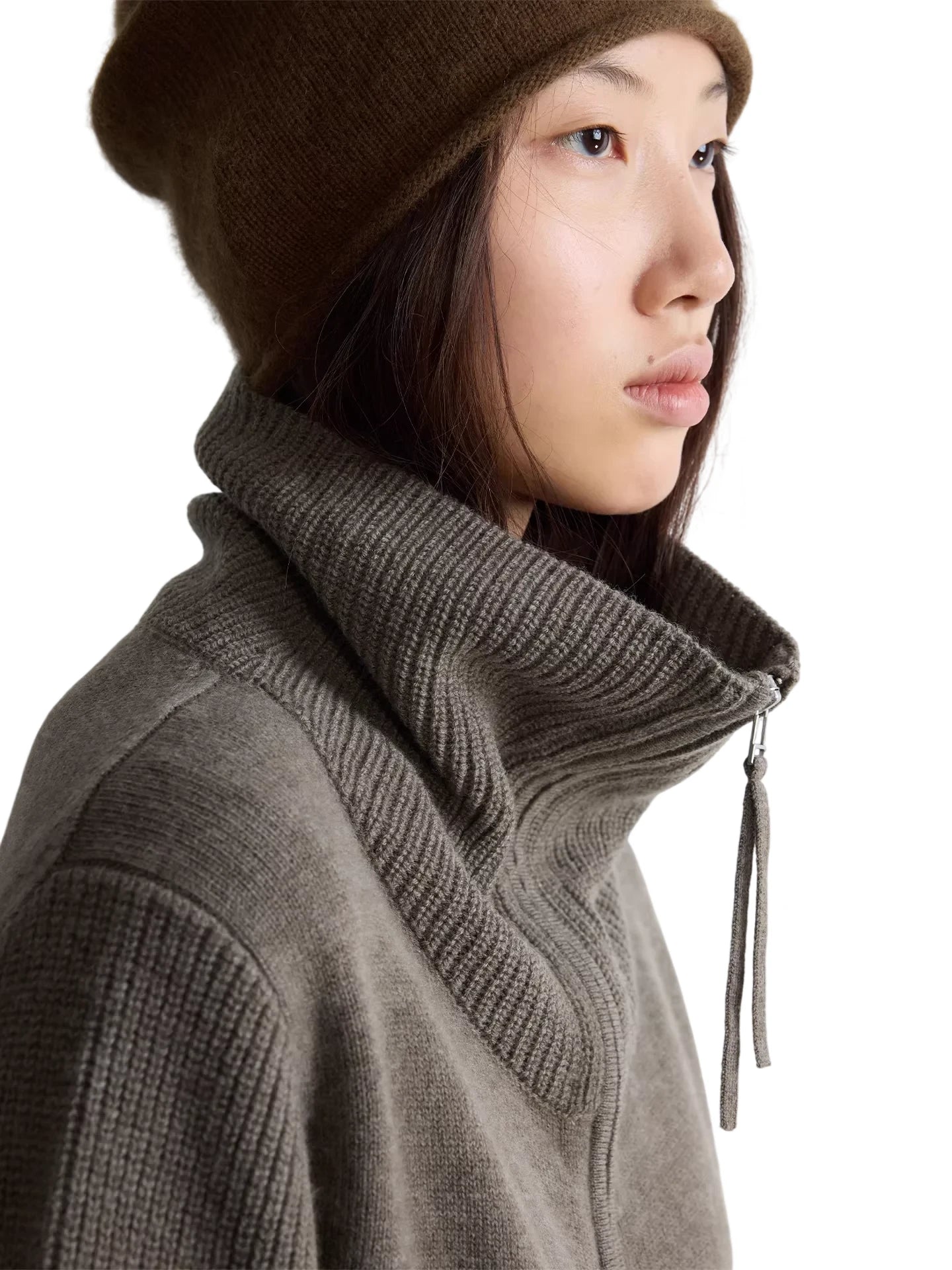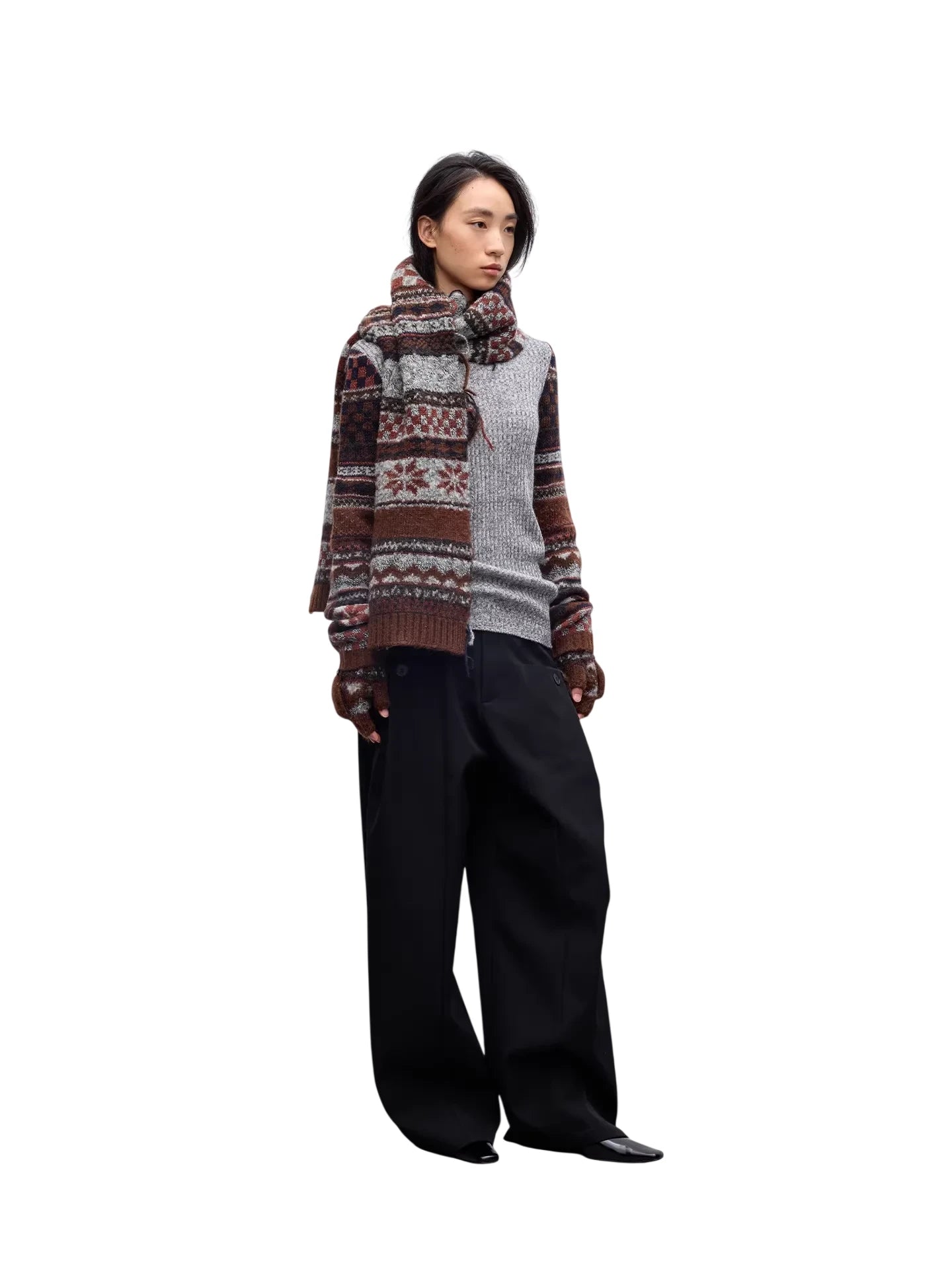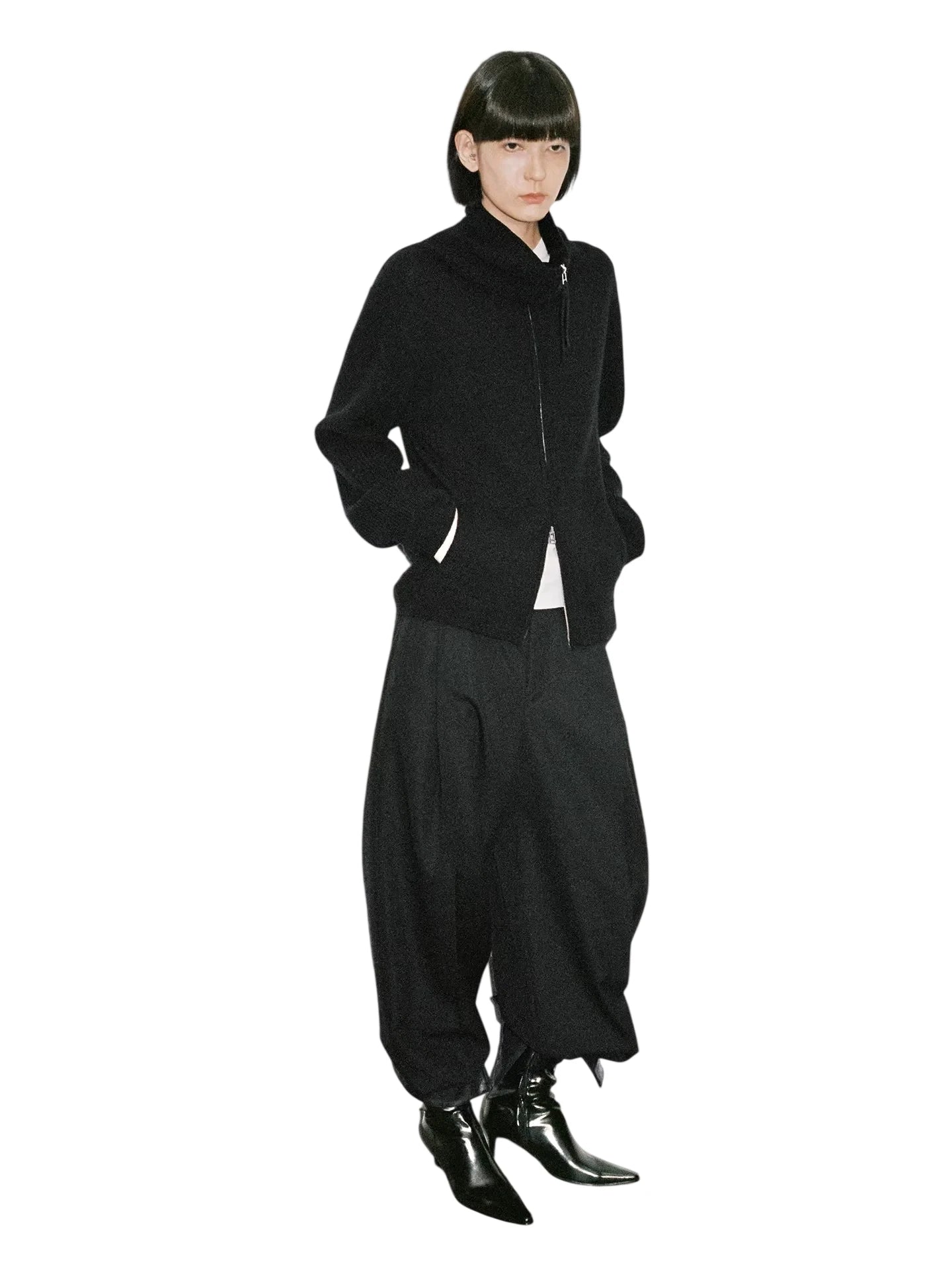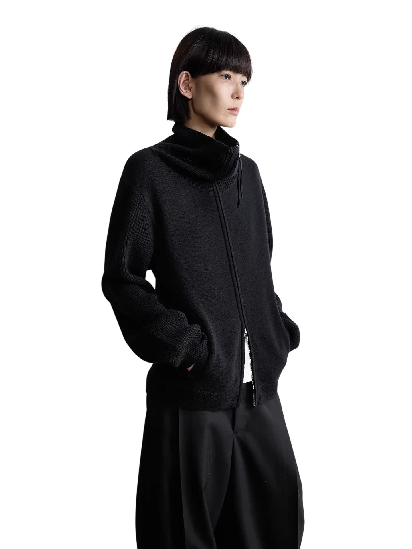 RandomPiece Extra Fine Wool Patchwork Zip Cardigan with Drape Collar