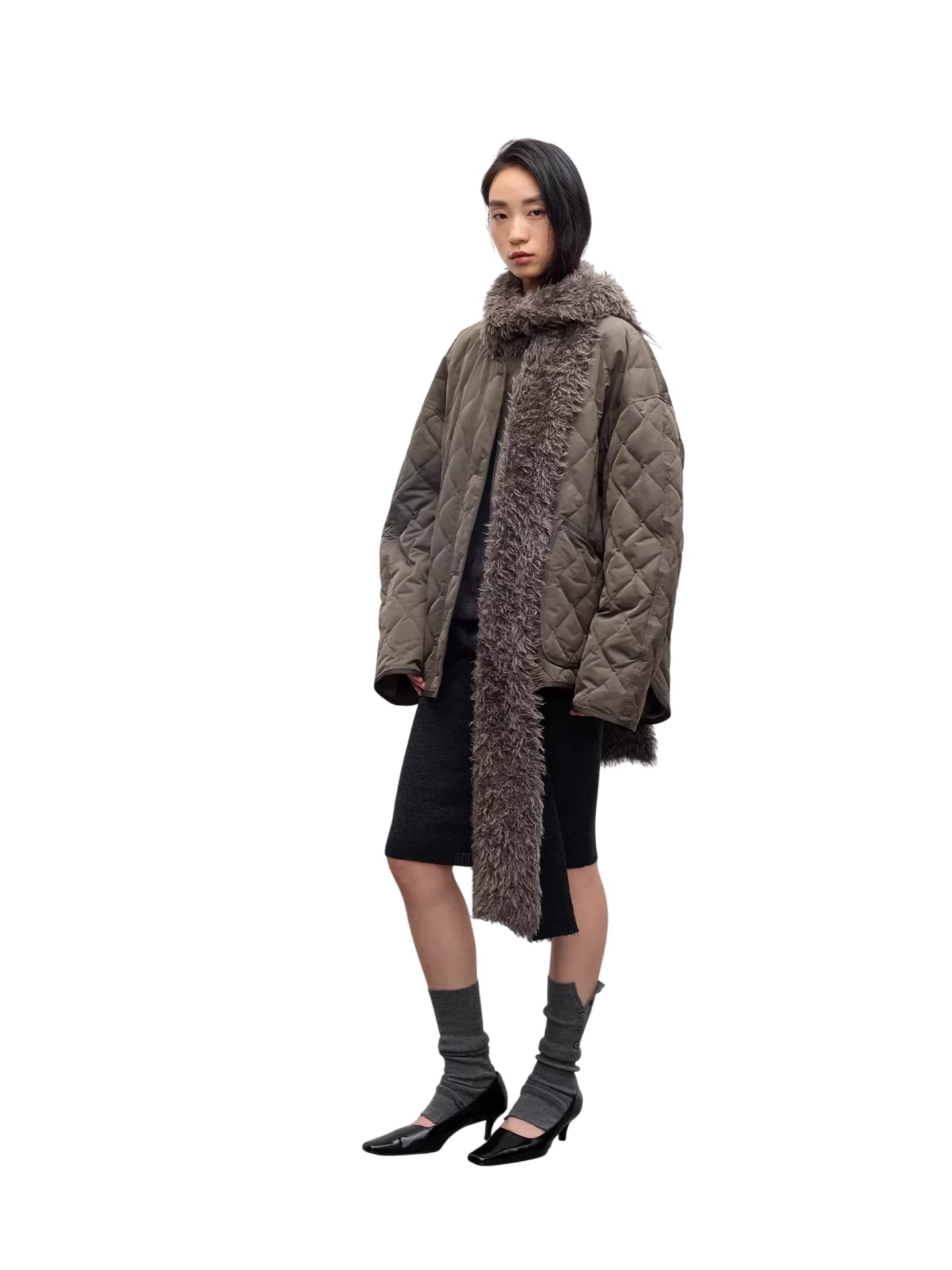 RandomPiece Women's Oversized Quilted Down Jacket with Faux Fur Lining