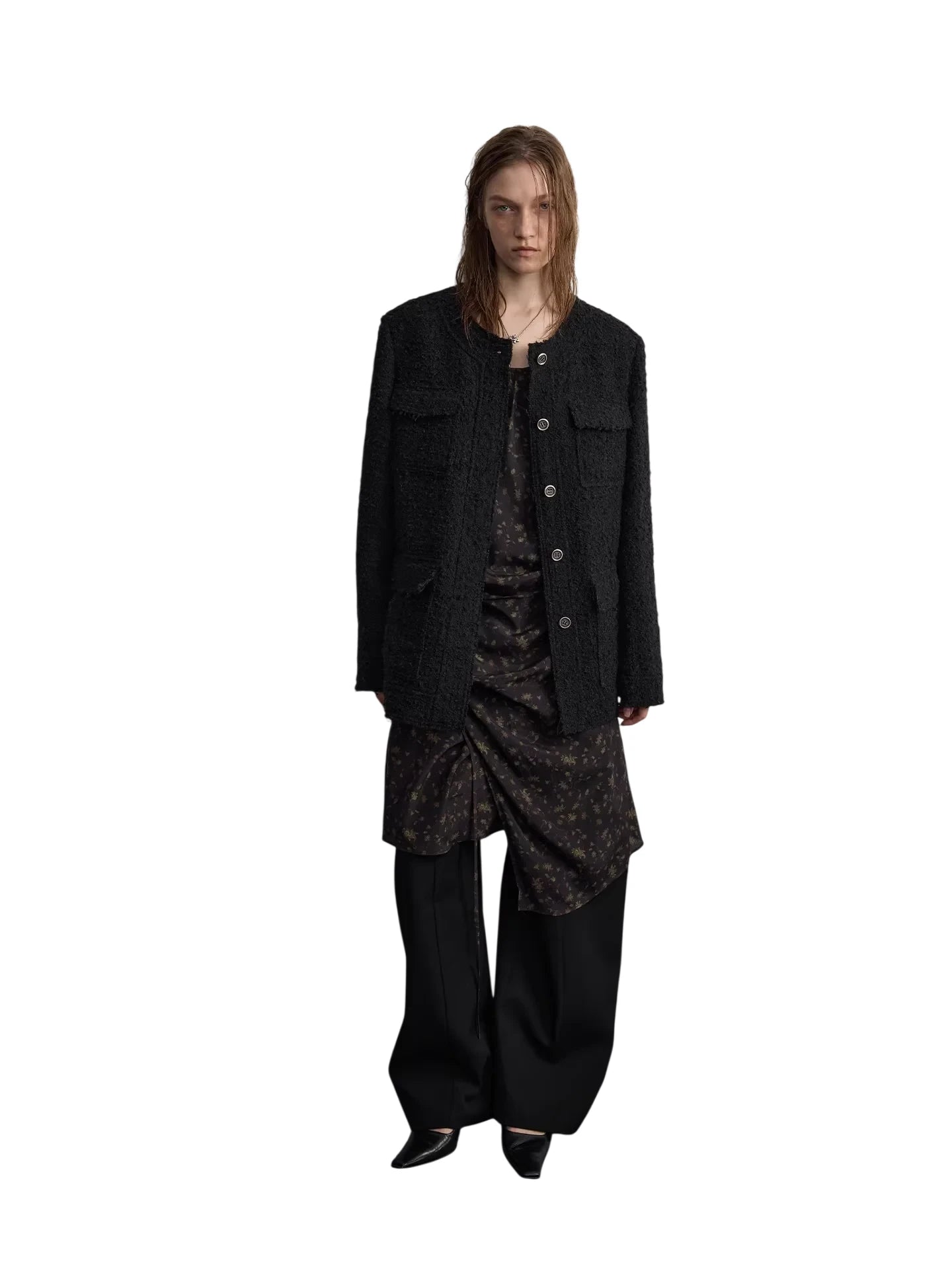 RandomPiece Wool Bouclé Collarless Blazer with Raw Edges