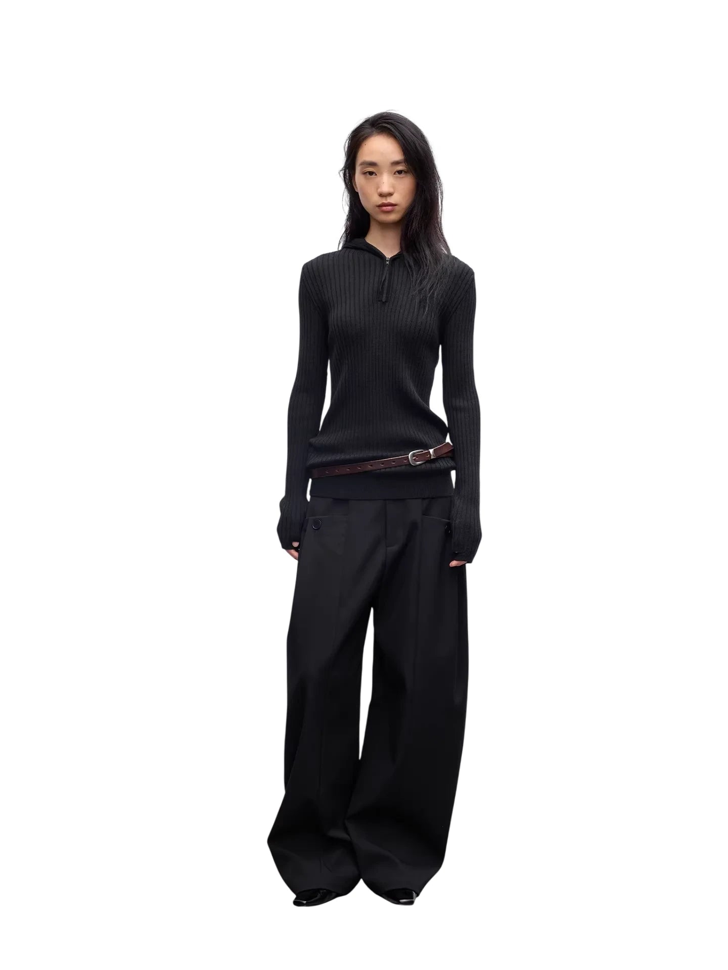 RandomPiece Women's Wool-Blend Pleated Lantern Pants