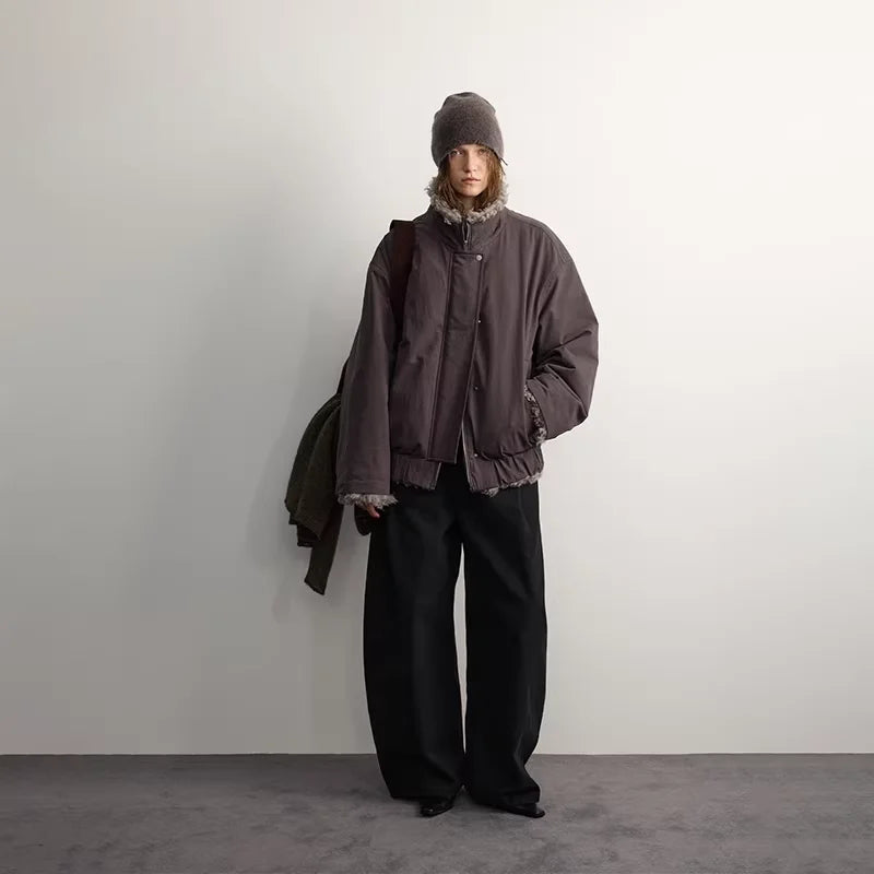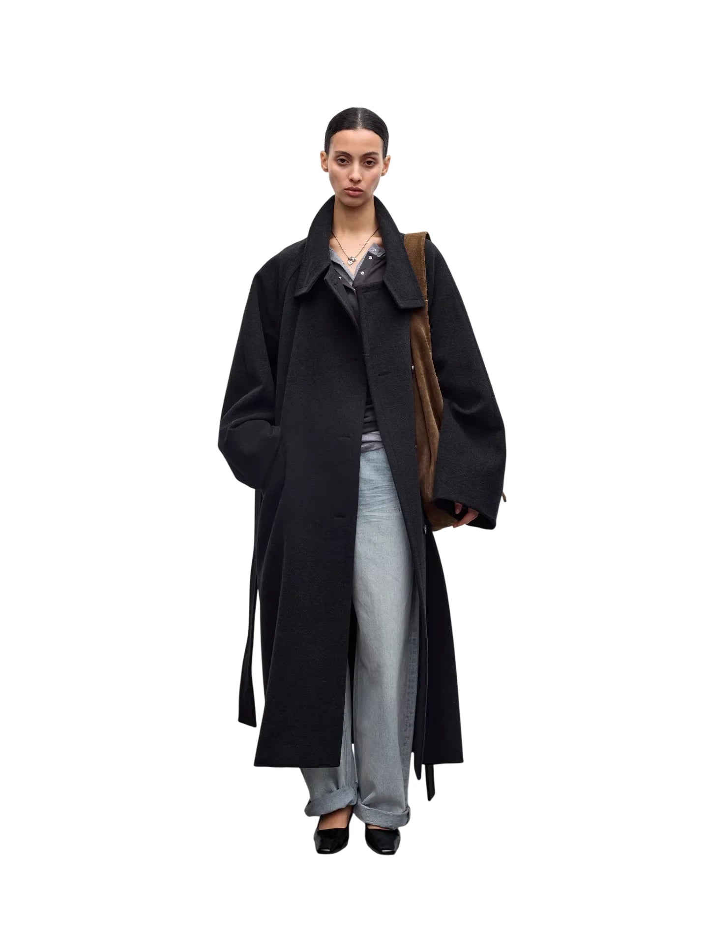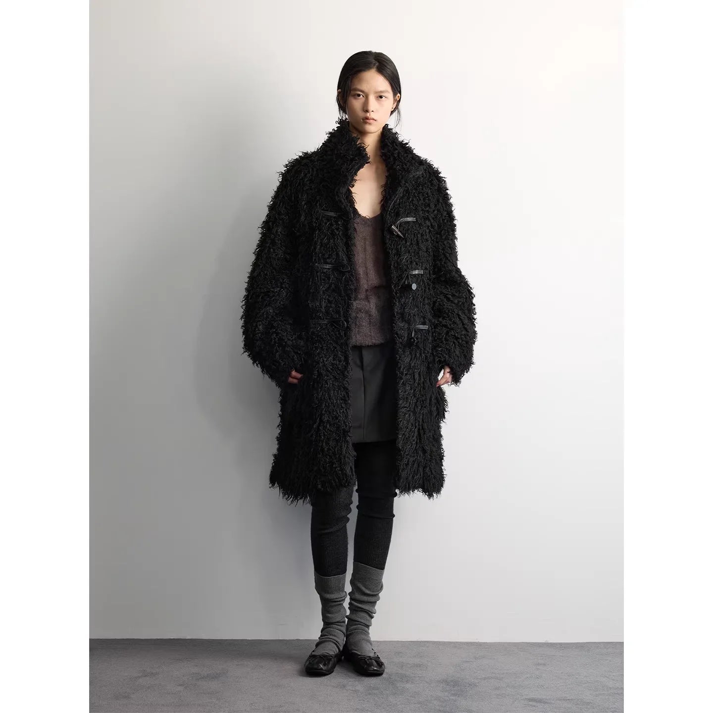 RandomPiece Oversized Alpaca Wool Blend Long Coat with Stand Collar and Wide Cuffs