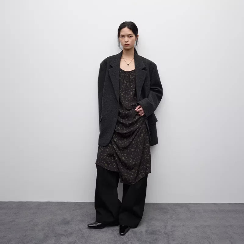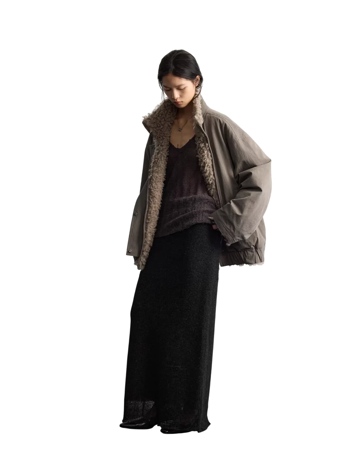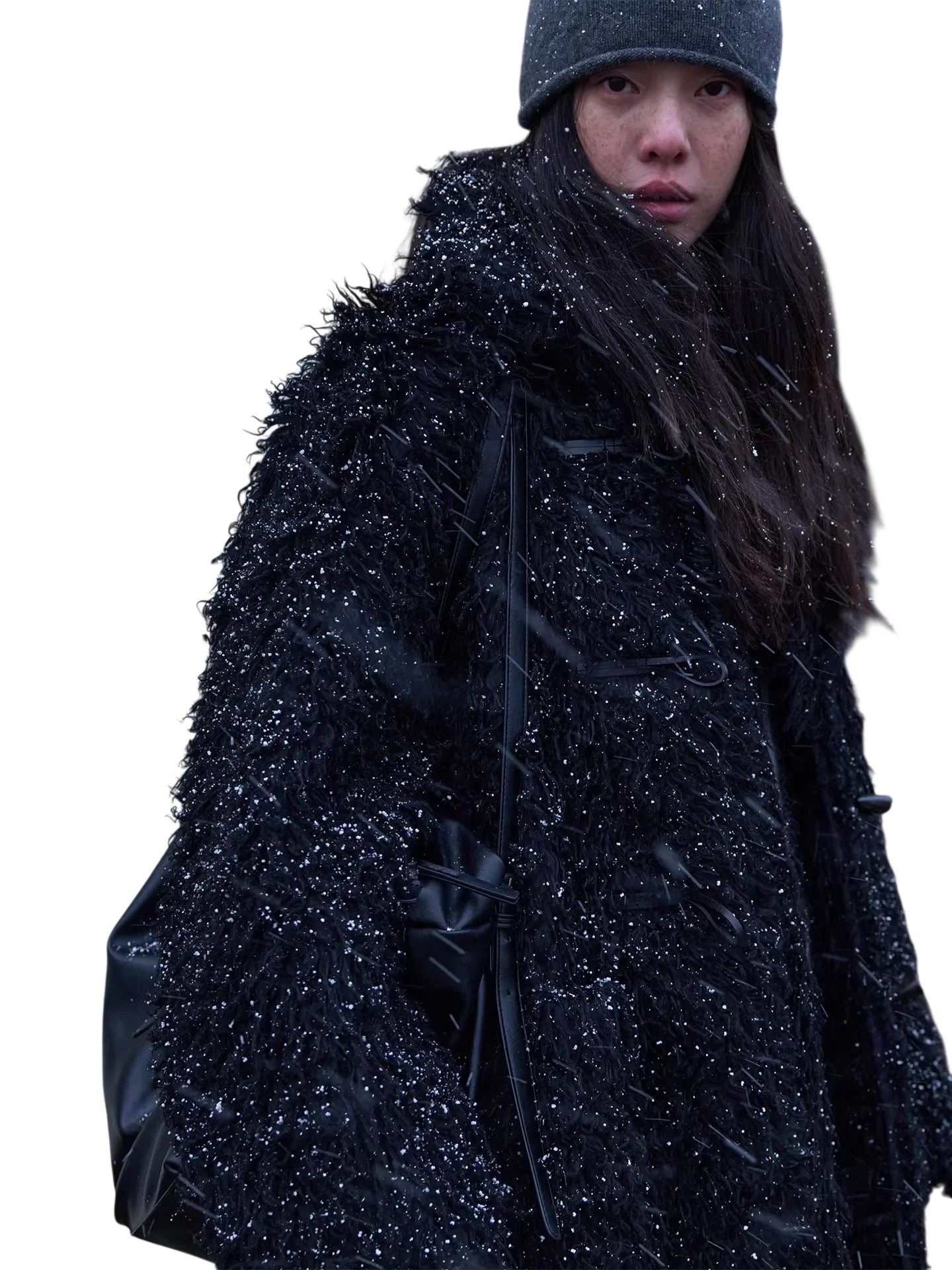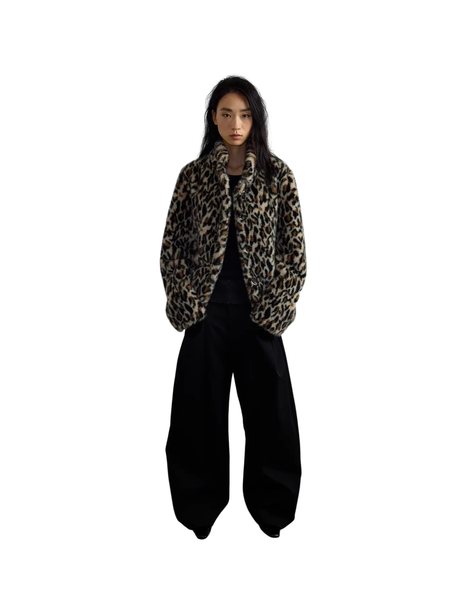 RandomPiece Oversized Alpaca Wool Blend Long Coat with Stand Collar and Wide Cuffs