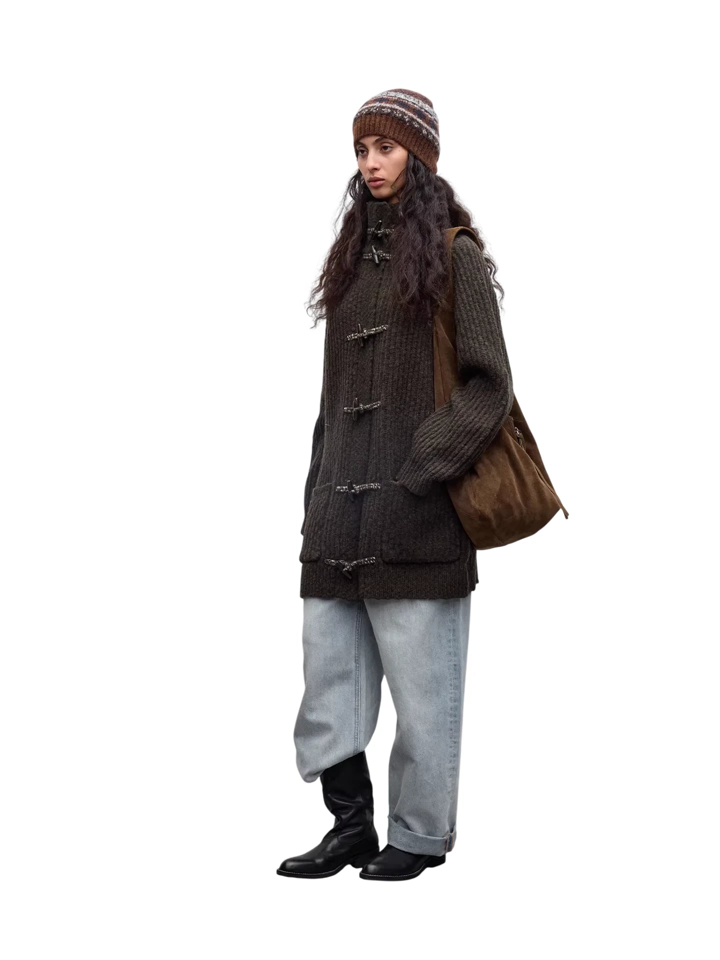 RandomPiece Women's Mid-Length Wool Blend Toggle Knit Coat