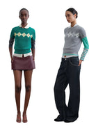 RARELY ALIKE Argyle Cropped Knit Top