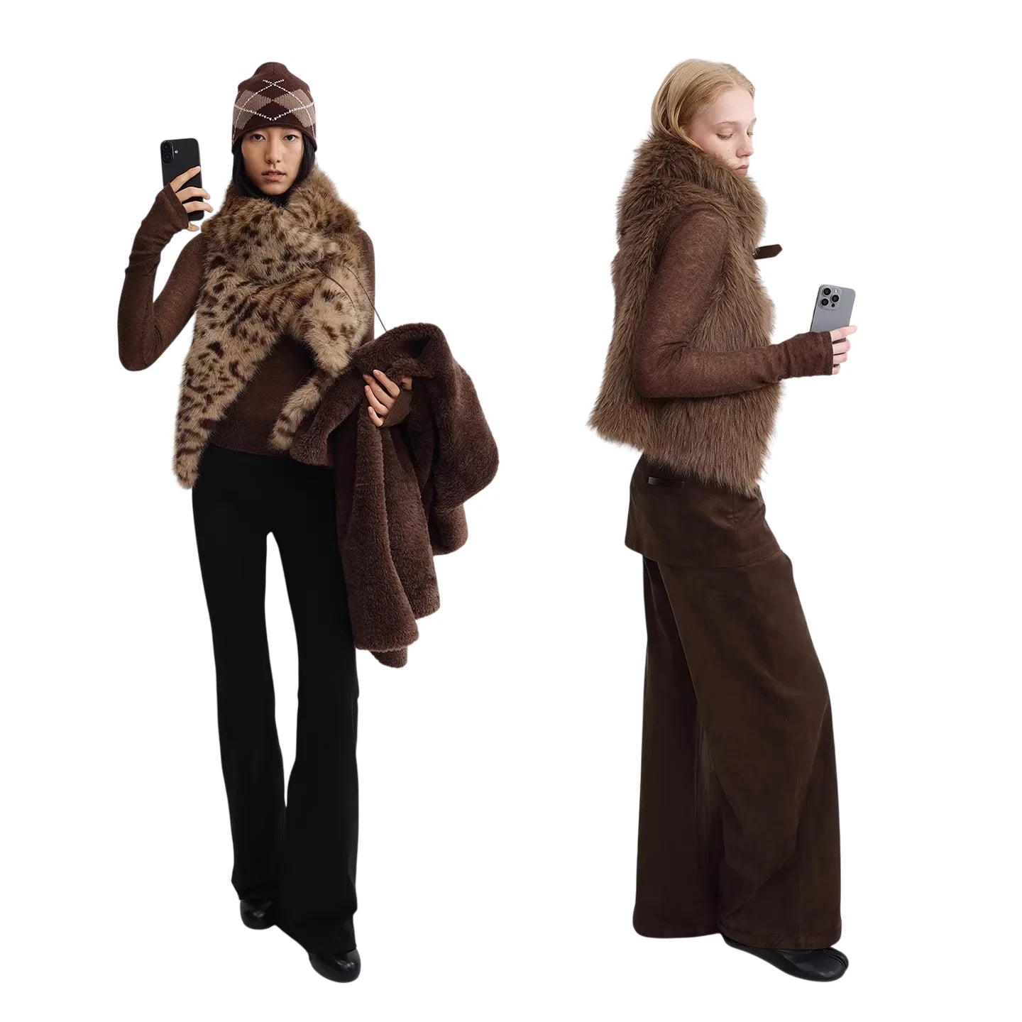 Elevate your winter layering with this eco-friendly faux fur vest, designed in a stylish gray-brown shade with a chic leopard print. Perfect for adding warmth and texture, the vest features a one-piece cut that flatters the silhouette. Ideal for cold-weather styling, it pairs effortlessly with knit tops and wide-leg trousers. A versatile addition for any woman's winter wardrobe.