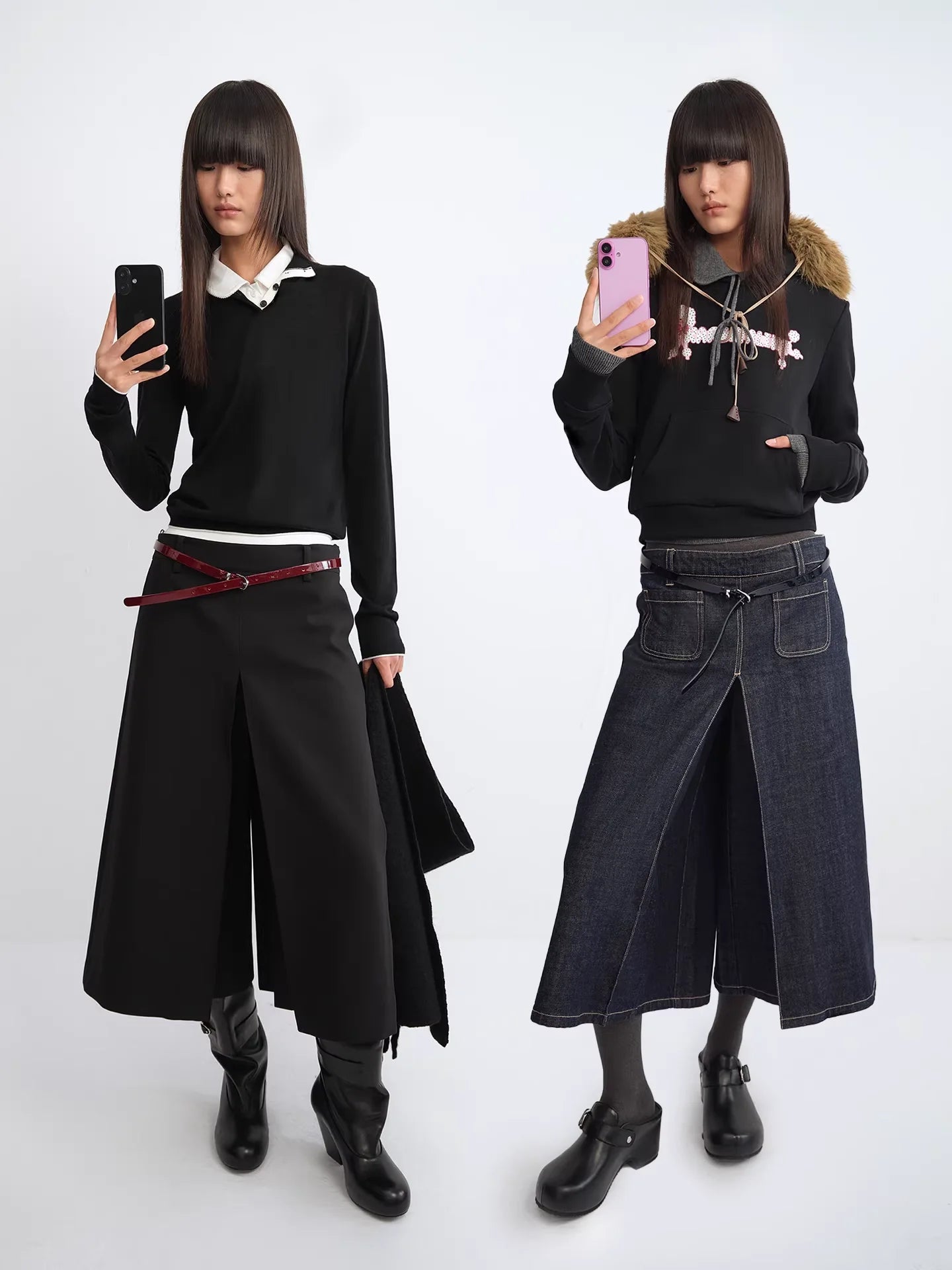 These women's pleated wide-leg cropped jeans offer a bold take on modern denim. Designed with a flattering A-line silhouette, they feature a distinctive front pleat for structural elegance. Available in raw denim and black, the cropped length and wide-leg cut create an edgy yet versatile look suited for both casual and elevated styling.